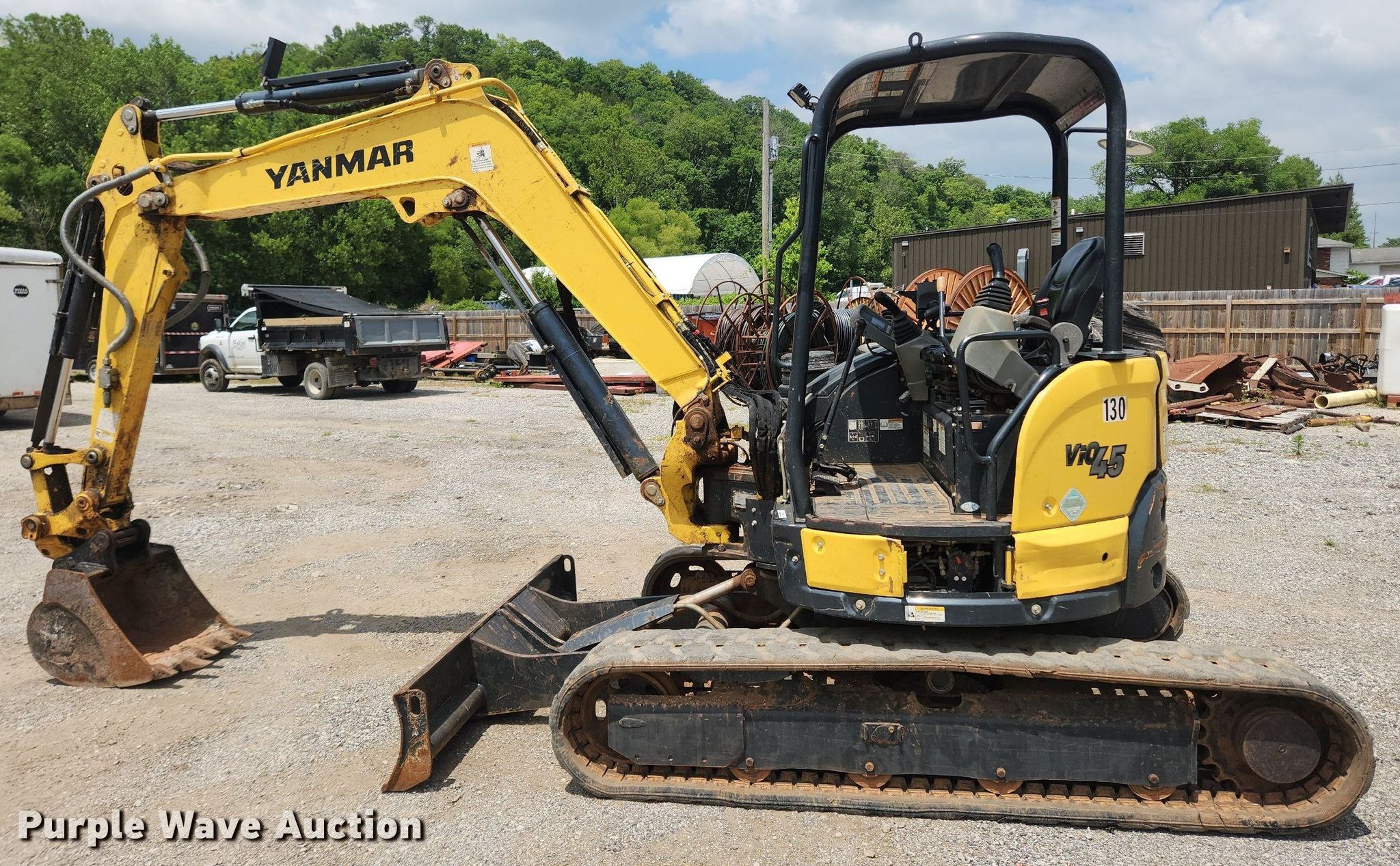 Purple Wave is selling a used Mini Excavator in Missouri. This item is a 2017 Yanmar ViO45-6A mini excavator with the following: Hours: 2,833 on meter, Serial: YMRVIO45PHAJAF154