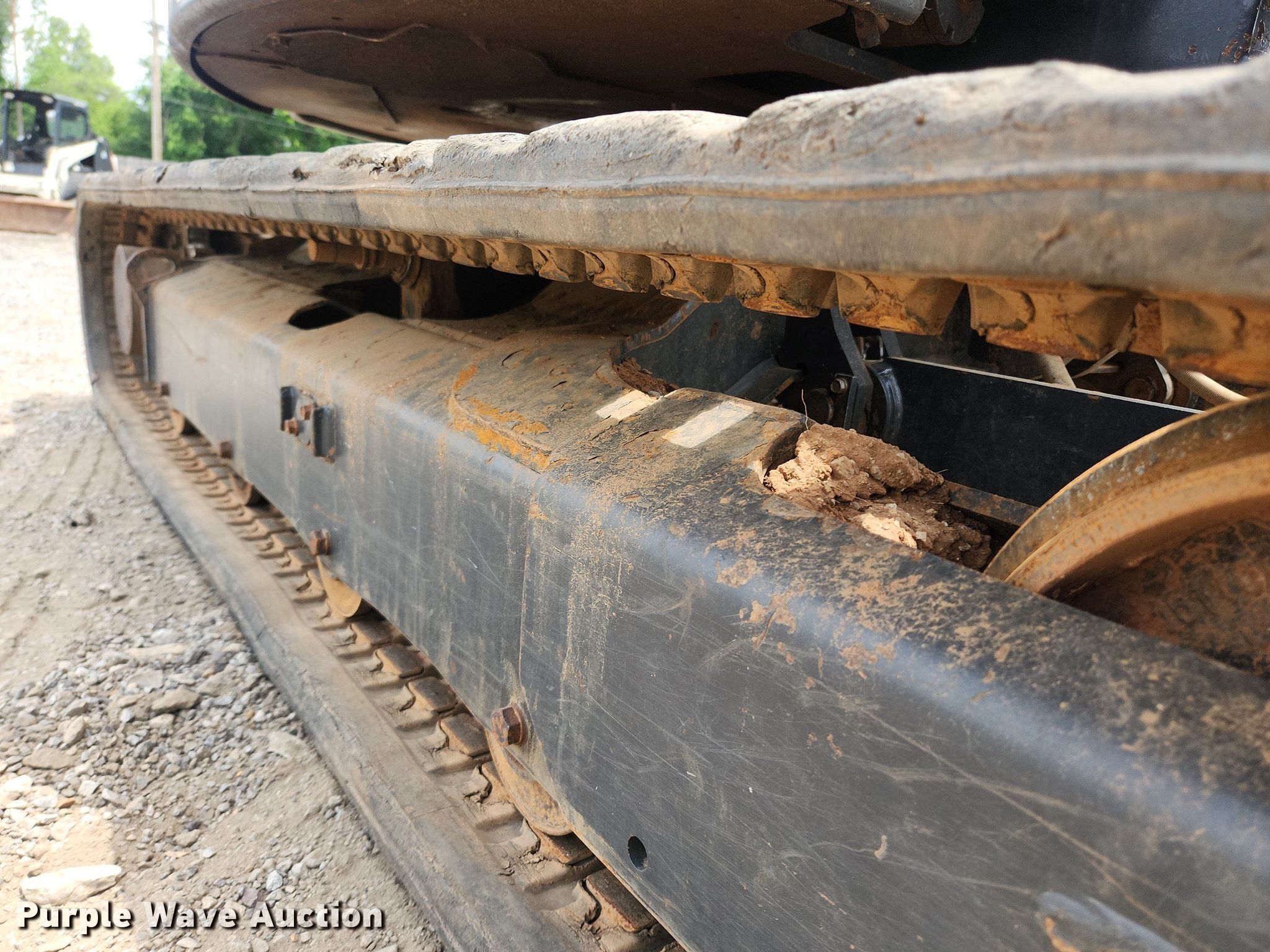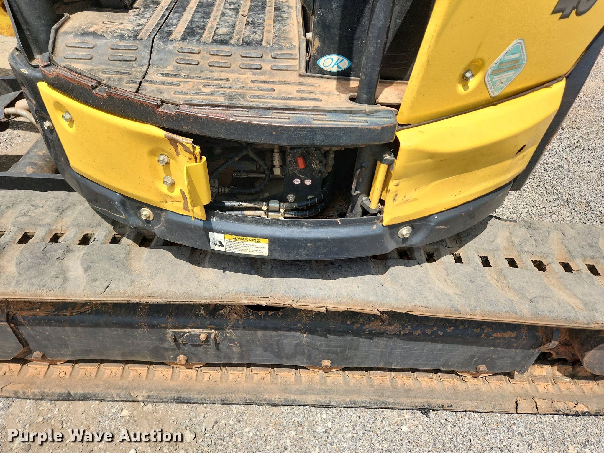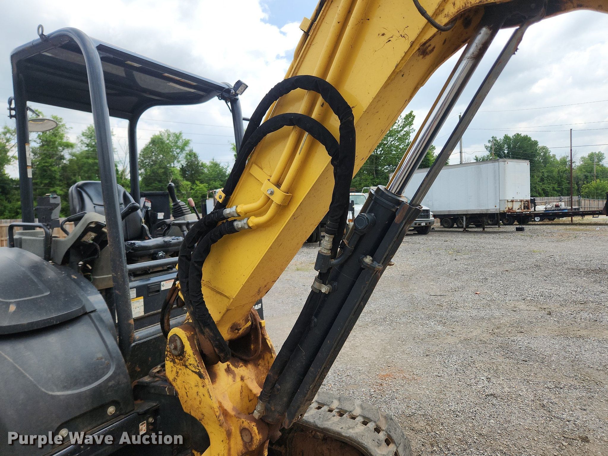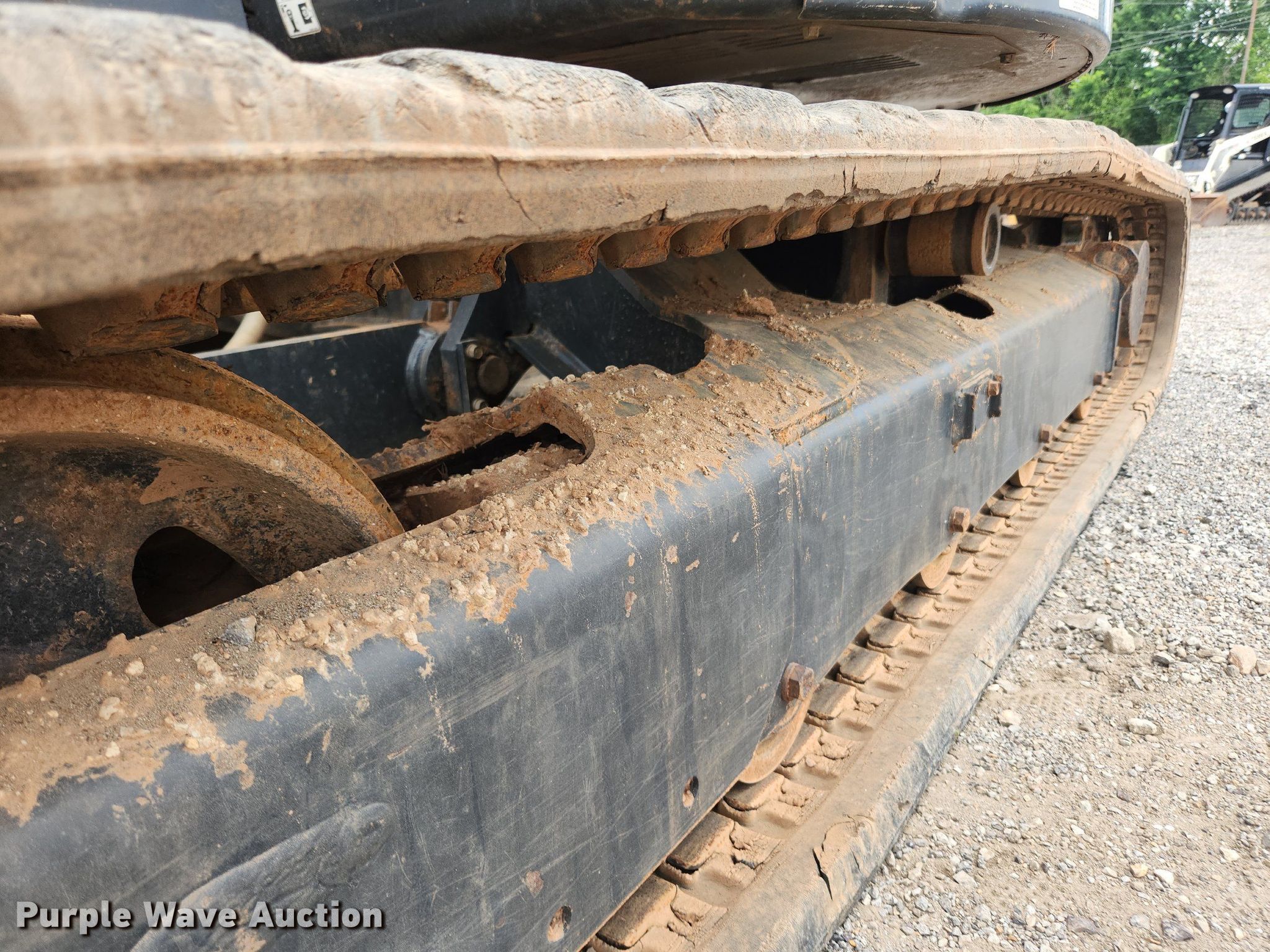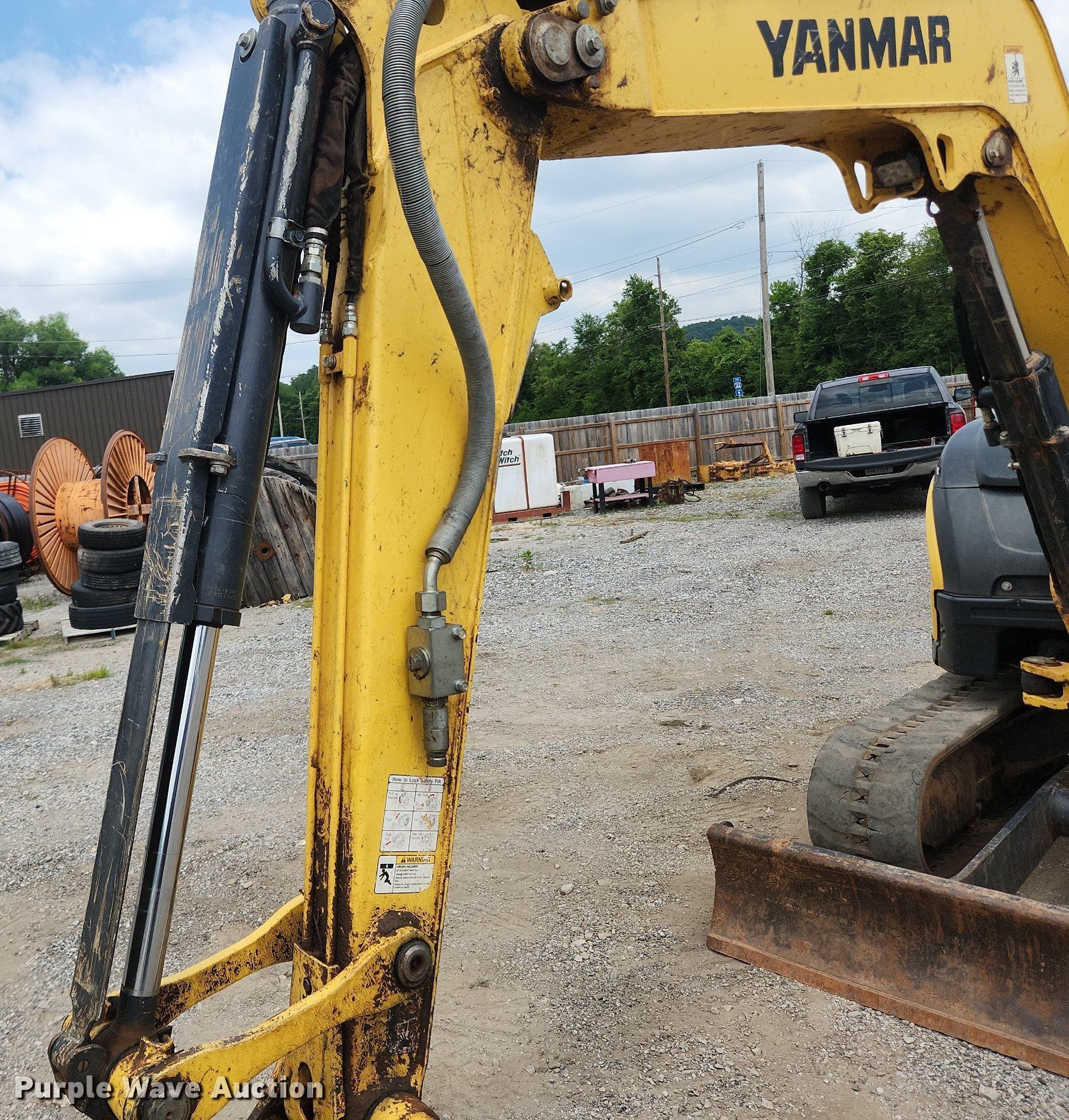 2017 Yanmar ViO45-6A mini excavator. Hours: 2,833 on meter, Serial: YMRVIO45PHAJAF154. Engine Yanmar 4TNV88C-PBV, Displacement: 2.19L, Cylinders: 4, Fuel type: Diesel, HP: 39. Transmission Hydrostatic, Two speed travel. Operators station OROPS, Pattern changer. Features Auxiliary hydraulics Two-way, Backfill blade Width: 78", Boom Swing, Stick Stick length: 5', Quick coupler: Hydraulic, Bucket TAG, Width: 24", Teeth: 5. Tracks Width: 14", Rubber. Excel Utility Contractors, LLC. Pacific, MO 63069