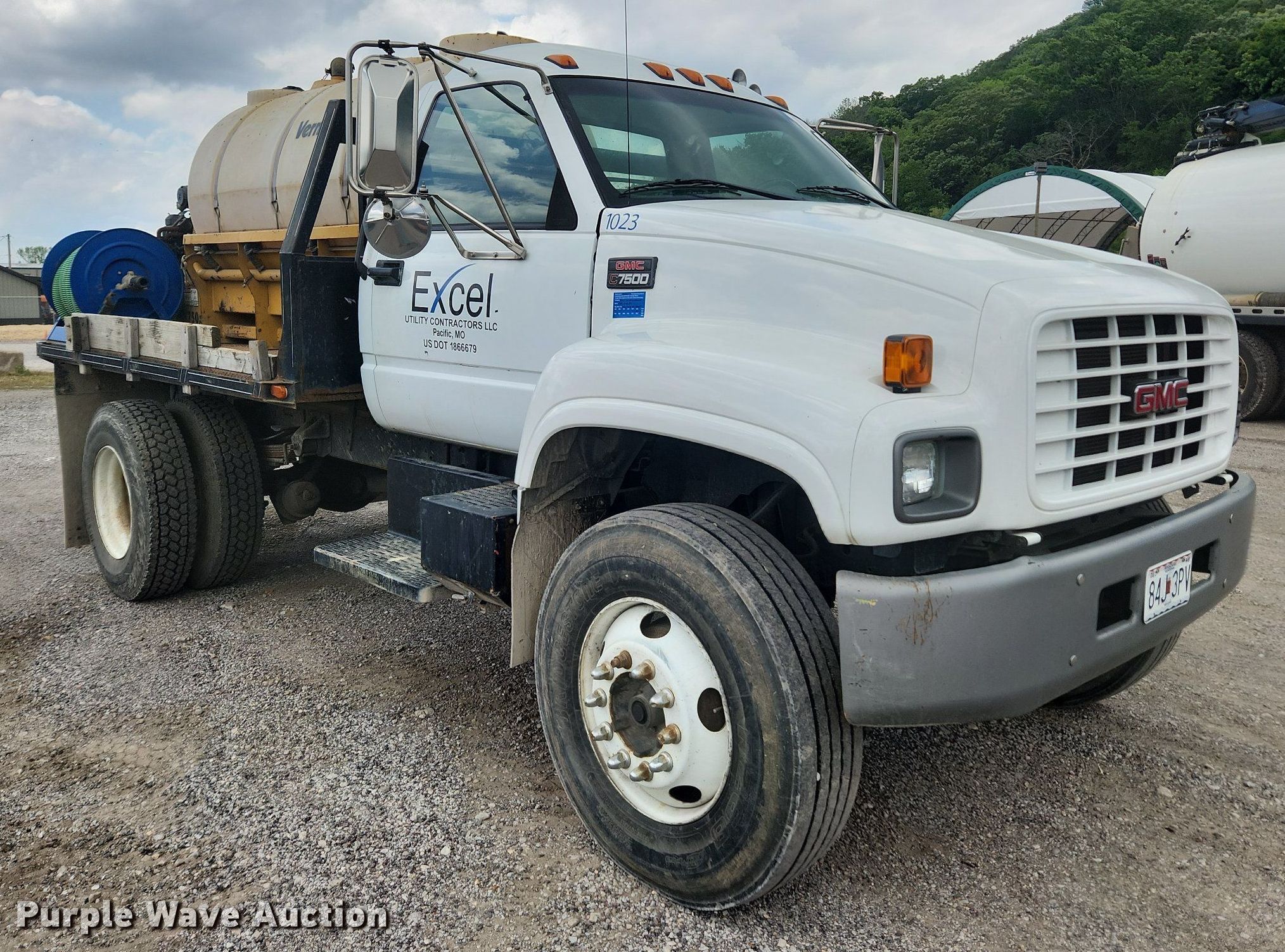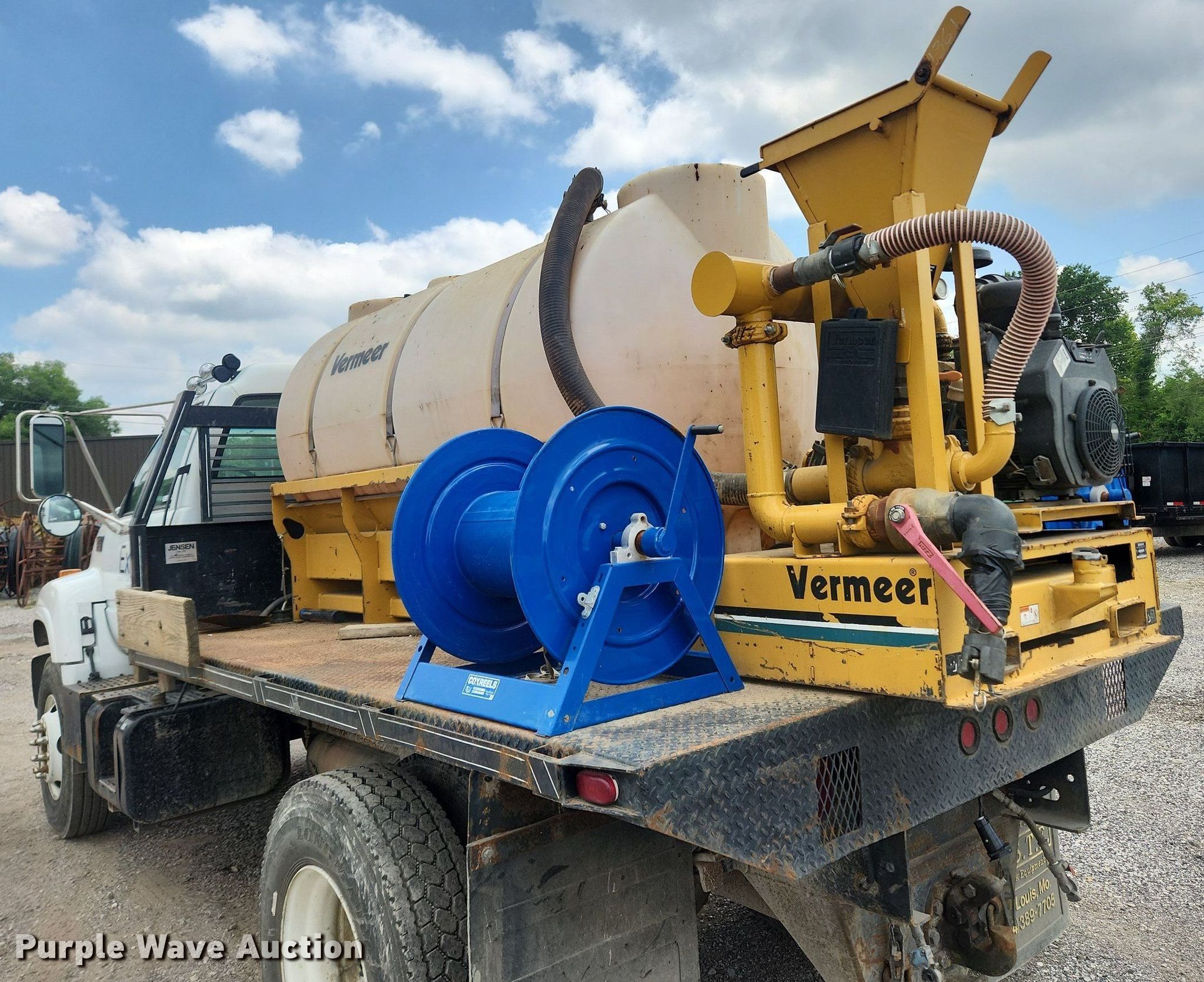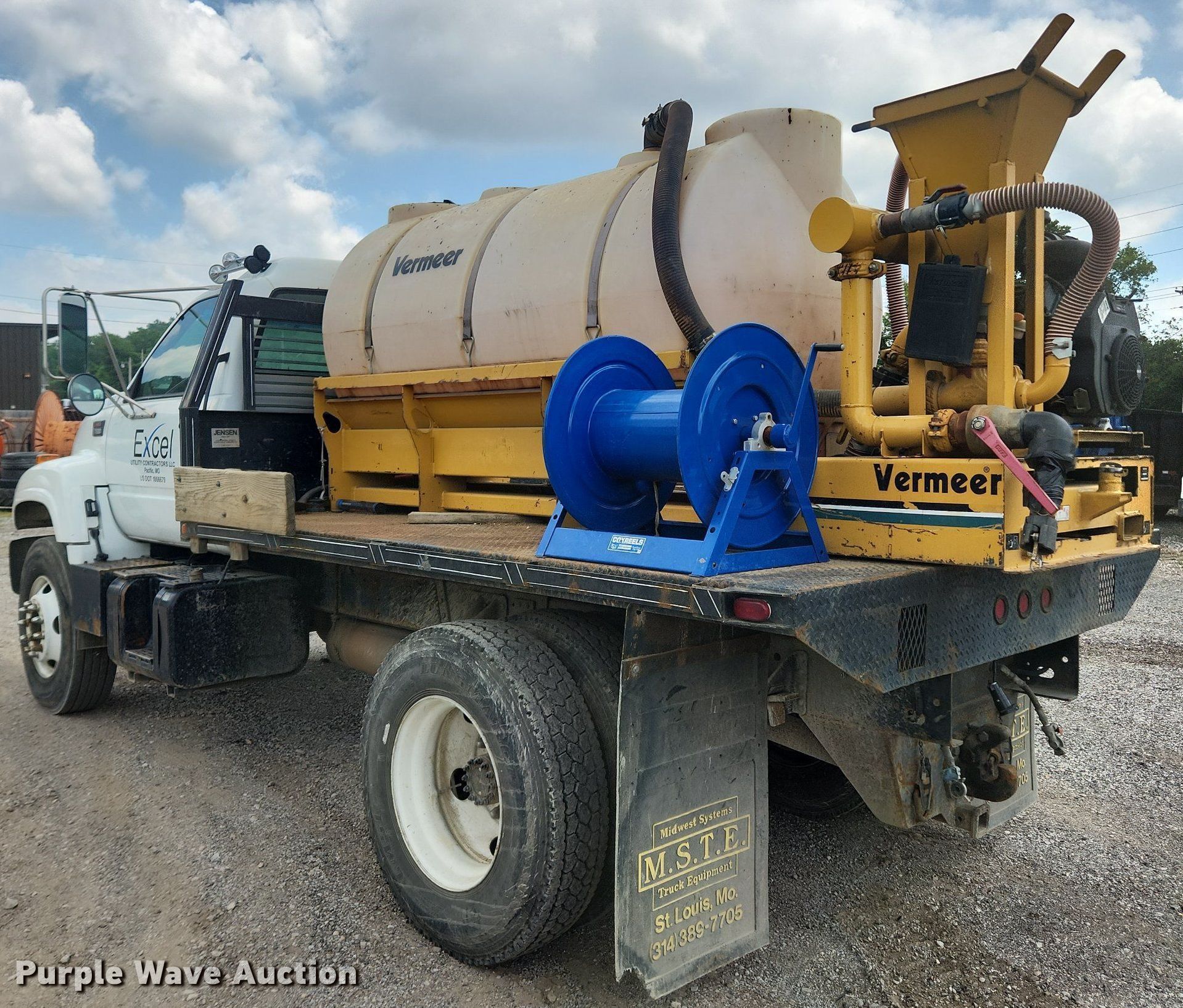 1999 GMC C7500 flatbed truck. Miles: 68,239 on odometer, VIN: 1GDM7H1C7XJ511287. Engine Caterpillar 3126, Displacement: 7.2L, Cylinders: 6, Fuel type: Diesel. Transmission Spicer, Manual, Speed: 7. Chassis Axles: Single, Suspension: Spring, Brakes: Air, GVWR: 30,000 lbs, Wheelbase: 158". Interior AC, Heat, Brake controller. Features Flatbed Jensen, 11' L x 92" W, 2005 Vermeer ST750A mud mixer Tank Capacity: 750 gallons, Engine Kohler, Displacement: 725 cc, Cylinders: 2, Serial: 1VRT1106551001361.. Tires Size: 11R22.5. Notes Dead battery, Mud mixer engine turns over, but will not start. Missouri title. Title distribution may be delayed up to 14 days from verification of funds. Excel Utility Contractors, LLC. Pacific, MO 63069
