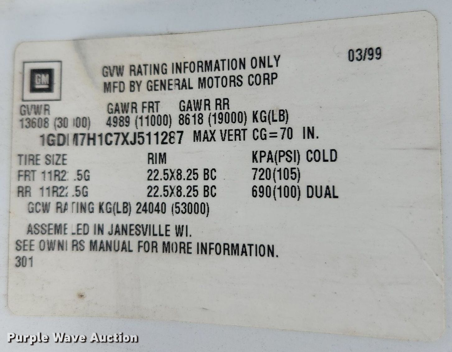 Purple Wave is selling a used Flat Bed Truck in Missouri. This item is a 1999 GMC C7500 flatbed truck with the following: Miles: 68,239 on odometer, VIN: 1GDM7H1C7XJ511287
