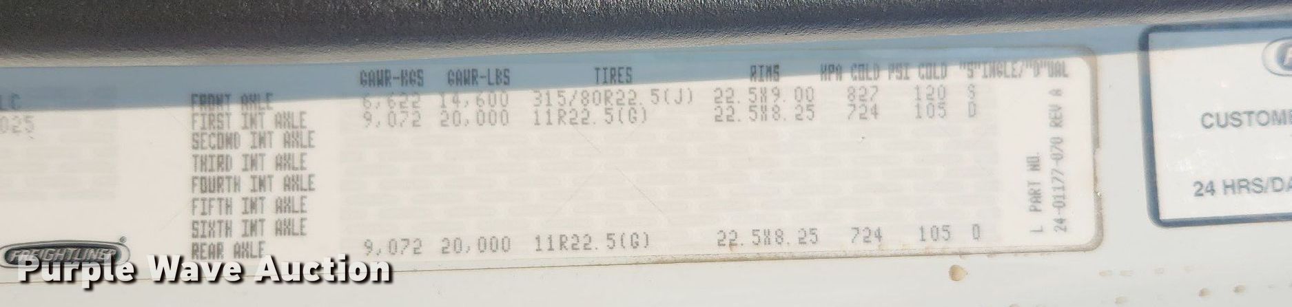 2007 Freightliner Business Class M2 crane truck. Miles: 392,369 on odometer, Hours: 24,879 on meter, VIN: 1FVHC3DJ77HX72025. Engine Mercedes Benz MBE 900, Displacement: 7.2L, Cylinders: 6, Fuel type: Diesel, Engine brake. Transmission Eaton Fuller, Manual, Speed: 10. Chassis Axles: Tandem, Suspension: Air, Brakes: Air, PTO, GVWR: 54,600 lbs FAWR: 14,600 lbs, IAWR: 20,000 lbs, RAWR: 20,000 lbs. Interior AC, Heat, Heated mirrors, Cruise control, Brake controller. Features Utility bed FBE, 15' L x 96" W, Crane Palfinger PK15002, Boom Telescopic, Knuckle, Maximum boom length: 55' Sections: 4, Maximum lift capacity: 13,670 lbs, Boom controls Ground.. Tires Front: 315/80R22.5, Rear: 11R22.5. Notes Unknown operating condition of outriggers. Kansas title. Seller is a Missouri licensed motor vehicle dealer. Title will be assigned and distributed by the dealer. Please contact the seller for distribution questions. Title distribution may be delayed up to 30 days from verification of funds. Fruendly Auto Source Inc.. 110 Raceway Park Dr. Moscow Mills, MO 63362