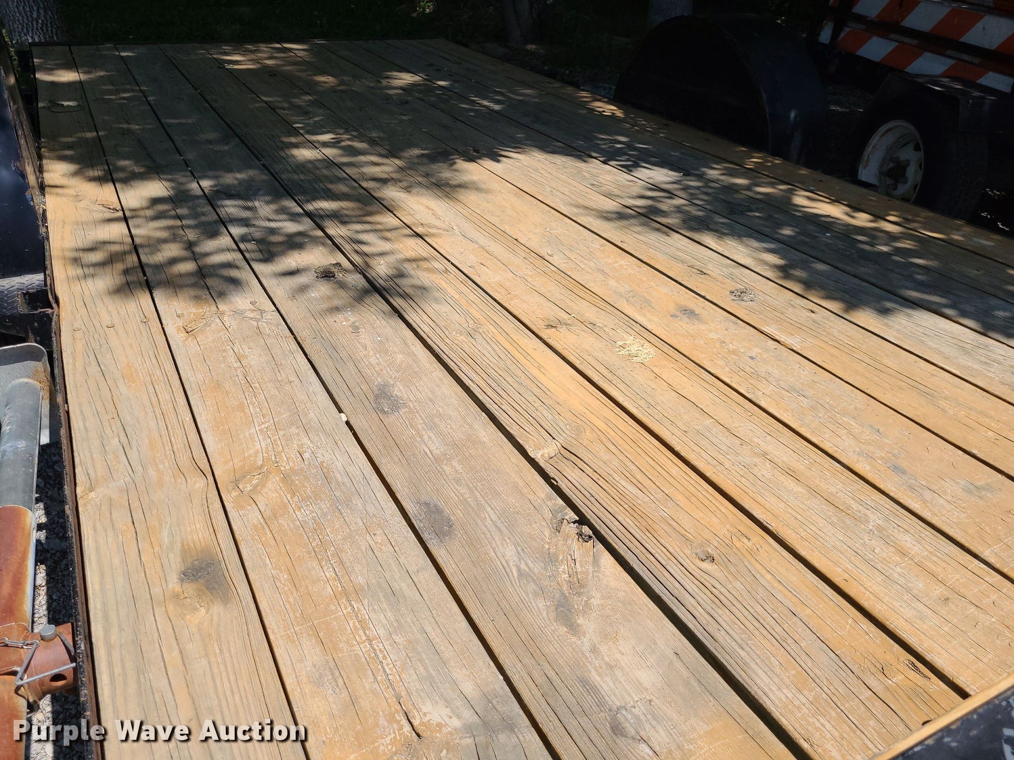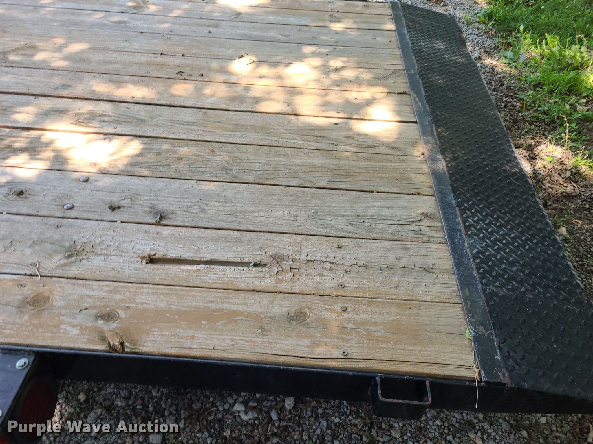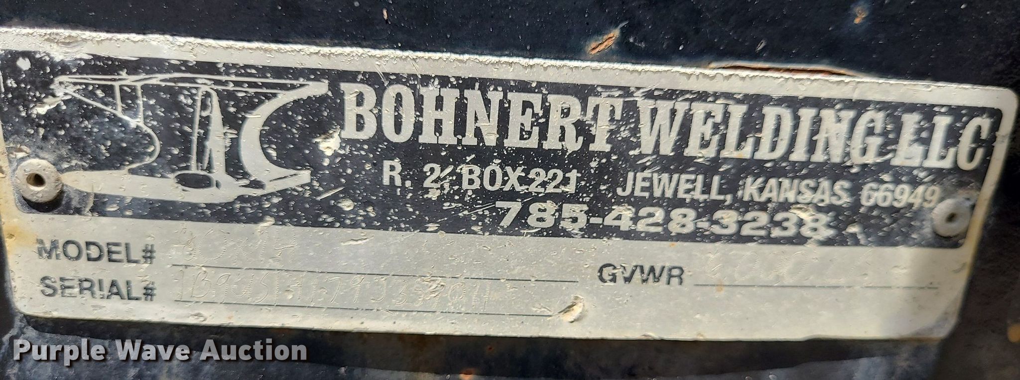 2009 Bohnert tilt deck equipment trailer. VIN: 1B9US14179J359011. Dimensions Overall: 20' L x 102" W, Deck: 14' L x 80" W, Tail length: 1'. Features Deck type: Wood. Chassis Ball hitch: 2", Landing gear: Single, Suspension: Spring, GVWR: 6,000 lbs. Tires Steel wheels, Size: 235/85R16. Notes Hitch lock not included. Kansas title. Title distribution may be delayed up to 14 days from verification of funds. City of Westmoreland. 400 6th Street. Westmoreland, KS 66549