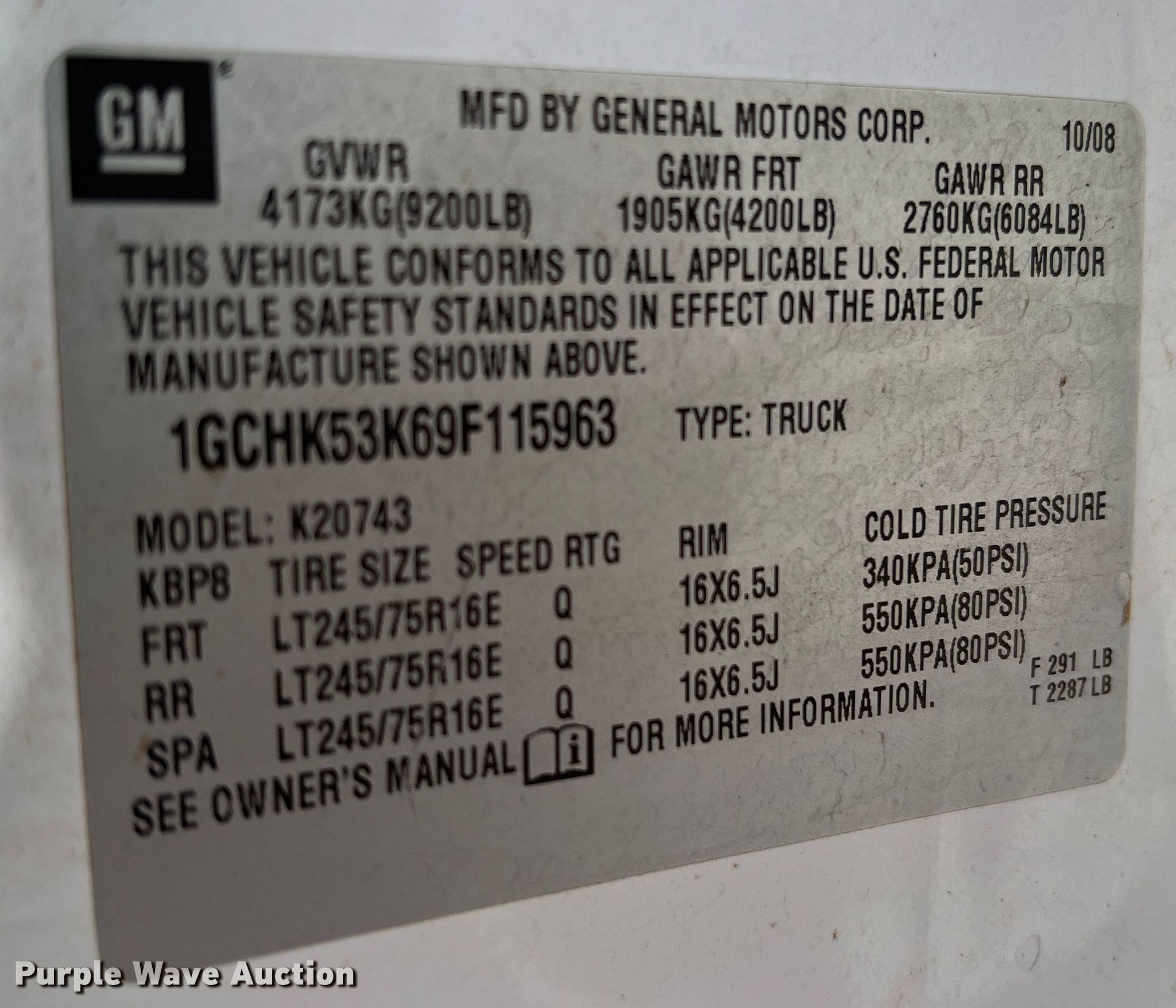 - VIN: 1GCHK53K69F115963