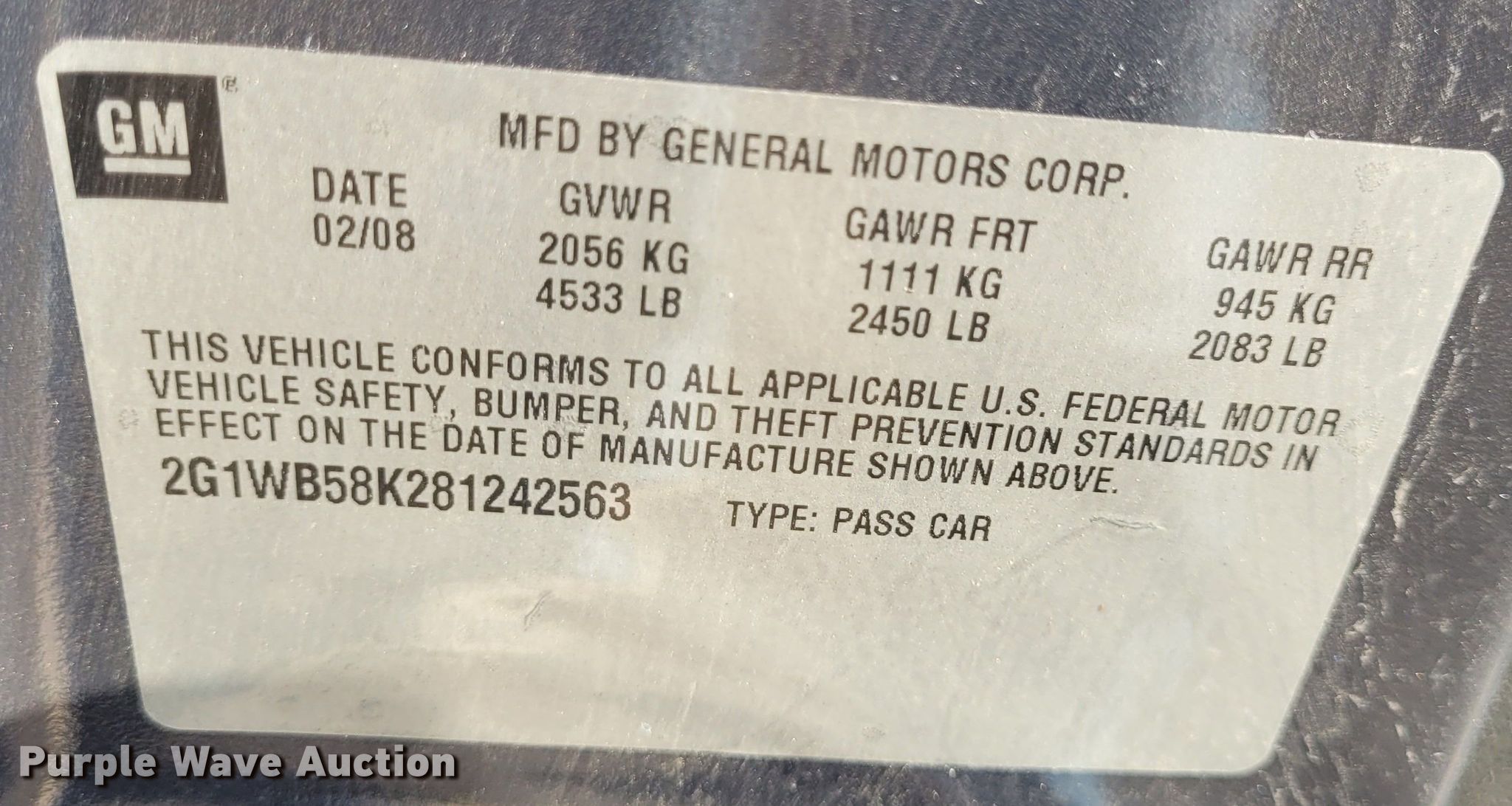 Purple Wave is selling a used Passenger Vehicle in Kansas. This item is a 2008 Chevrolet Impala LS with the following: Miles: 142,644 on odometer, VIN: 2G1WB58K281242563, Unit #: 5
