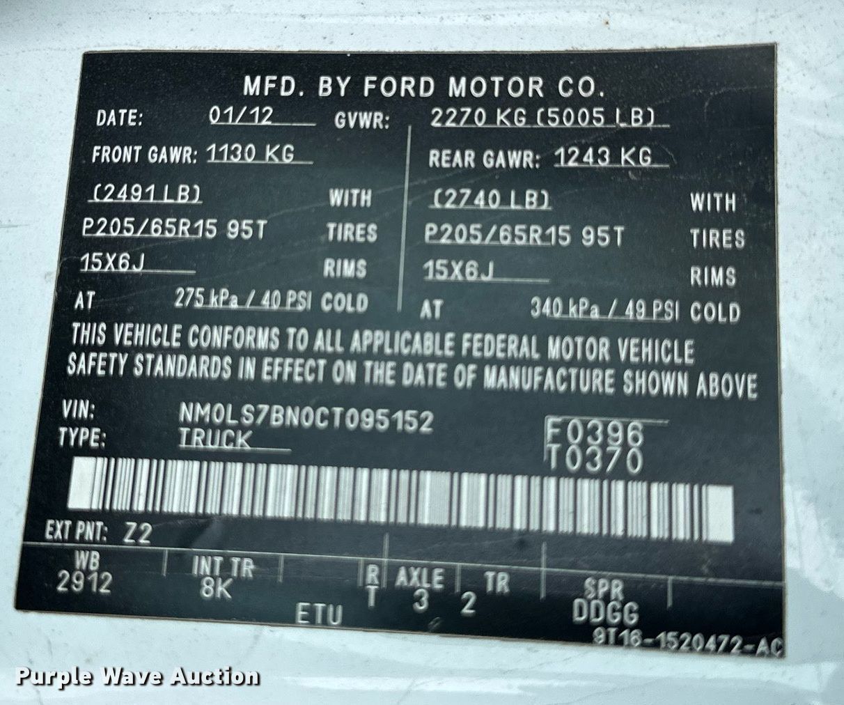 2012 Ford Transit Connect animal control van. Miles: 105,656 on odometer, VIN: NM0LS7BN0CT095152. Engine Displacement: 2.0L L4 DOHC, Cylinders: 4, Fuel type: Gas. Transmission Automatic. Interior AC, Heat, Power windows, Cruise control. Features Kennels. Tires Size: 205/65R15. Missouri title. Title distribution may be delayed up to 14 days from verification of funds. City of Gladstone, MO. 4000 NE 76th St. Gladstone, MO 64116