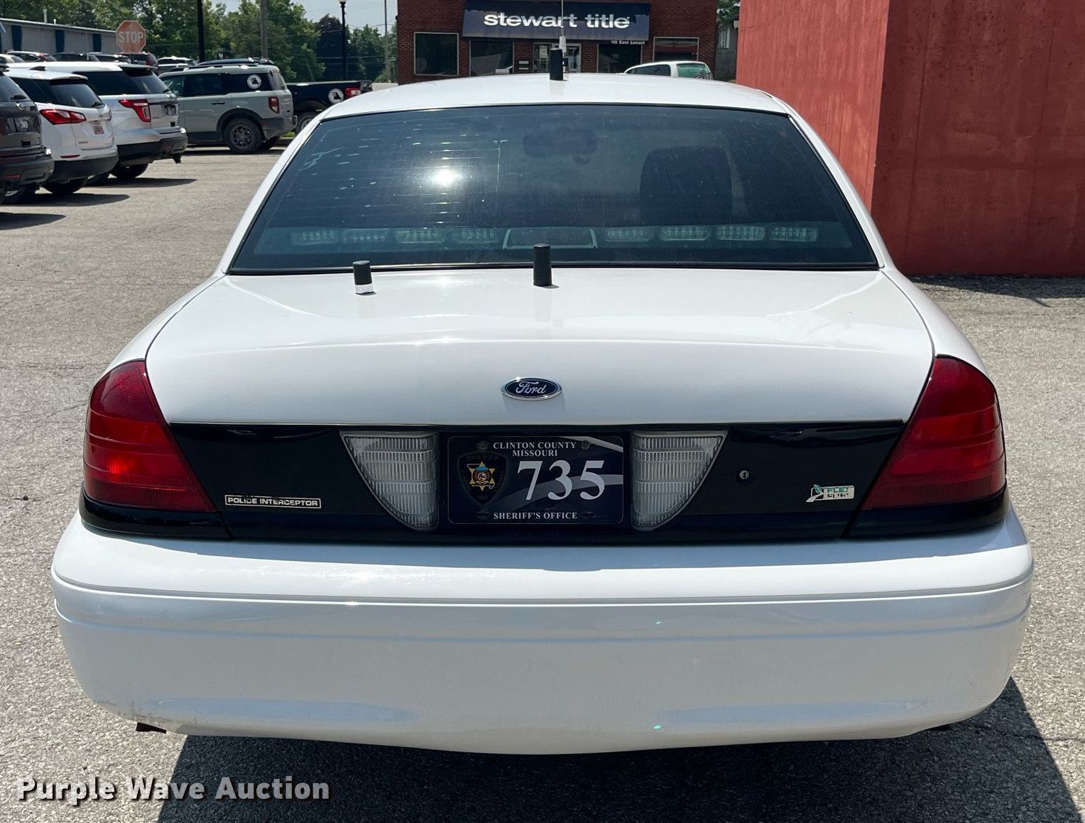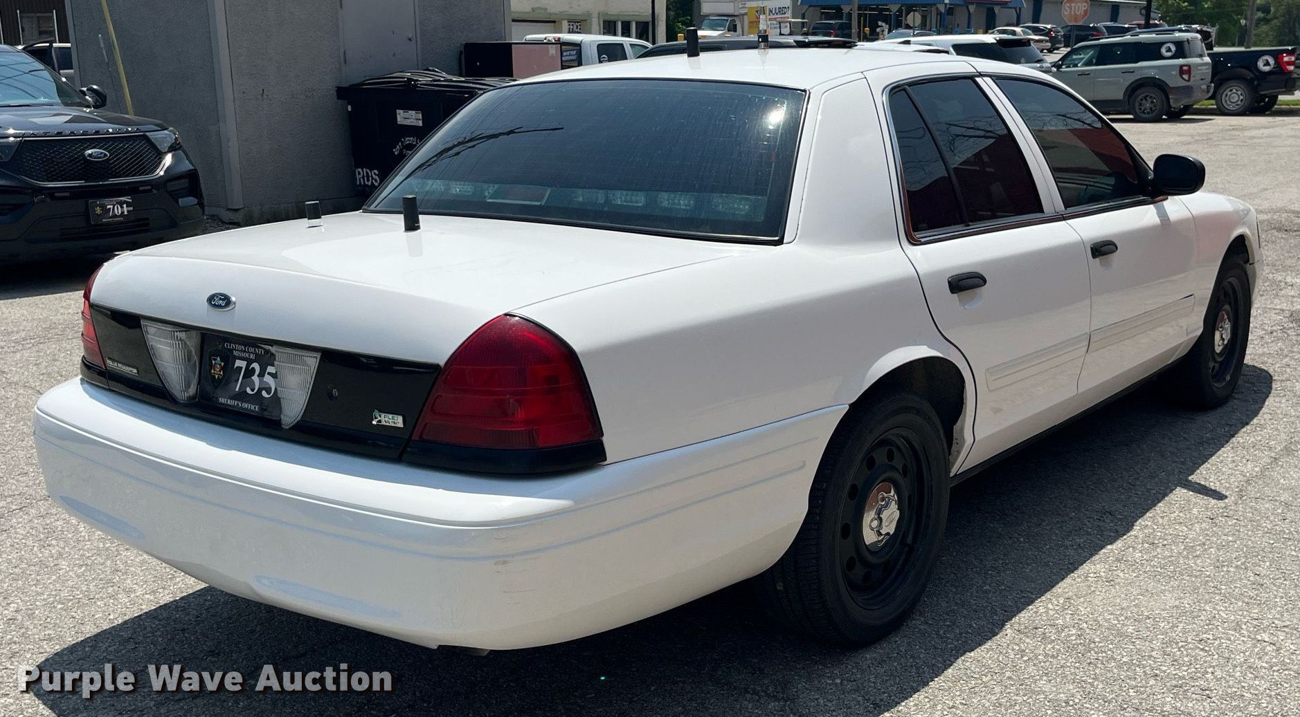 2011 Ford Crown Victoria Police Interceptor. Miles: 190,129 on odometer, VIN: 2FABP7BV4BX169244. Engine Displacement: 4.6L V8 SOHC, Cylinders: 8, Fuel type: Gas. Transmission Automatic. Interior AC, Heat, Power windows, Power locks. Tires Size: 235/55R17. Notes Dash warning indicator: Check engine, TPMS, Law enforcement equipment will be removed if sold to a non approved agency or individual, Windshield chipped or cracked, Dead battery. Missouri title. Seller is a government entity who will be assigning and distributing the title. Please contact the seller for distribution questions. Clinton County, MO. 207 North Main Street. Plattsburg, MO 64477