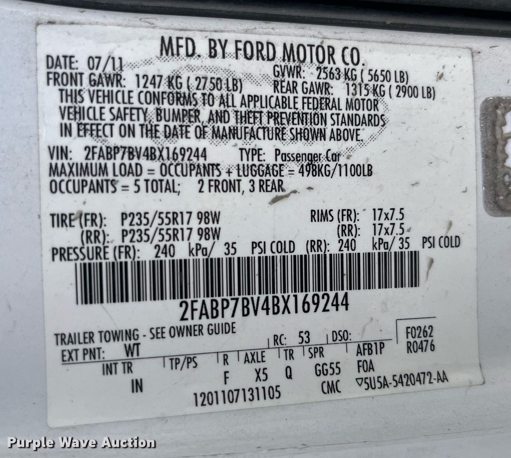 - VIN: 2FABP7BV4BX169244