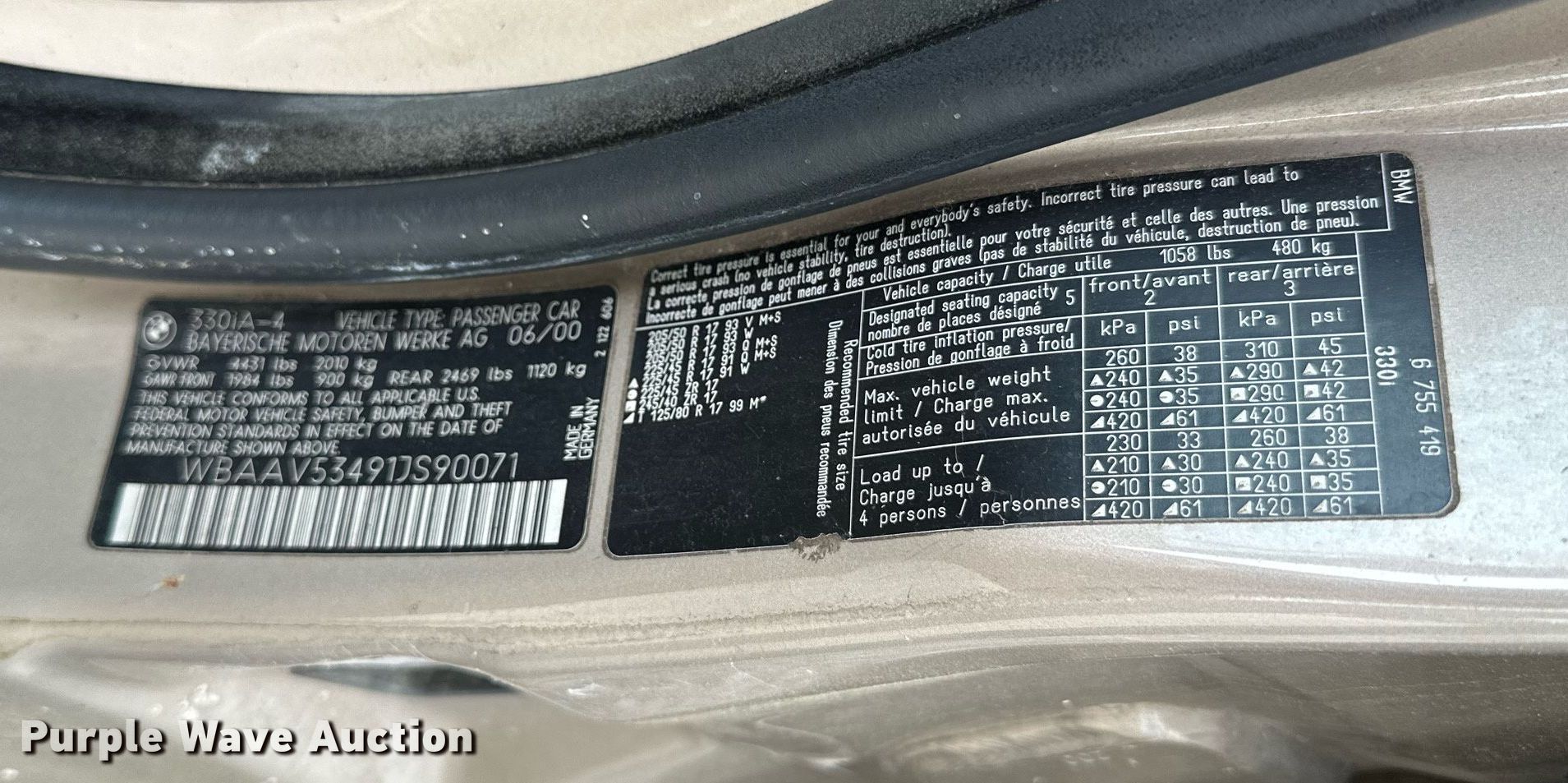 Purple Wave is selling a used Passenger Vehicle in Oklahoma. This item is a 2001 BMW 330i with the following: Miles: 178,950 on odometer, VIN: WBAAV53491JS90071