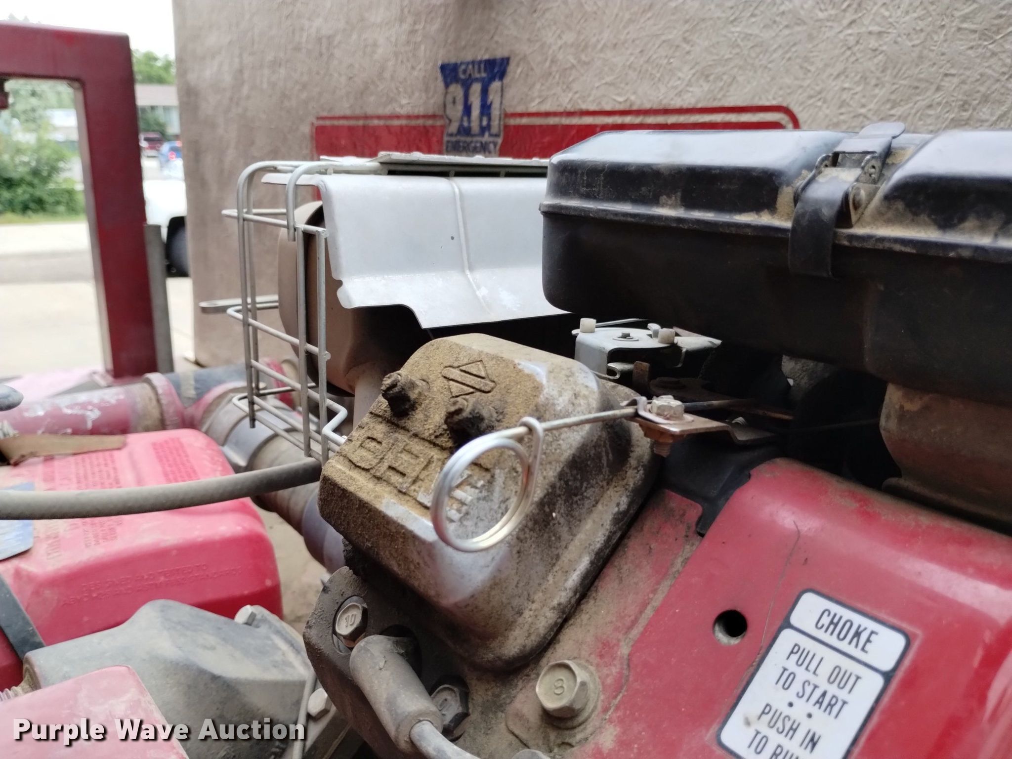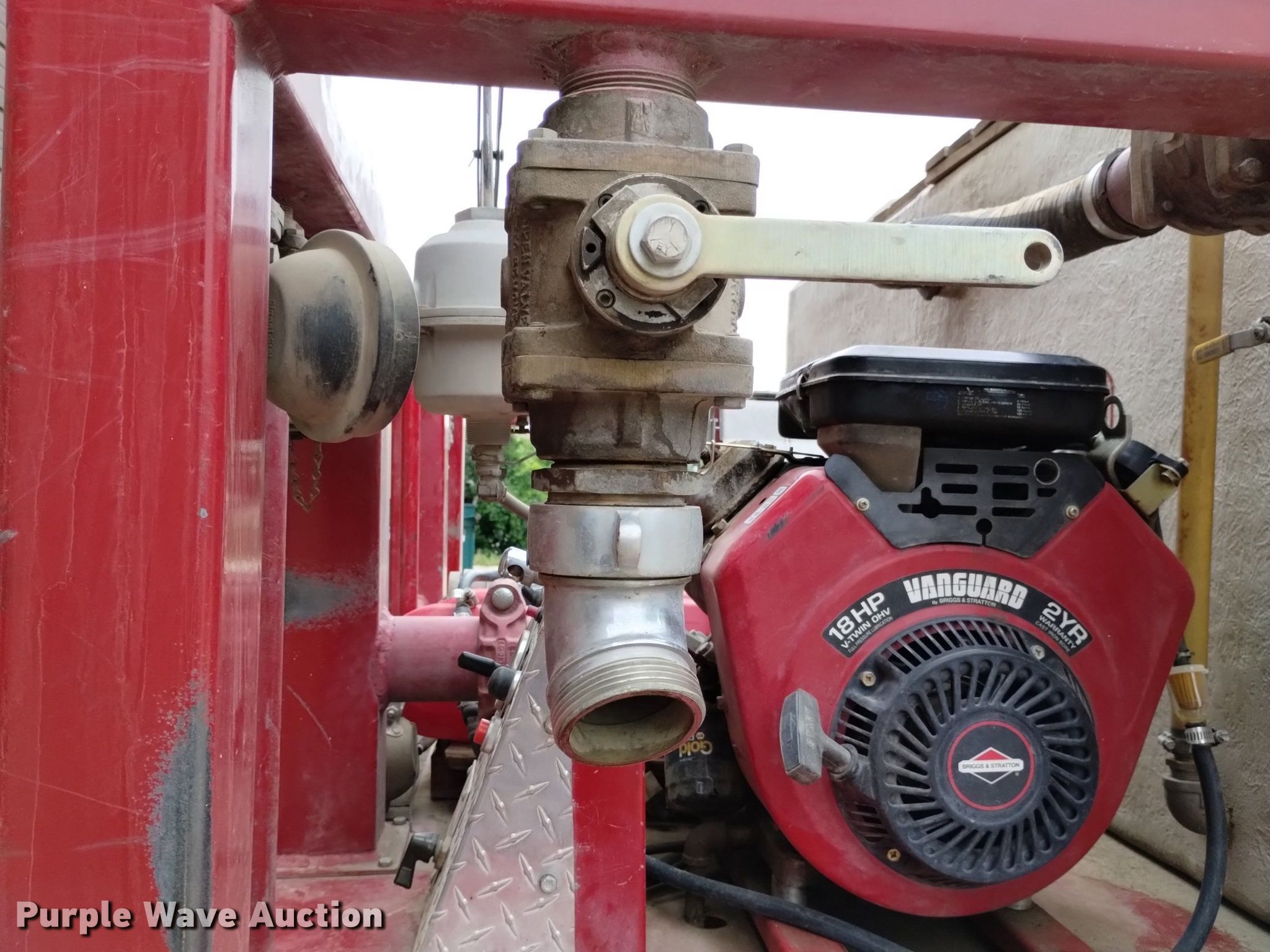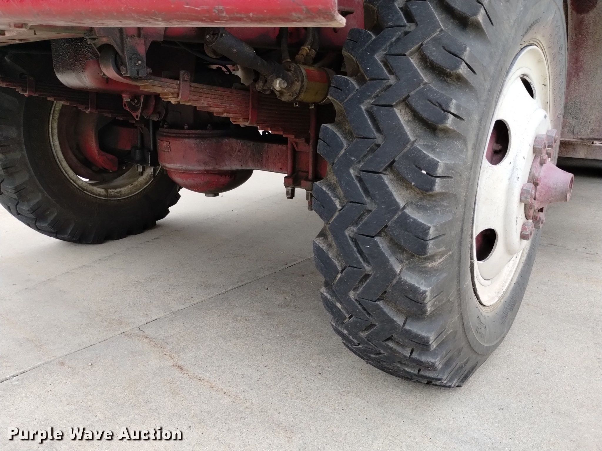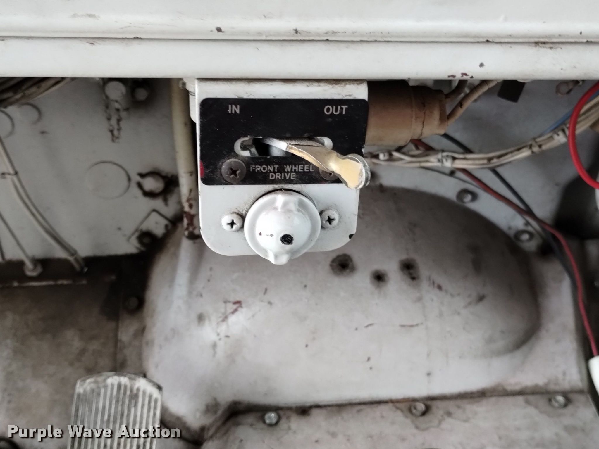 1972 Jeep M45A2 pumper fire truck. Miles: 17,829 on odometer, VIN: 04A34971053410248. Engine White 465IC, Serial: 1874104, Multifuel, Cylinders: 6. Transmission Manual, Speed: 5. Chassis Four wheel drive, Axles: Tandem, Suspension: Spring, Brakes: Hydraulic, GVWR: 20,417 lbs. Interior Heat. Features Fire truck body Pump, Briggs & Stratton gas engine, HP: 18, Cylinders: 2, Outlet: 3", Hose, Tank Capacity: 800 gallons. Tires Size: 9.00-20. Wyoming title. Glenrock Fire Department. 704 West Birch Street. Glenrock, WY 82637