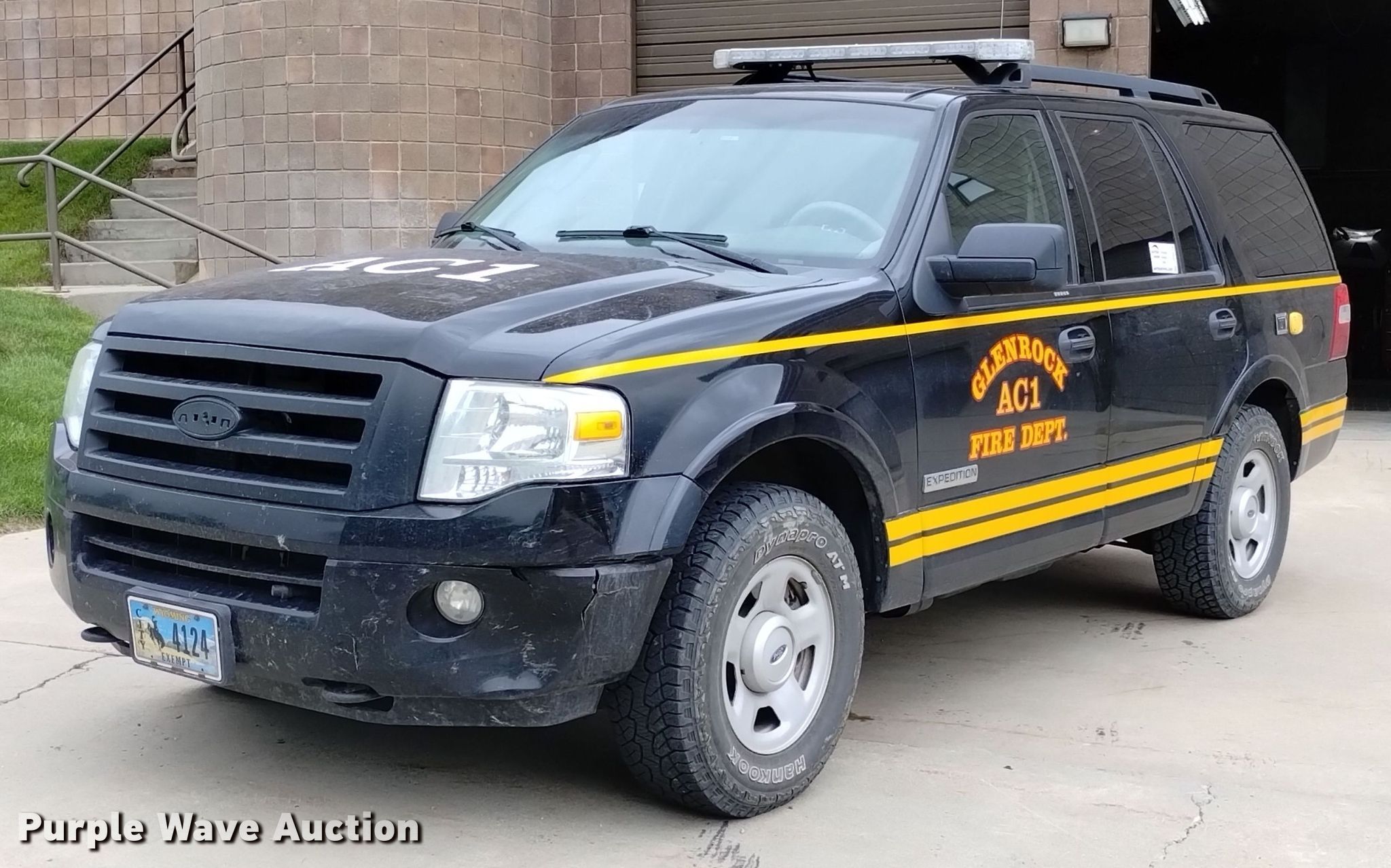 2008 Ford Expedition SUV. Miles: 141,234 on odometer, VIN: 1FMFU165X8LA49770. Engine Displacement: 5.4L V8 SOHC, Cylinders: 8, Fuel type: Gas. Transmission Automatic, Four wheel drive. Interior AC, Heat, Seat: Power driver, Power windows, Power locks, Cruise control. Tires Size: 265/70R17. Notes Radio will be removed prior to auction. Wyoming title. Title distribution may be delayed up to 14 days from verification of funds. Glenrock Fire Department. 704 West Birch Street. Glenrock, WY 82637