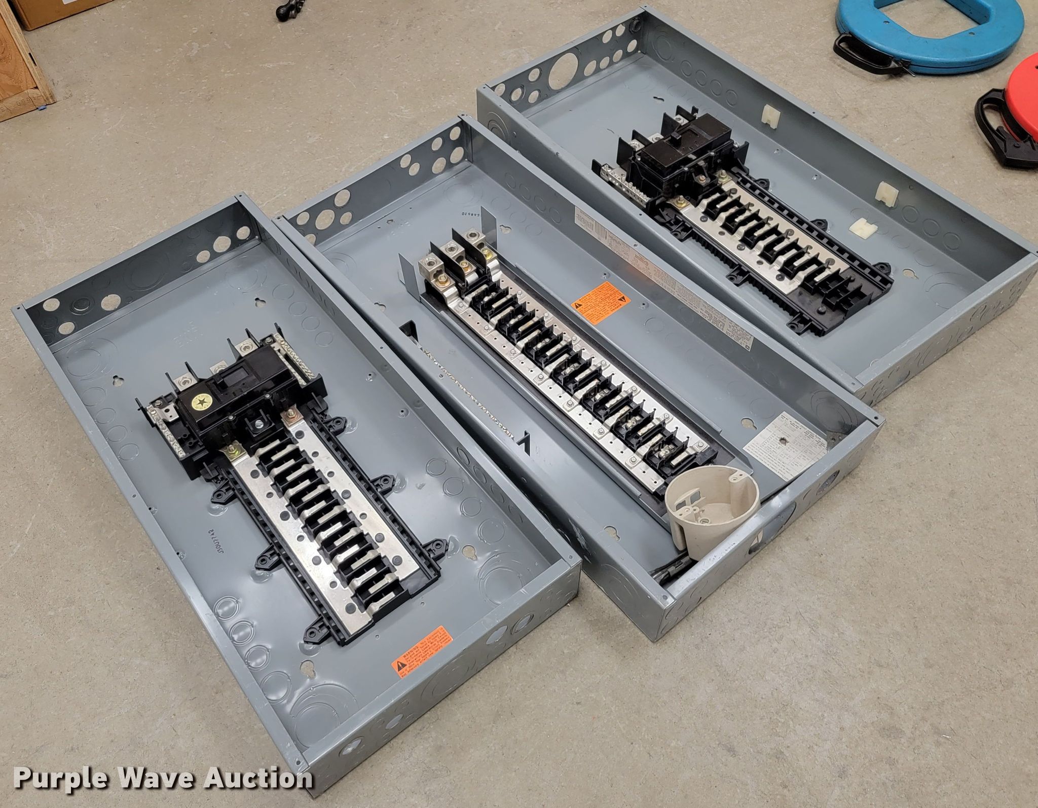 Purple Wave is selling a used Building Materials in Kansas. This item is a Building materials with the following: Approx. 25 breaker boxes, Circuit breakers, (2) fish tapes
