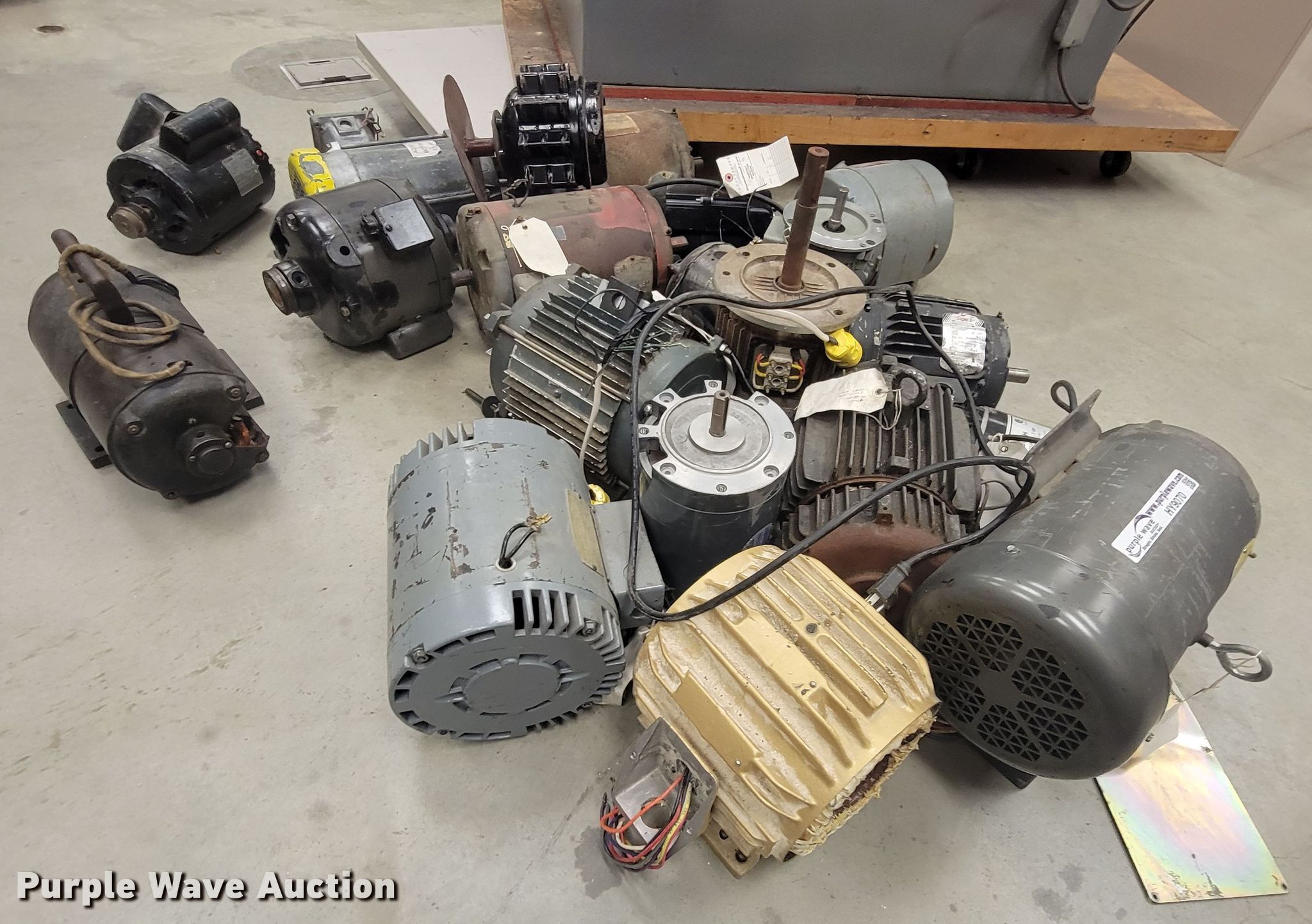 Purple Wave is selling a used Electric Motor in Kansas. This item is a Approximately 15 electric motors with the following: Leeson, Winsmith Input, HP: 0.273, GE Motors, TEFC, HP: 5, WEG, HP: 5, Star, HP: 0.3, Super E, HP: 1.75, GE, HP: 1.5, Fly wheel