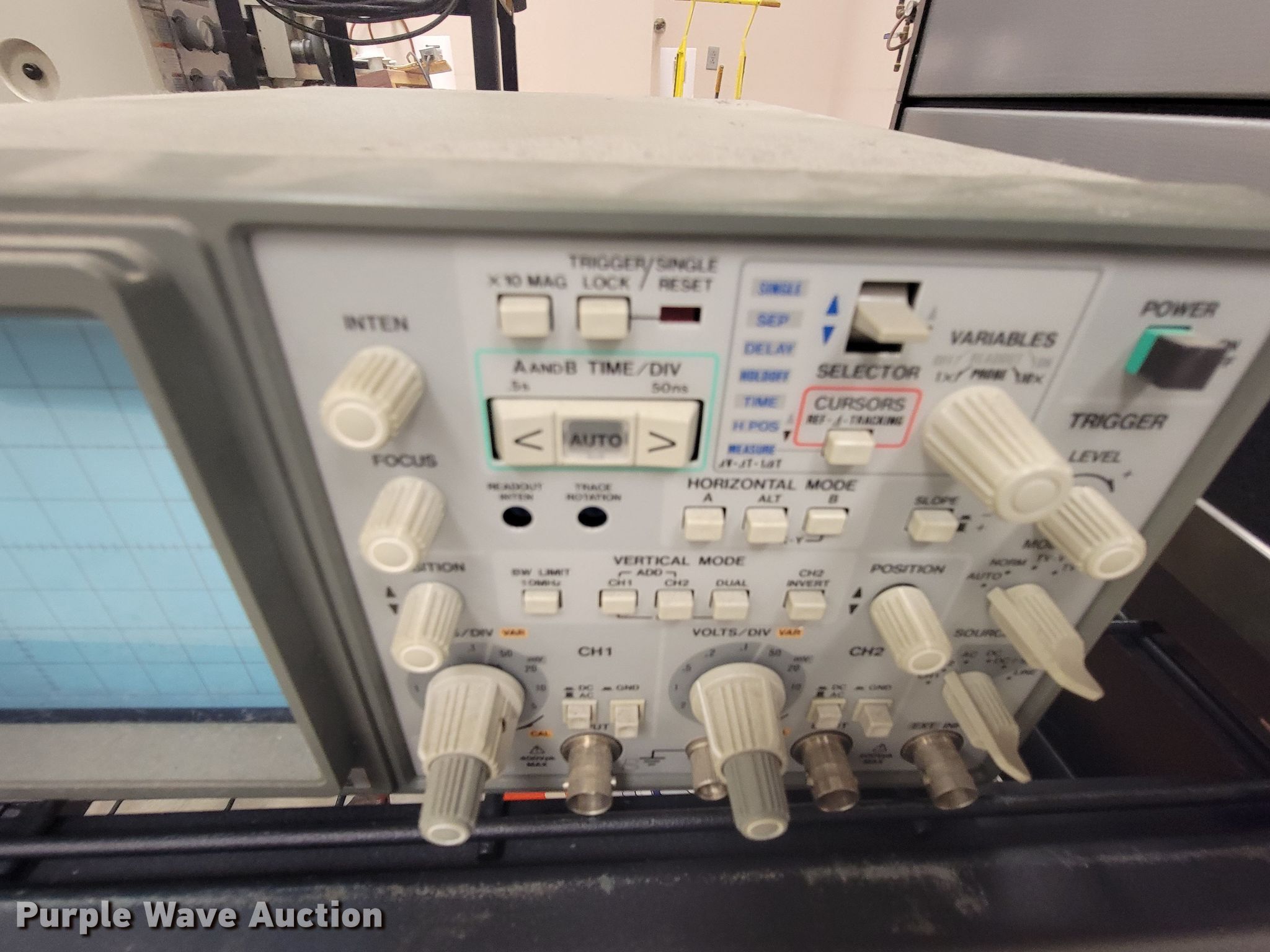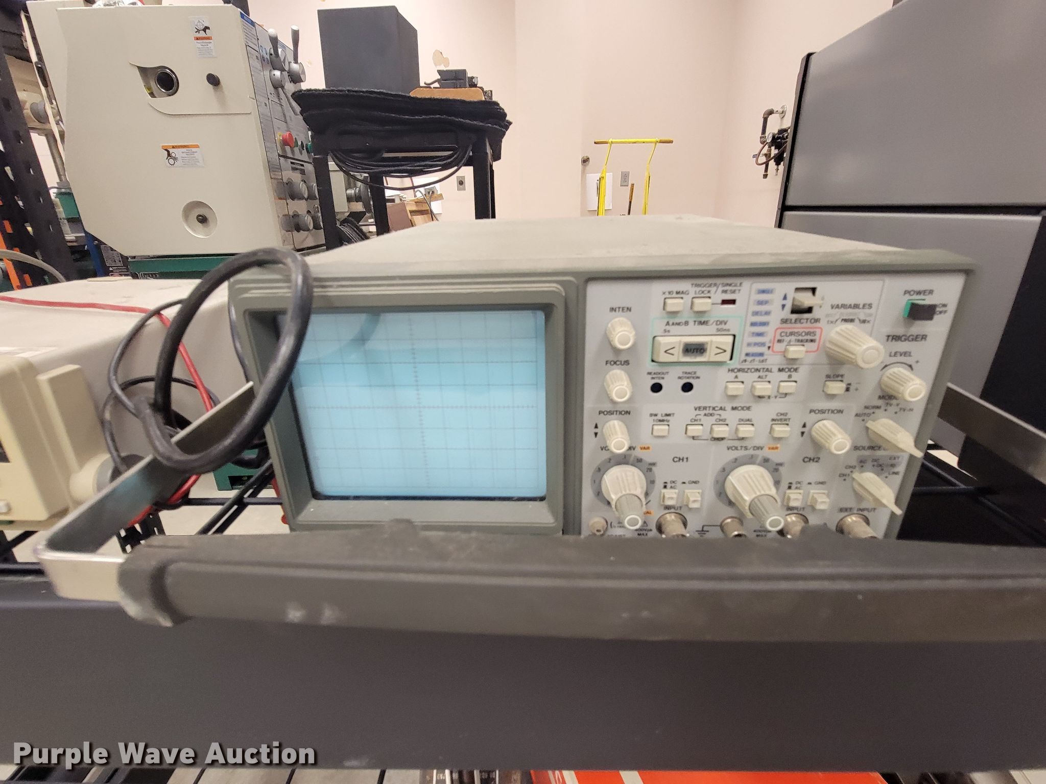 Purple Wave is selling a used Electronics in Kansas. This item is a Electronics with the following: Telequiment S61 oscilloscope, Heathkit power supply, Fluke 45 multimeter, (2) B&K Precision 1801 frequency counter, HM8028 spectrum analyzer