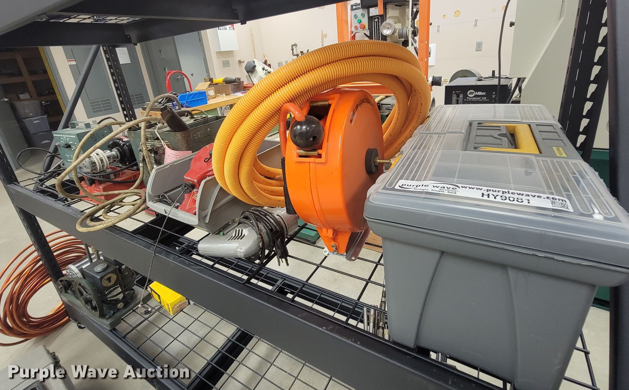 Purple Wave is selling a used Tools in Kansas. This item is a Tools with the following: Ryobi tools, 18V, Charger, Battery, Hose reel, Flex tube, (5) retractors, Skill drill, Ideal power unit, Rush C-100 wire stripper