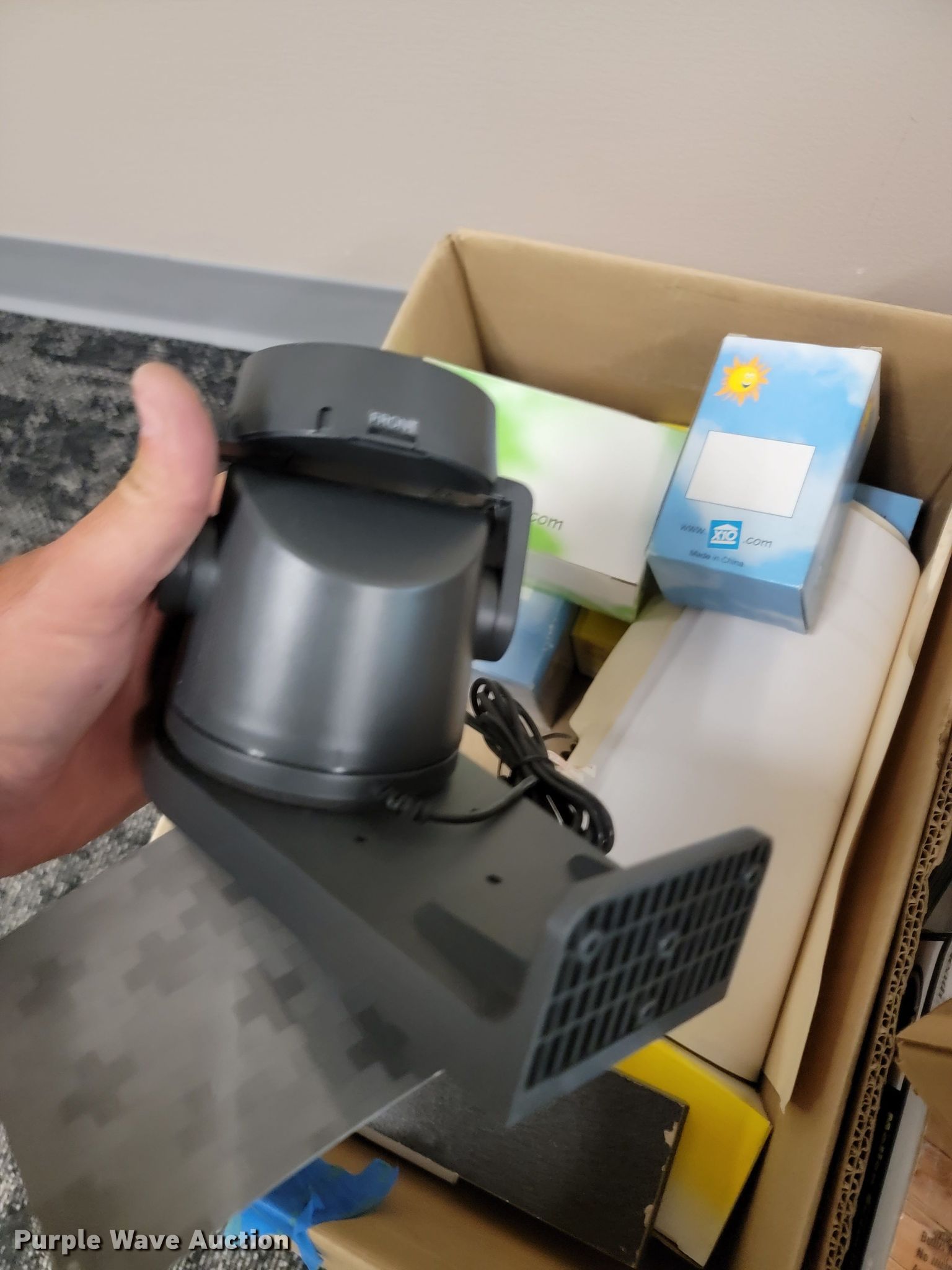 Purple Wave is selling a used Building Materials in Kansas. This item is a Building materials with the following: (2) in-ceiling speakers, Barking dog alarm, Dual band responders, Thermostat, Approx. 50 dimmer switches, Lights, Outdoor outlet timers, Security cameras and more