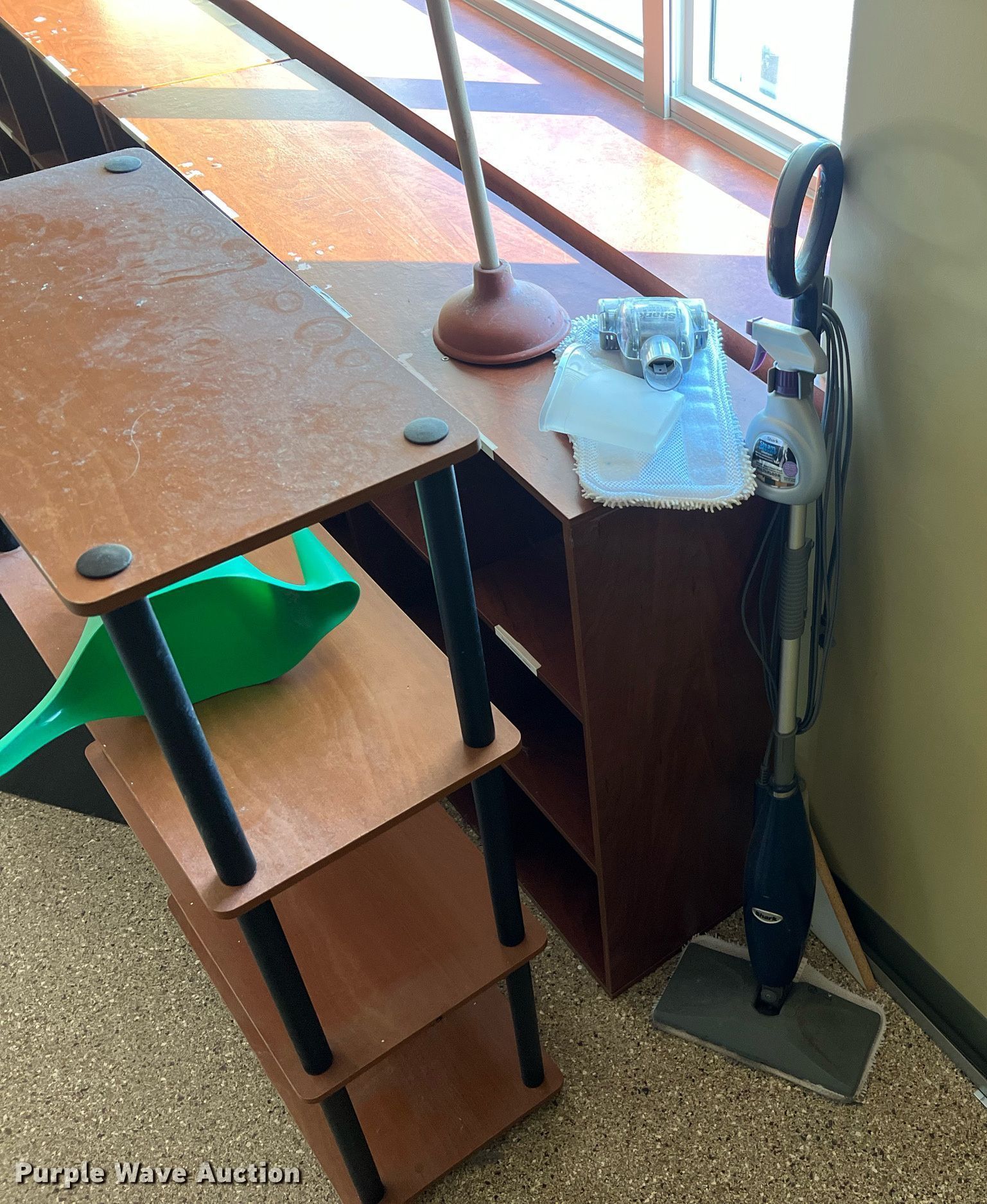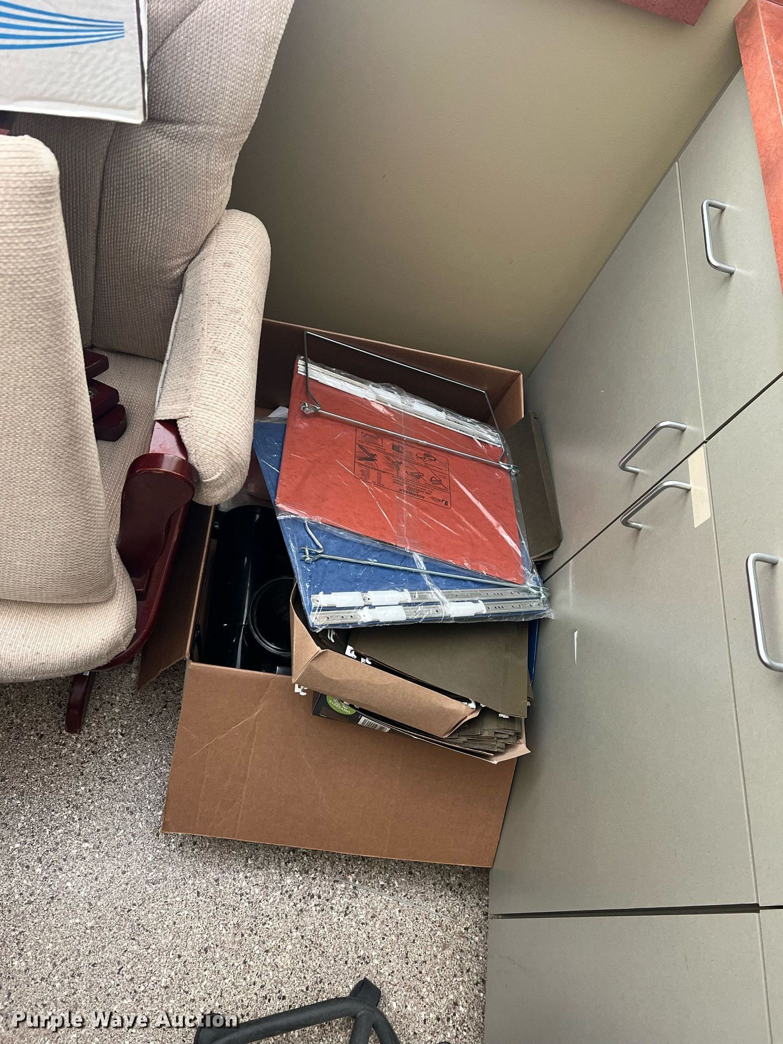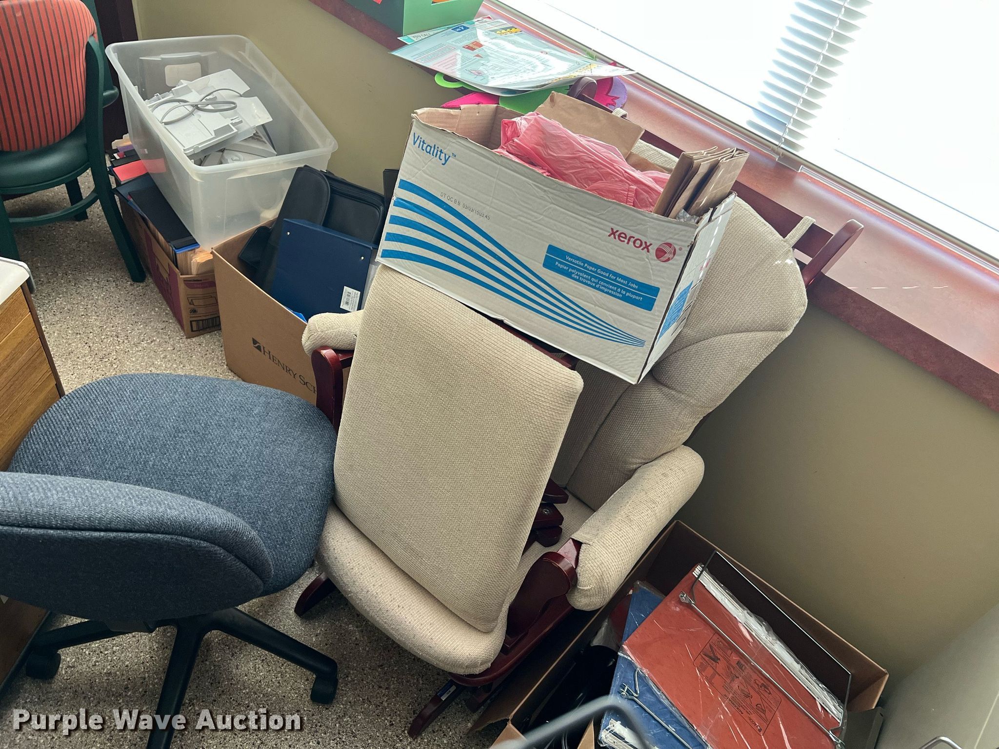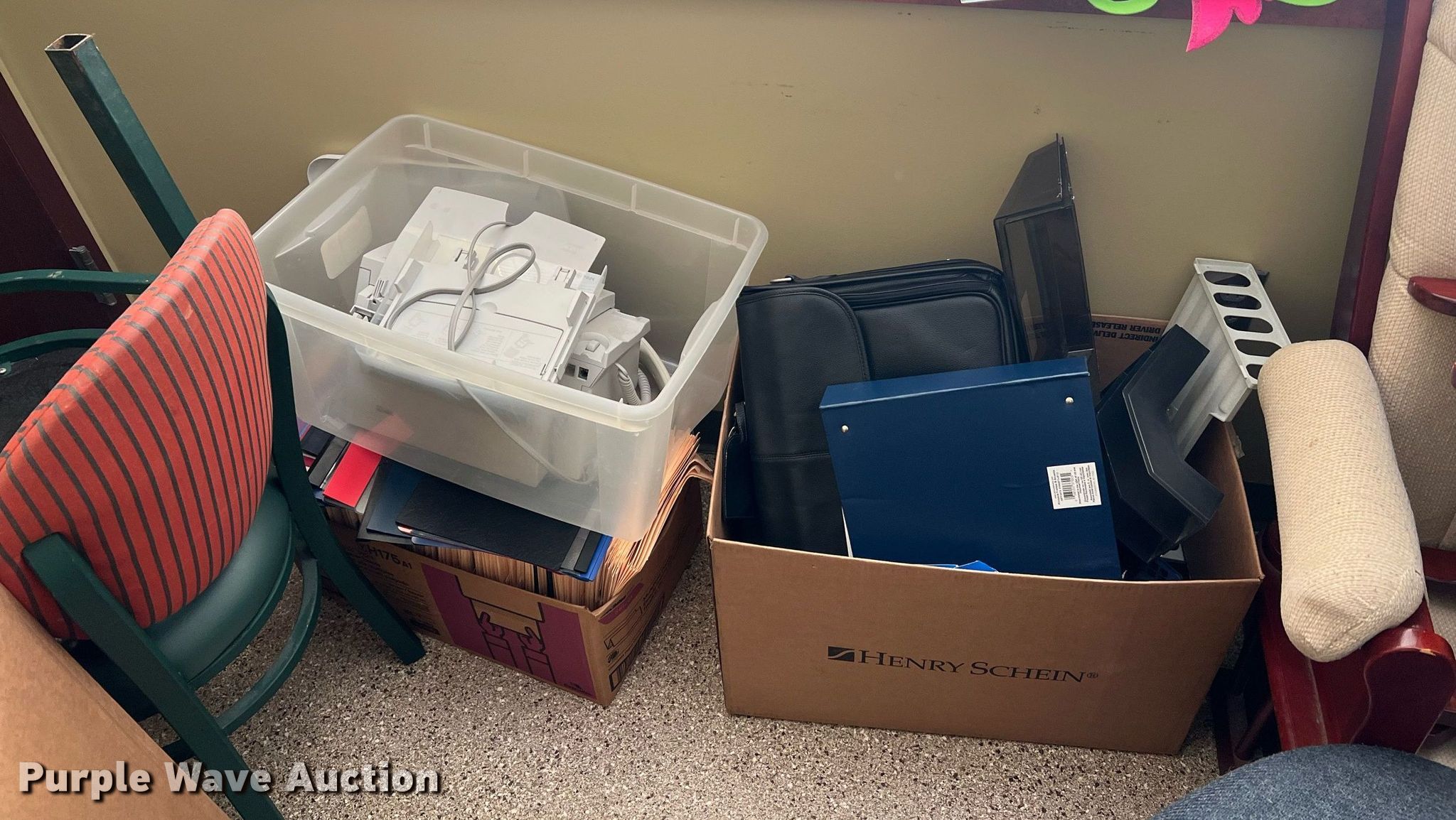 Purple Wave is selling a used Office Supplies and Equip. in Missouri. This item is a Office supplies and equipment with the following: Printers, Paper shredder, Chairs, Desks, Tables, Shelves, RCA television, Rugs, Shark steam mop, CPR mannequins