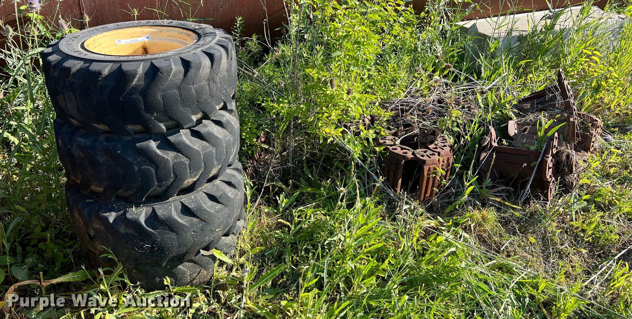 Purple Wave is selling a used Industrial Tires or Tracks in Missouri. This item is a Tires and tracks with the following: 12-16.5 NHS foam-filled tires, Eight lug wheels, 14.5"W over the tire tracks