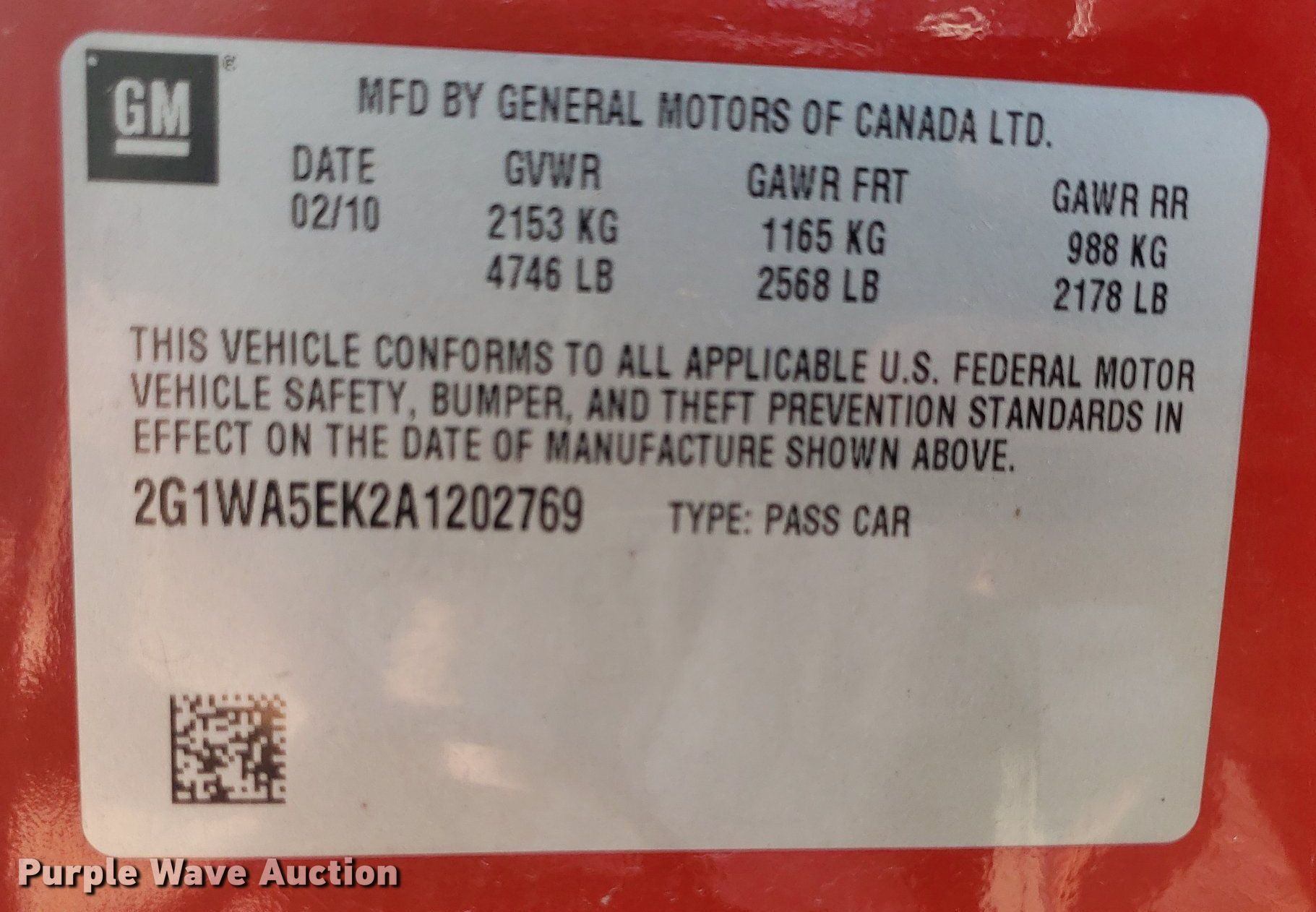 2010 Chevrolet Impala. Miles: 128,410 on odometer, VIN: 2G1WA5EK2A1202769. Engine Displacement: 3.5L V6 OHV, Cylinders: 6, Fuel type: Gas. Transmission Automatic. Interior AC, Heat, Seat: Power driver, Power windows, Power locks, Cruise control. Tires Size: 225/60R16. Notes Dash warning indicator: Airbag. Kansas rebuilt salvage title. Title distribution may be delayed up to 14 days from verification of funds. Newton, KS 67114