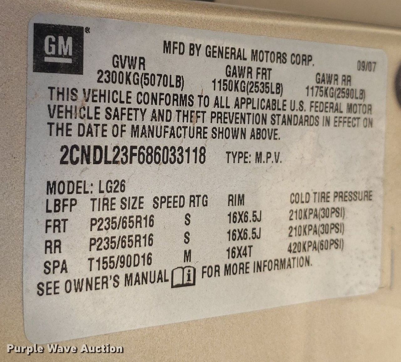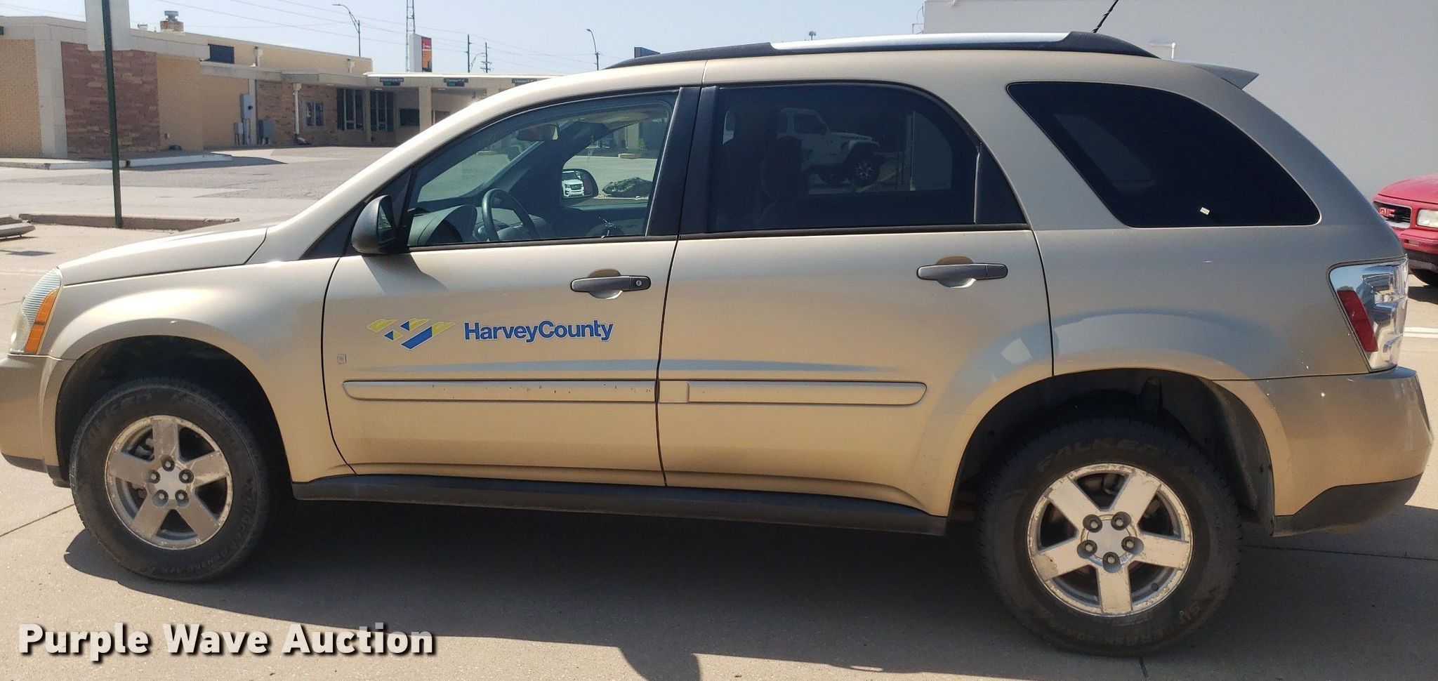 2008 Chevrolet Equinox SUV. Miles: 72,544 on odometer, VIN: 2CNDL23F686033118. Engine Displacement: 3.4L V6 OHV, Cylinders: 6, Fuel type: Gas. Transmission Automatic. Interior AC, Heat, Power windows, Power locks, Cruise control. Tires Size: 235/65R16. Notes Dead battery, Non-operational rear door. Kansas title. Title distribution may be delayed up to 14 days from verification of funds. Harvey County Communications. 800 North Main Street. Newton, KS 67114