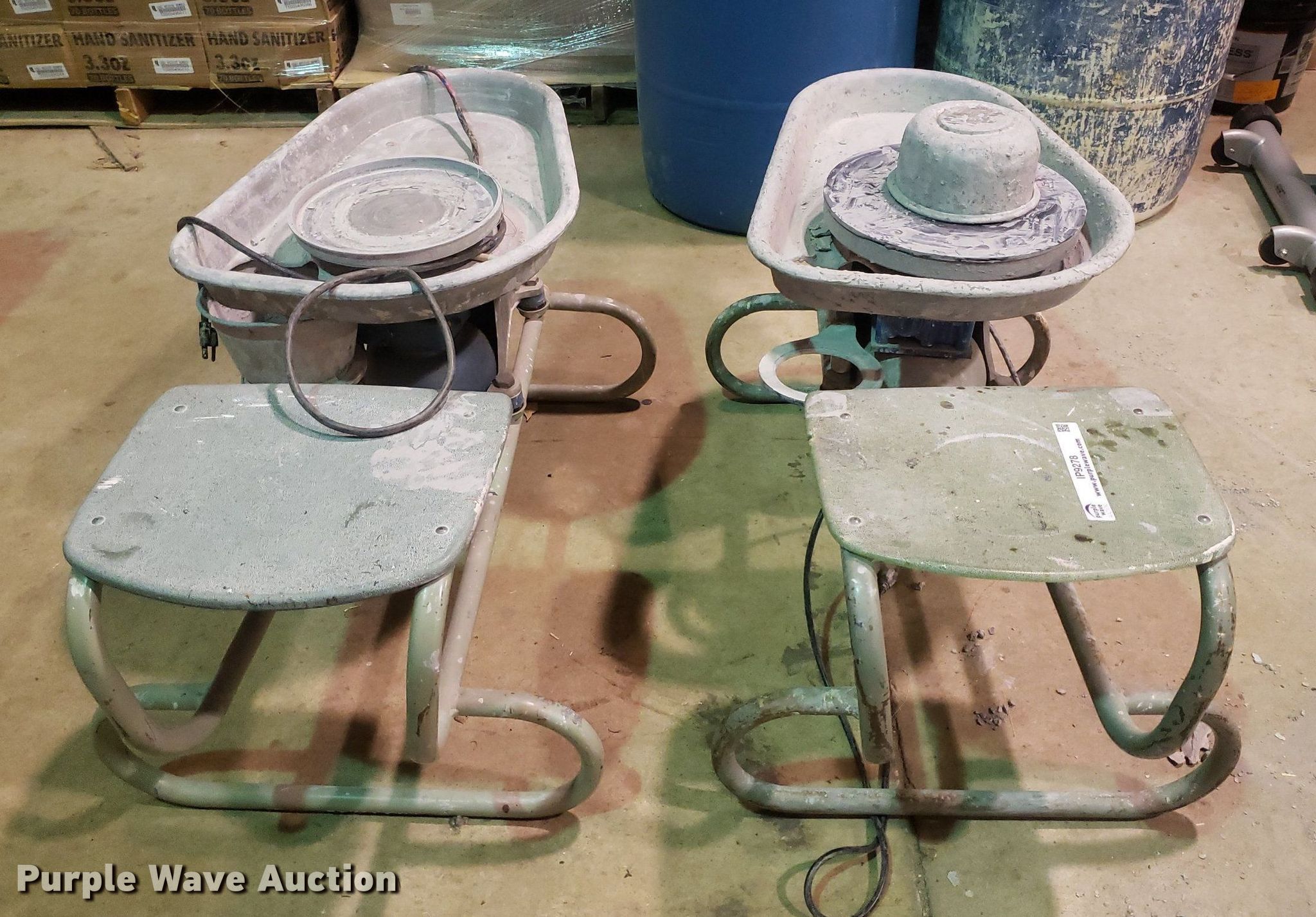 Purple Wave is selling a used Sporting Goods in Kansas. This item is a (2) Morse ED pottery wheels with the following: Volts: 115, Phase: Single, HP: 1/3, Unknown operating condition
