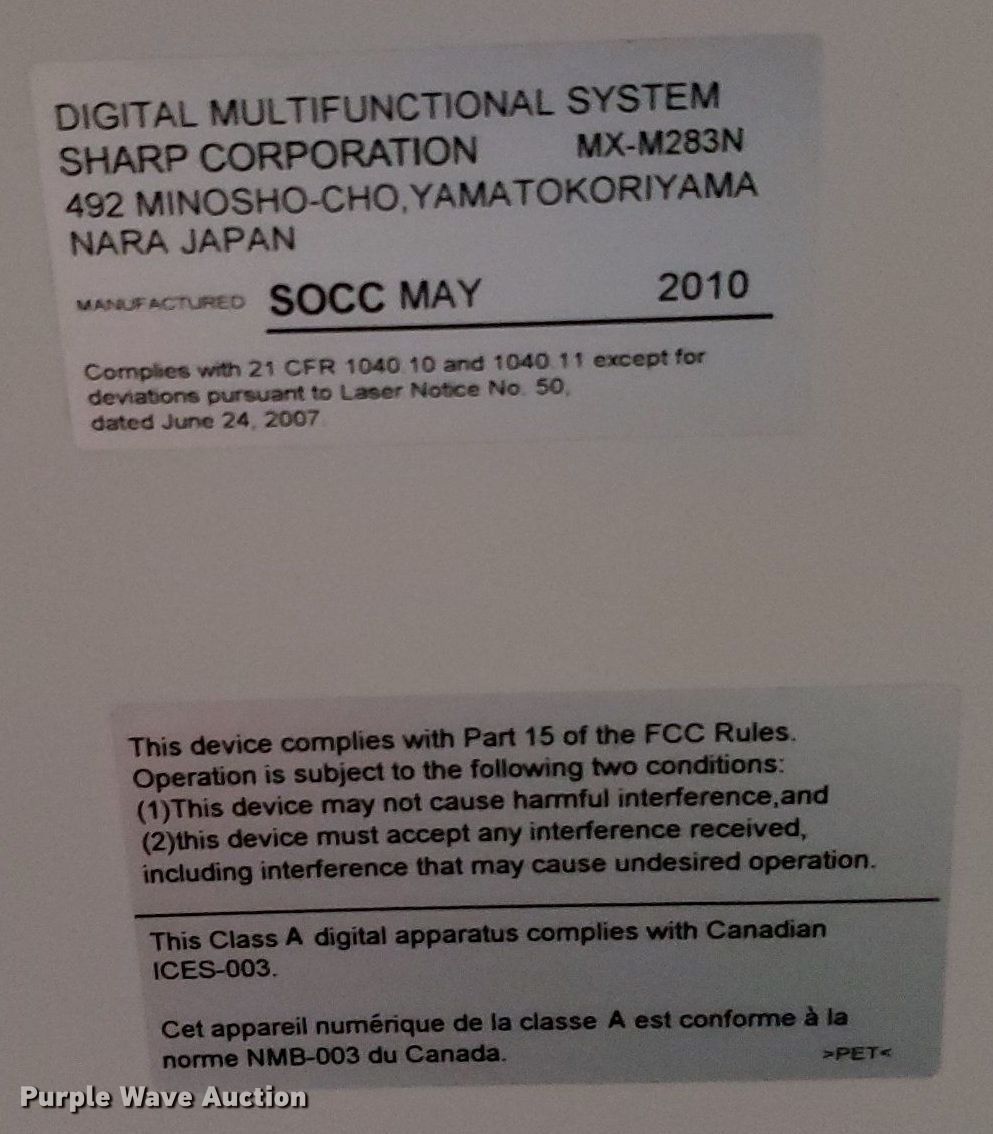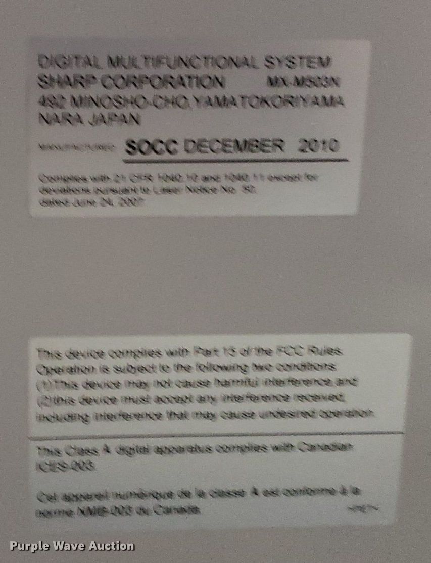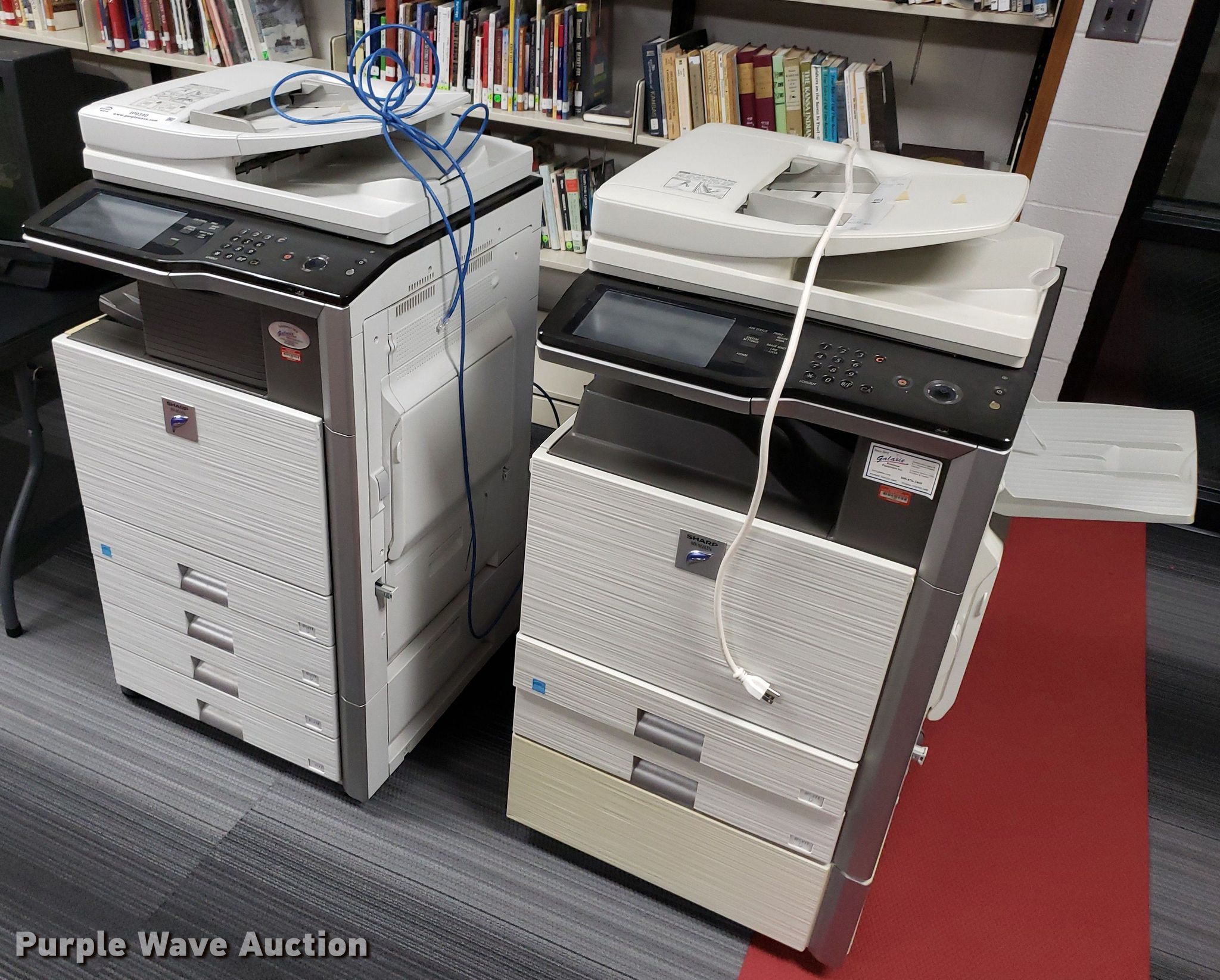 Purple Wave is selling a used Copy or Printing Machine in Kansas. This item is a (3) Sharp multifunction printers with the following: MX-M503N, MX-M283N, MX-3610N