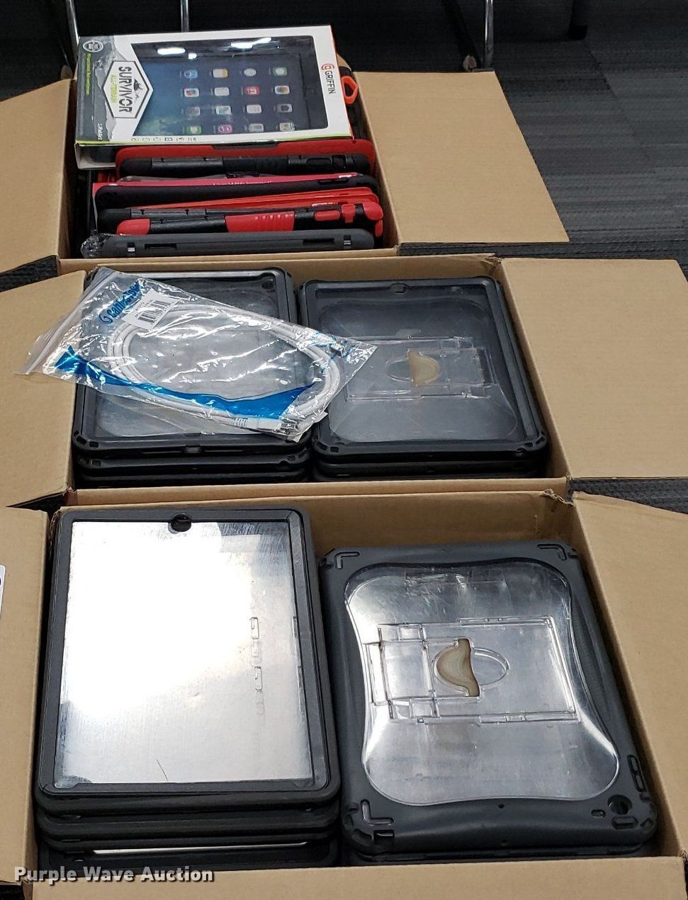 Purple Wave is selling a used Electronics in Kansas. This item is a Approximately 75 tablet cases with the following: Fit Apple iPad Air and iPad 6