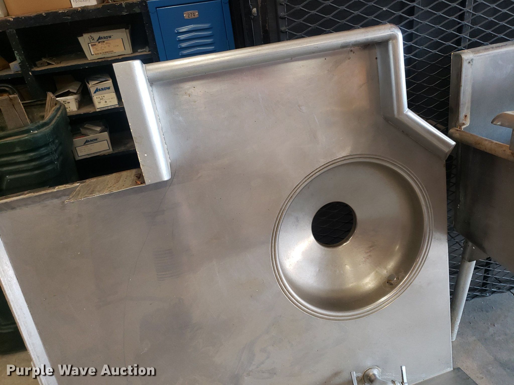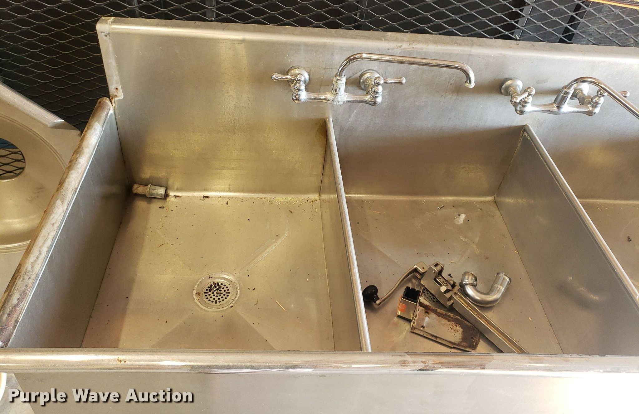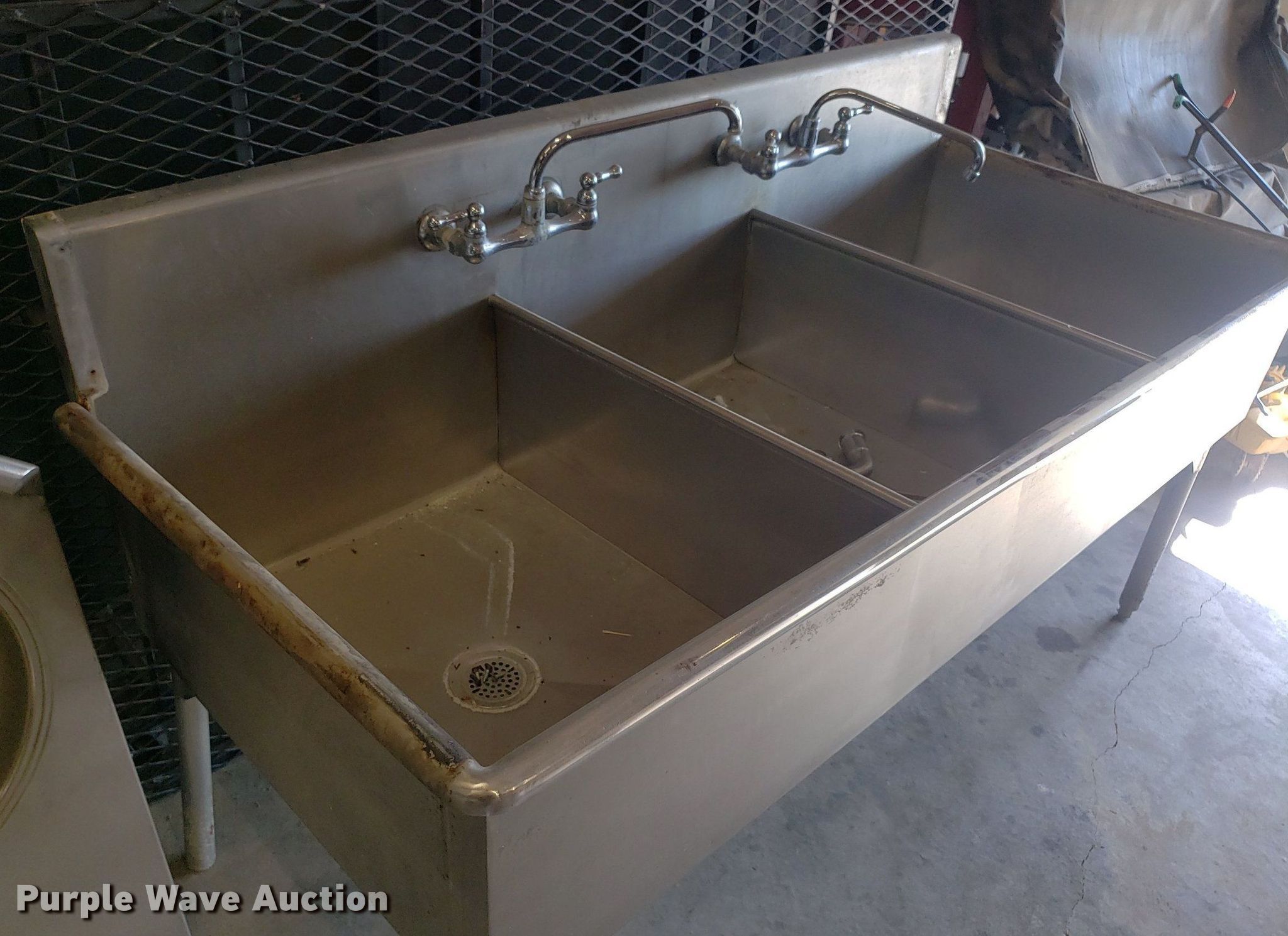 Purple Wave is selling a used Restaurant Equip. in Kansas. This item is a (3) 72" x 30" x 34" stainless steel sinks with the following: Garbage disposal corner mount