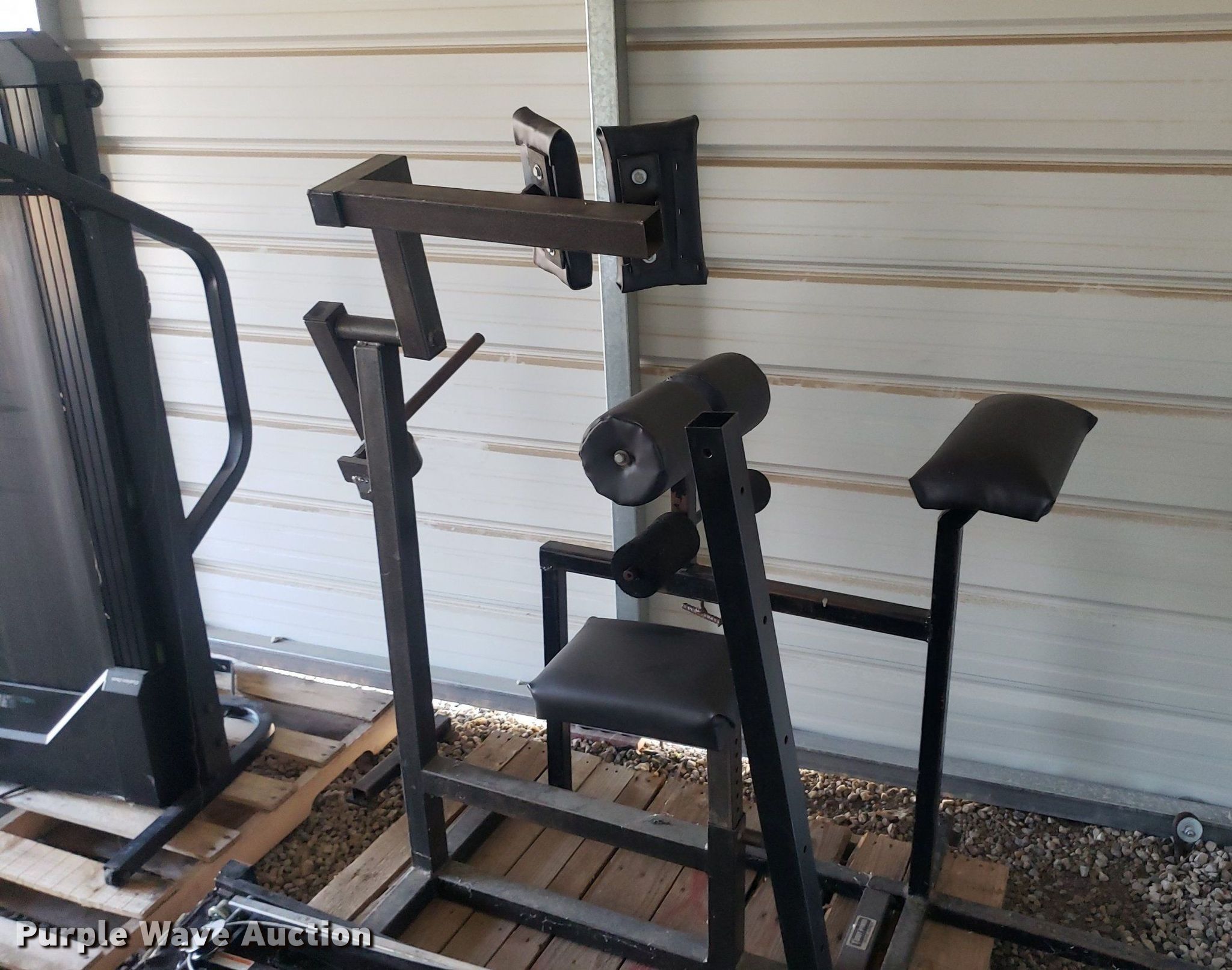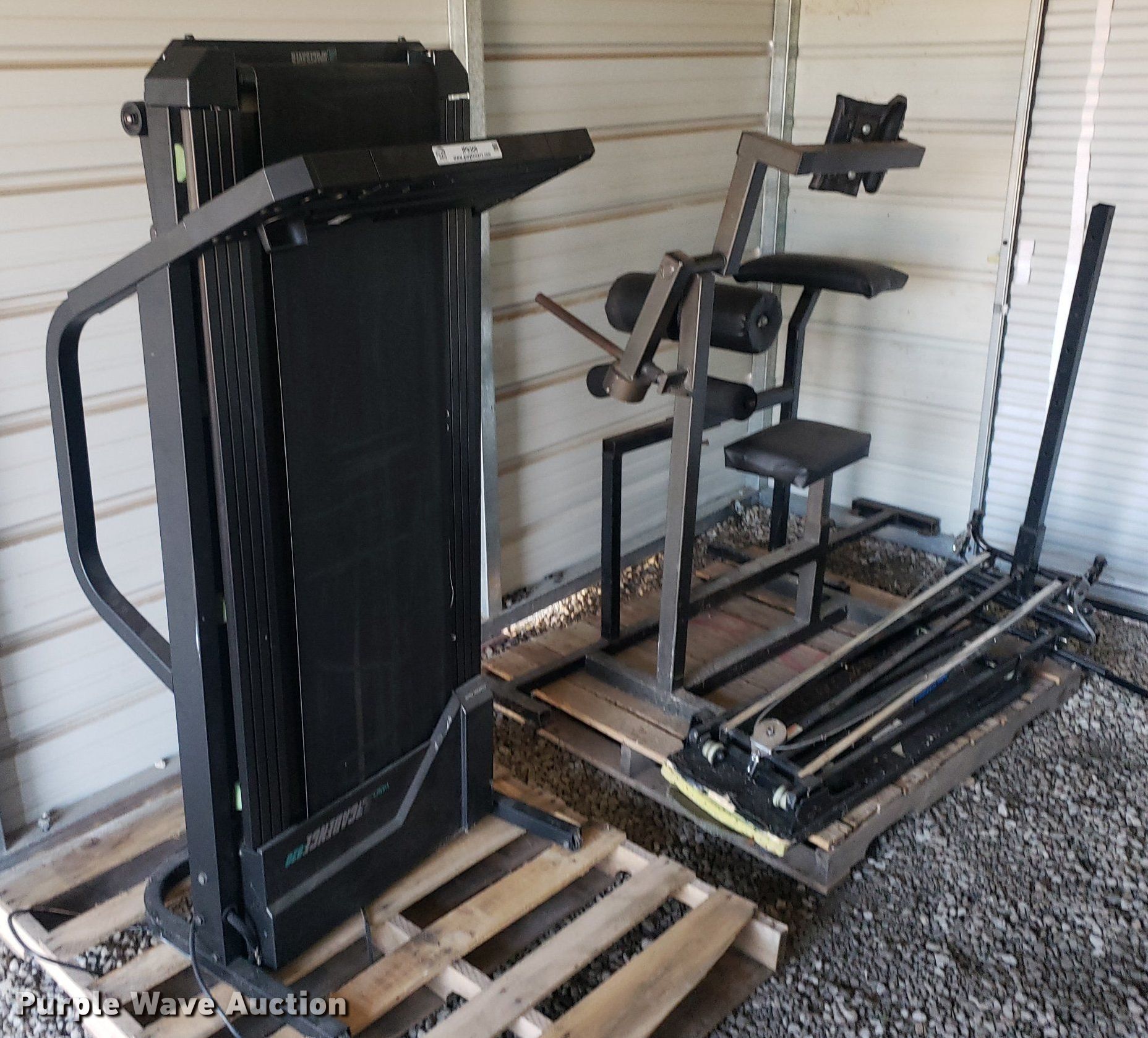 Purple Wave is selling a used Sporting Goods in Kansas. This item is a Exercise equipment with the following: Total Gymn1500 cable machine, Wesco Cadence 820 space saver treadmill, Back extension machine, Neck extension machine