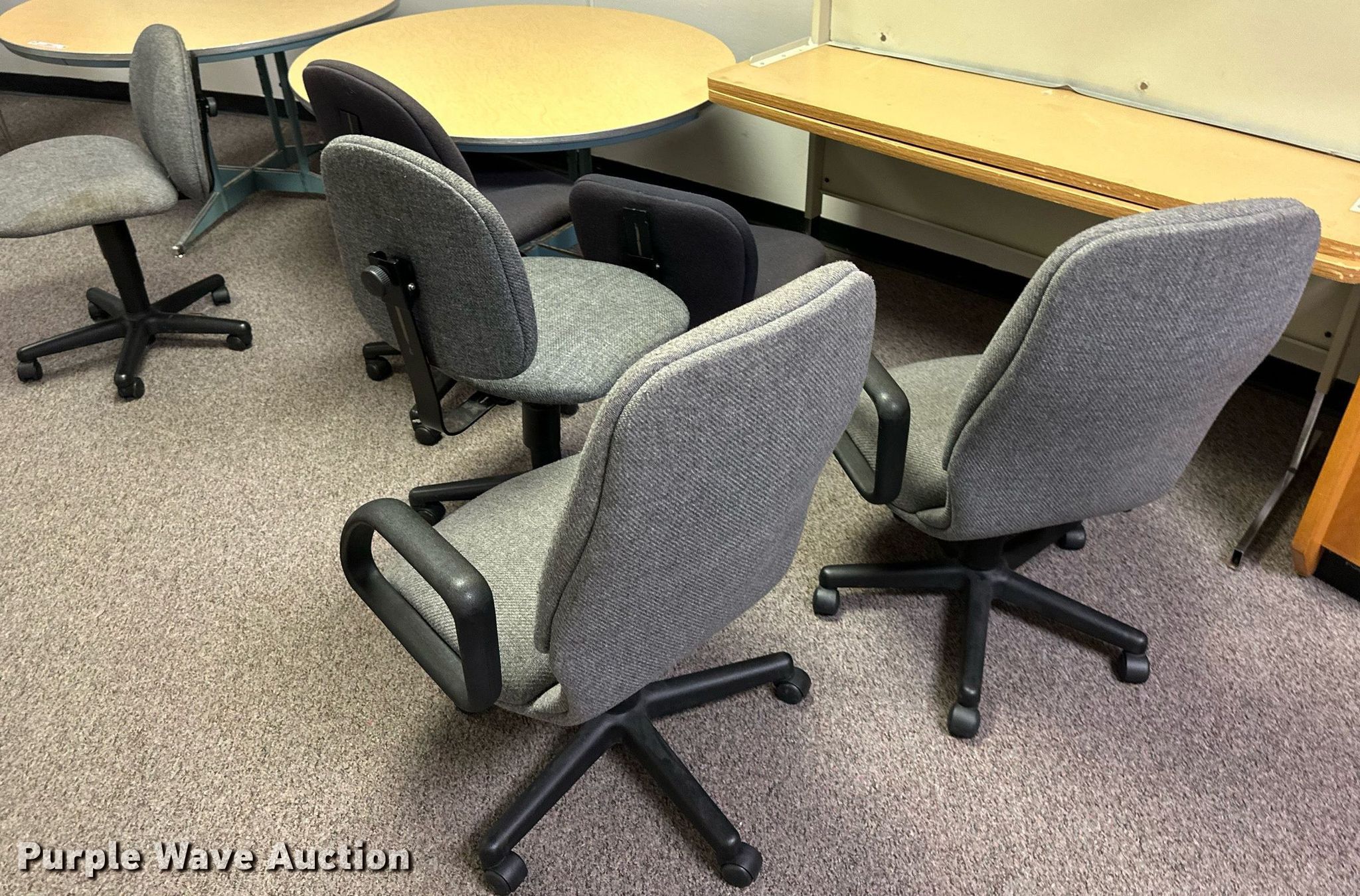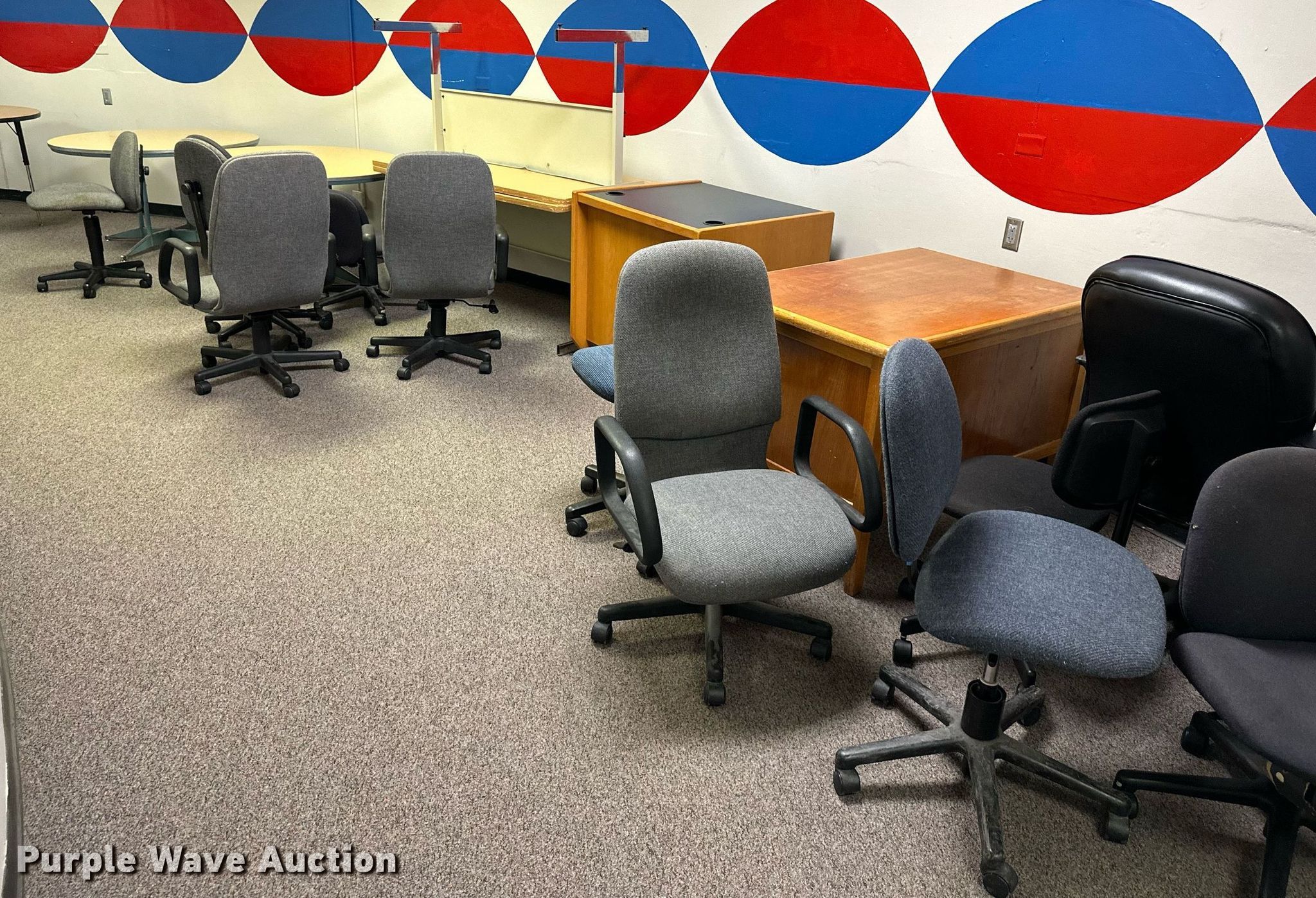 Purple Wave is selling a used Furniture in Kansas. This item is a Office furniture with the following: (11) chairs, (6) tables