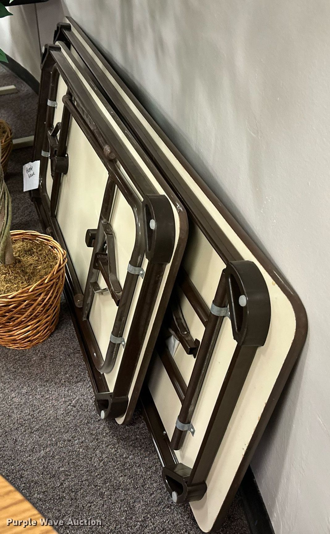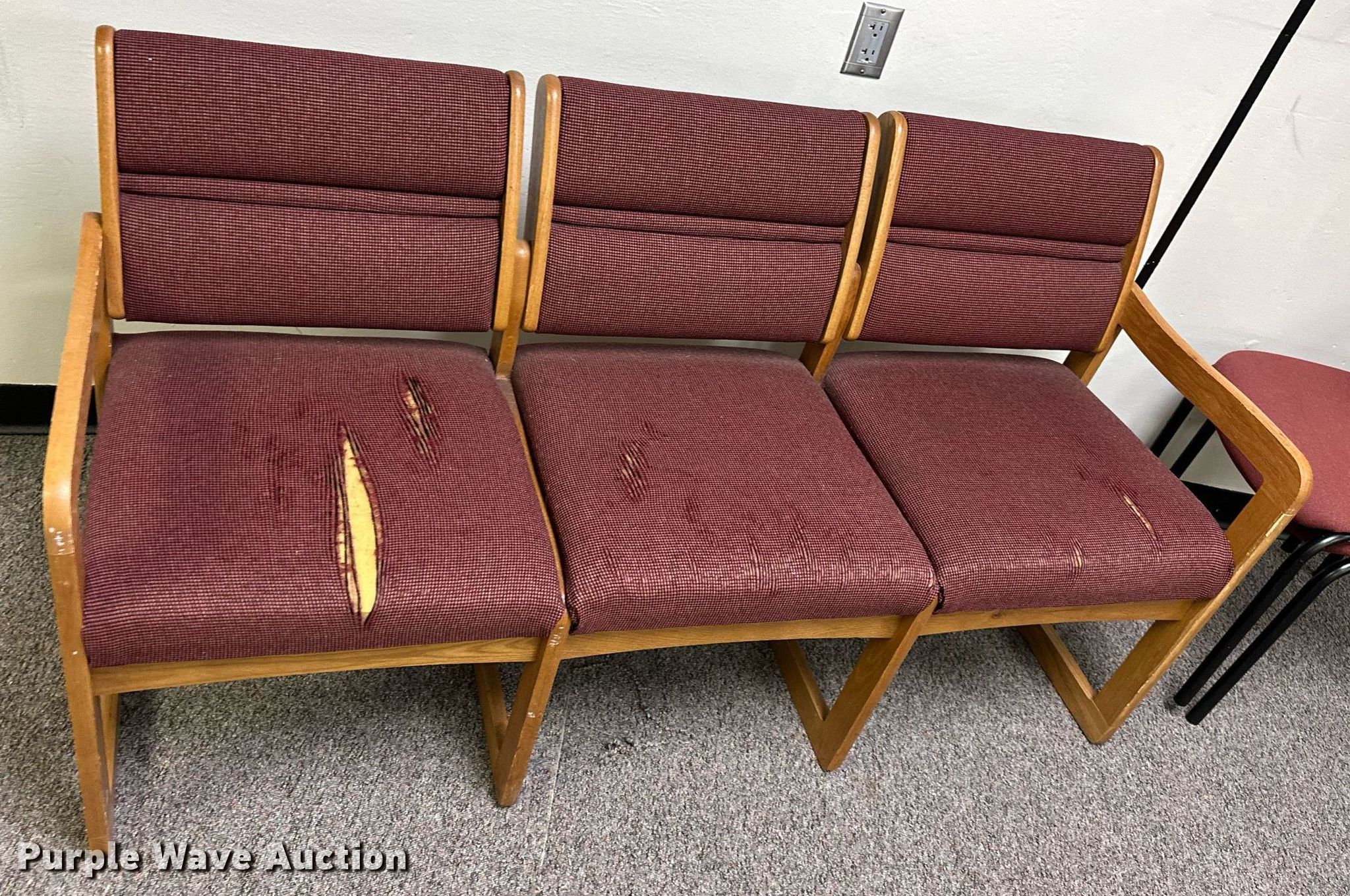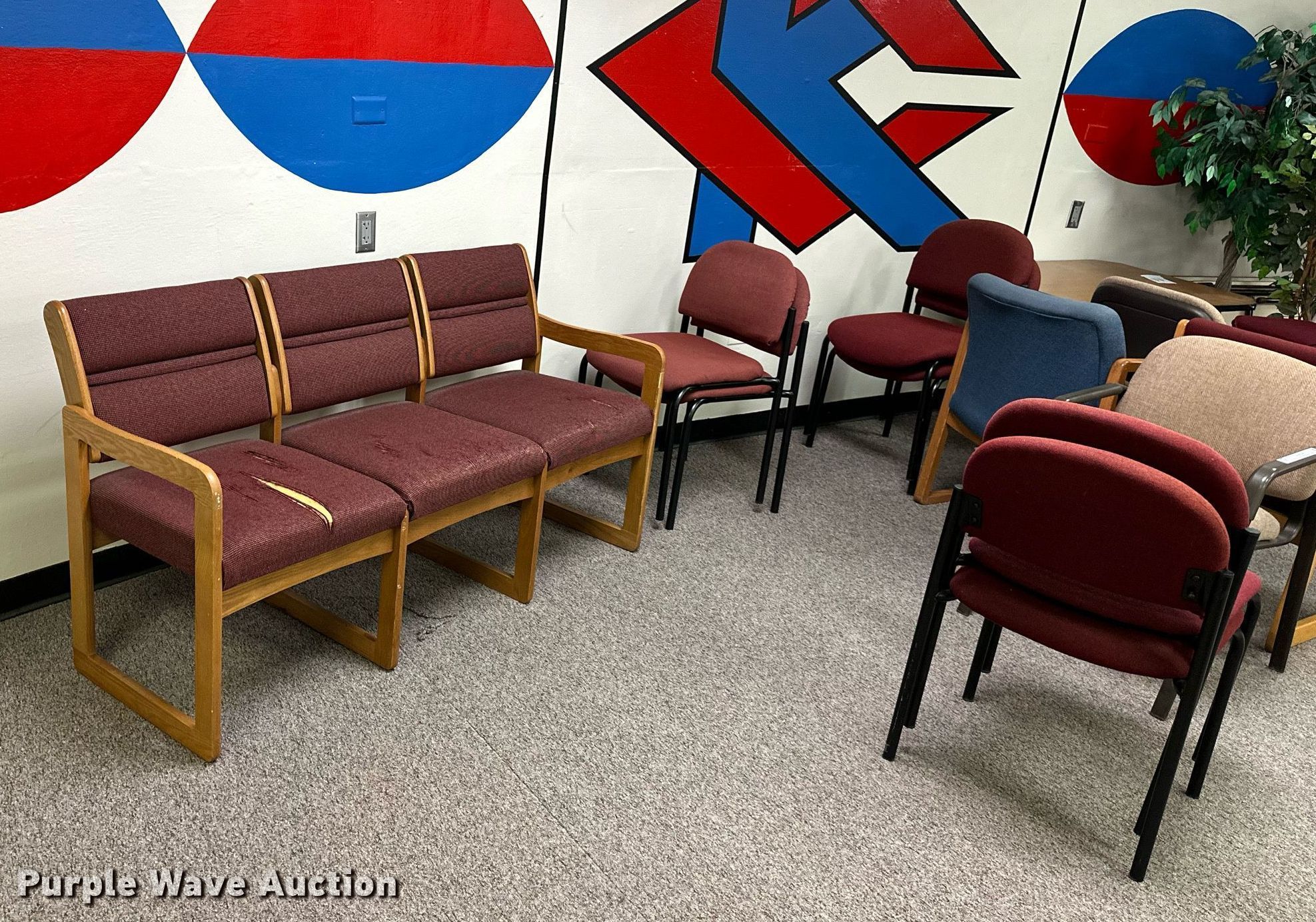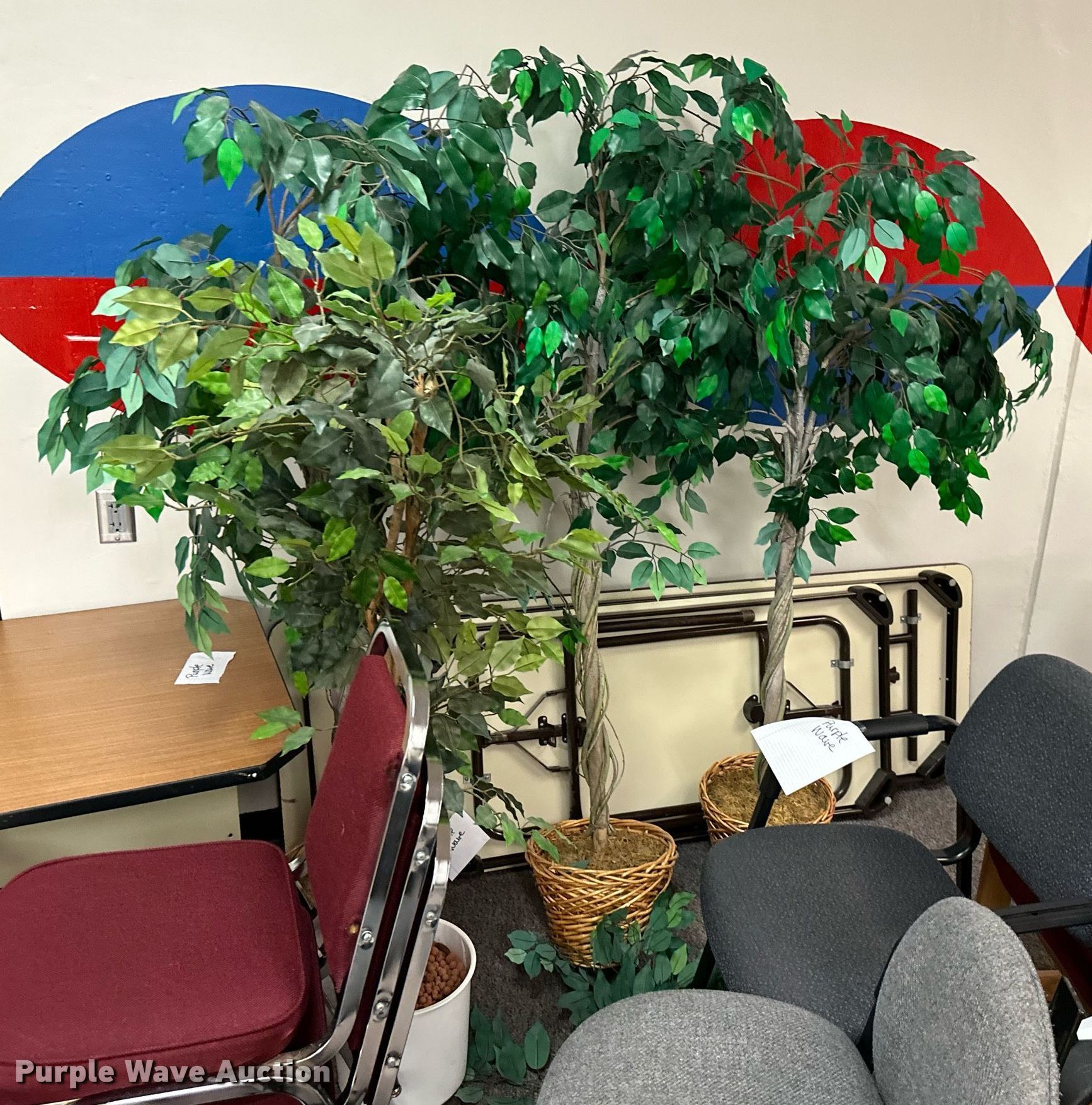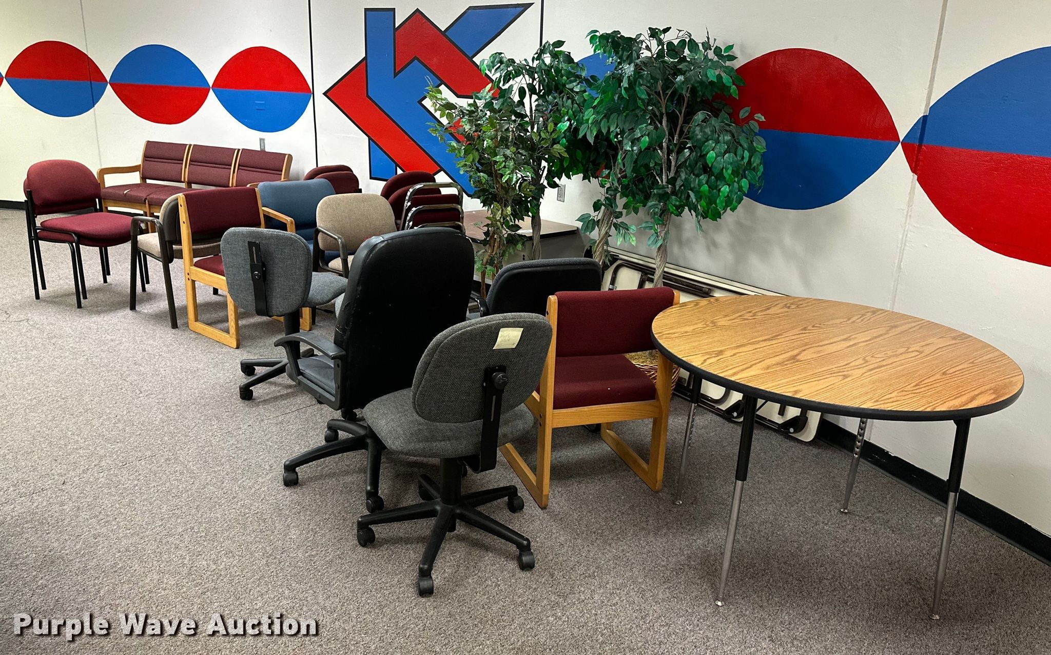 Purple Wave is selling a used Furniture in Kansas. This item is a Office furniture with the following: (19) chairs, (3) tables, 4 trees