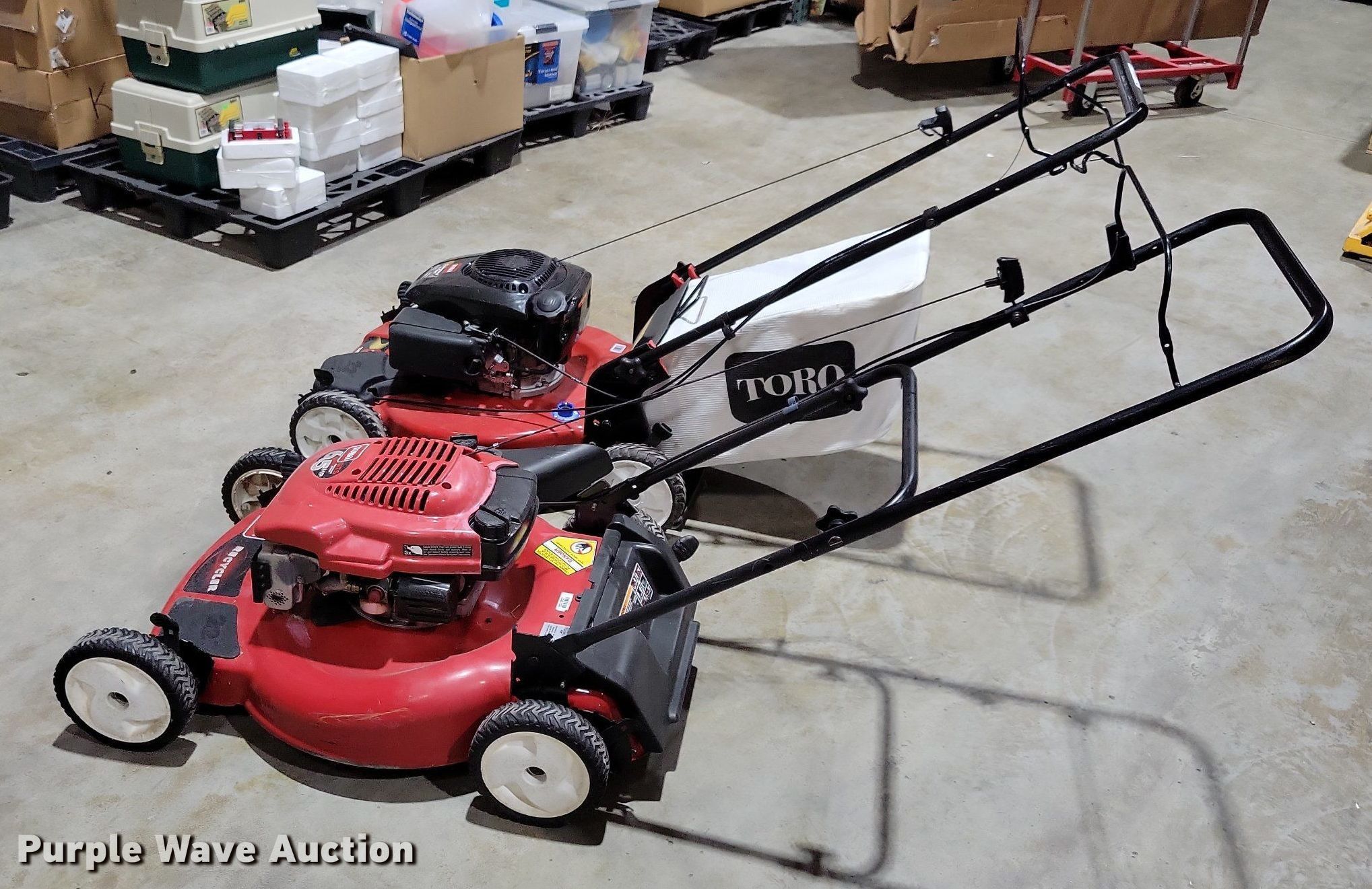 Purple Wave is selling a used Lawn and Garden in Iowa. This item is a Toro lawn equipment with the following: (2) lawn mowers, Toro 149 cc single cylinder gas engine, Width: 22", Possible carburetor issue, Bagger, Leaf blower, Unknown operating condition