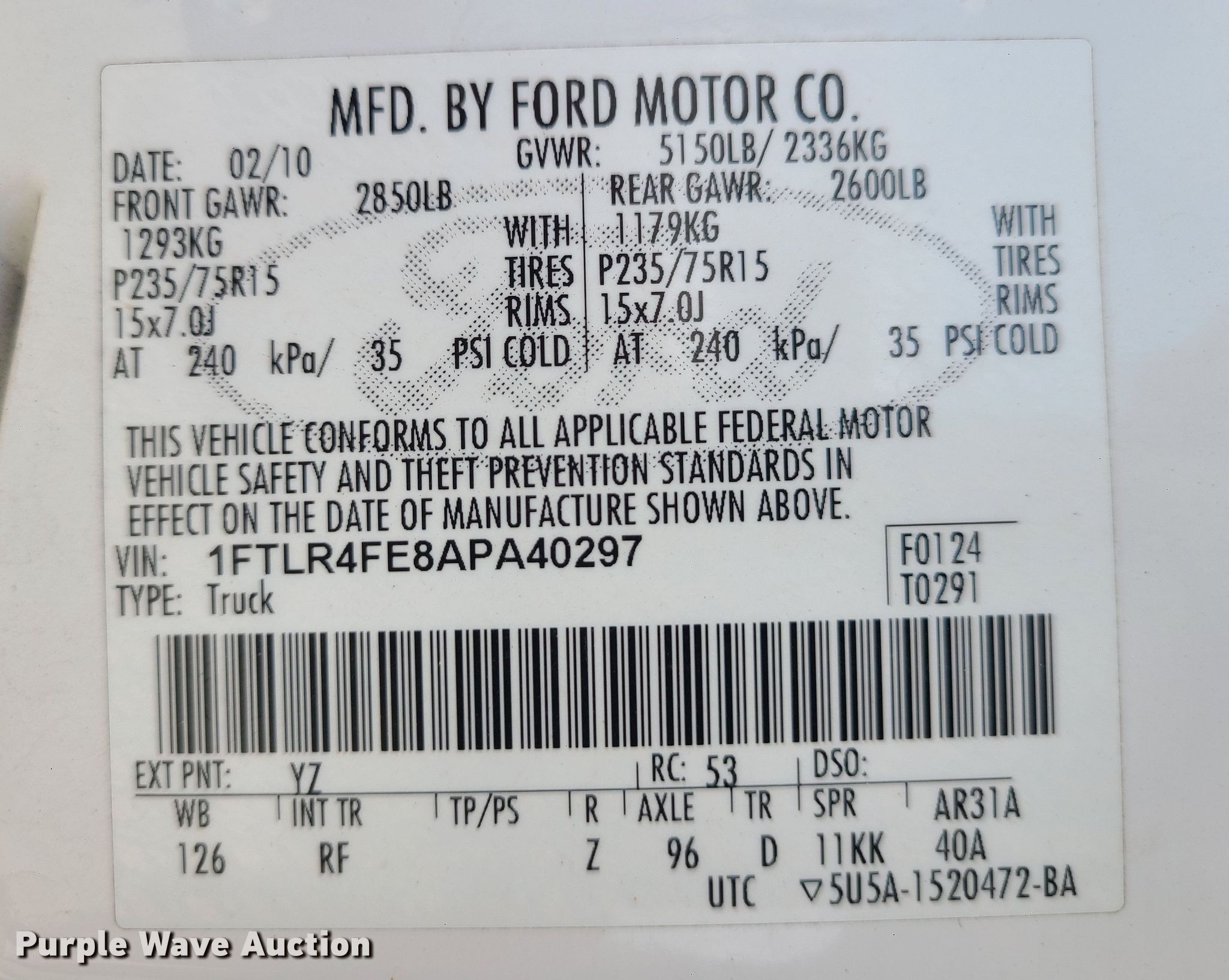 Purple Wave is selling a used Compact Pickup or Van in Missouri. This item is a 2010 Ford Ranger SuperCab pickup truck with the following: Miles: 55,918 on odometer, VIN: 1FTLR4FE8APA40297, Unit #: 3791