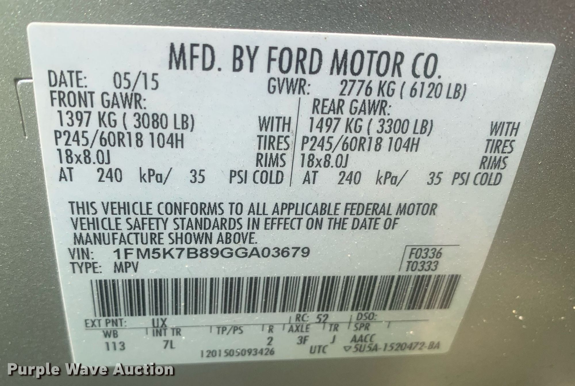 - VIN: 1FM5K7B89GGA03679
