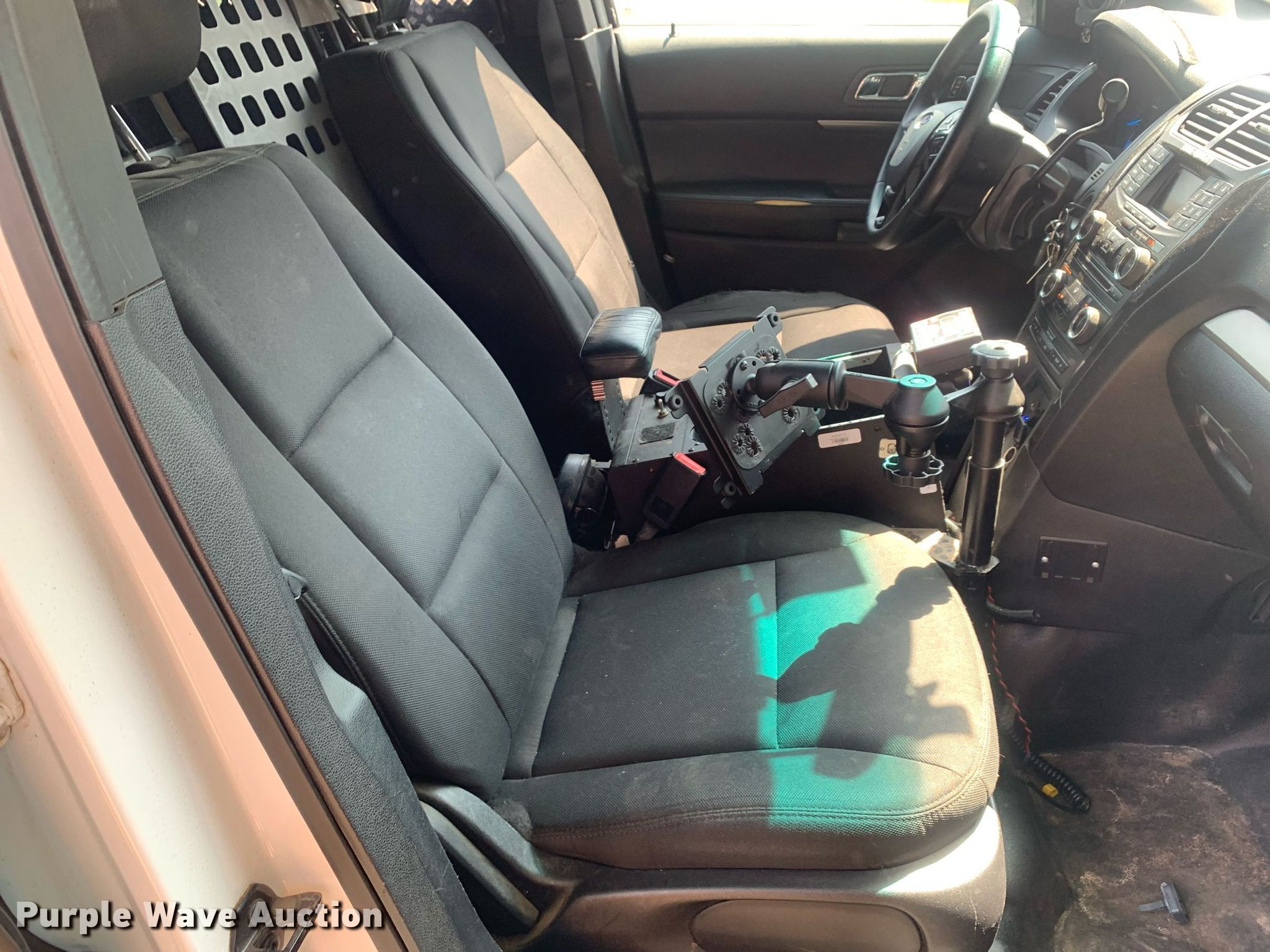 2016 Ford Explorer Police Interceptor SUV. Miles: 135,737 on odometer, VIN: 1FM5K8AR0GGA12268, Unit #: 8053. Engine Displacement: 3.7L V6 DOHC, Cylinders: 6, Fuel type: Gas. Transmission Automatic, All wheel drive. Interior AC, Heat, Seat: Power driver, Heated mirrors, Power windows, Power locks, Cruise control, Backup camera. Tires Size: 245/55R18. Notes Hot-N-Pop Pro K9 safety system , Dash warning indicator: Check engine, Windshield chipped or cracked, Law enforcement equipment will be removed if sold to non-governmental agency. Texas title. Seller is a government entity who will be assigning and distributing the title. Please contact the seller for distribution questions. Wood County Sheriffs Office. 402 South Stephens Street. Quitman, TX 75783