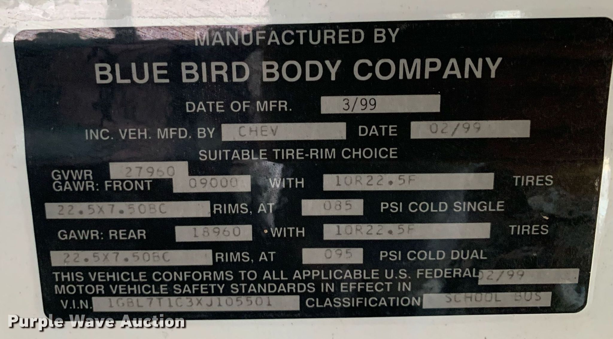 - VIN: 1GBL7T1C3XJ105501