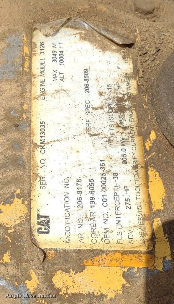 2002 Sterling Acterra dump truck. Miles: 151,320 on odometer, Hours: 2,270 on meter, VIN: 2FWBANAK42AJ31930. Engine Caterpillar 3126, Displacement: 7.2L, Cylinders: 6, Fuel type: Diesel, HP: 275. Transmission Eaton Fuller Roadranger RT/RTO-8 LL, Manual, Speed: 10. Chassis Axles: Single, Differential lock: Full, Suspension: Air Dump valves, Brakes: Air, PTO, GVWR: 36,200 lbs FAWR: 13,200 lbs, RAWR: 23,000 lbs. Interior AC, Heat, Heated mirrors, Power windows, Cruise control, Brake controller. Features Dump bed Ox Bodies 10Ft 6-8YD, Capacity: 8 cu.yd., 10' L x 8' W, Side height: 39", Bed type: Steel, Ram: Single , End gate: Air operated, Plow Western 62302, Width: 120". Tires Size: 11R22.5. Notes Dash warning indicator: ABS, Non-operational dump bed, filter removed from hydraulic system, Possible transmission issues , Unknown operating condition. Missouri title. City of Nevada, MO. 110 S Ash St. Nevada, MO 64772