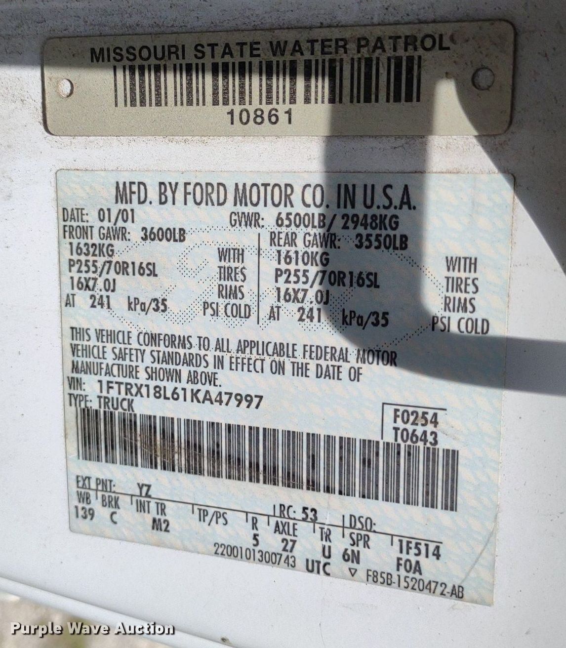 Purple Wave is selling a used 1/2 Ton Pickup or Van in Missouri. This item is a 2001 Ford F150 XLT SuperCab pickup truck with the following: Miles: 118,504 on odometer, VIN: 1FTRX18L61KA47997