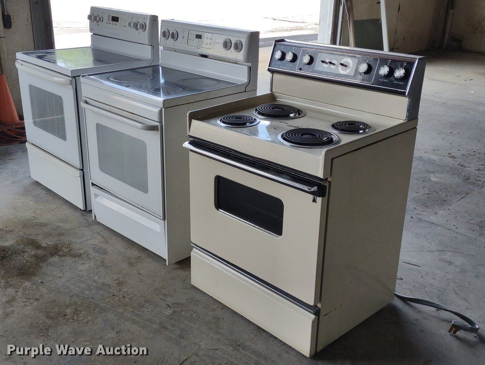 (3) electric ranges has sold in Wellsville, Kansas for $357.50. Item LL9233 sold on July 25th, 2023.