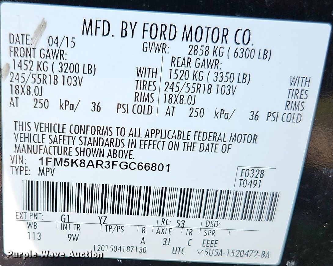 Purple Wave is selling a used Passenger Vehicle in Missouri. This item is a 2015 Ford Explorer Police Interceptor SUV with the following: Miles: 84,996 on odometer, VIN: 1FM5K8AR3FGC66801