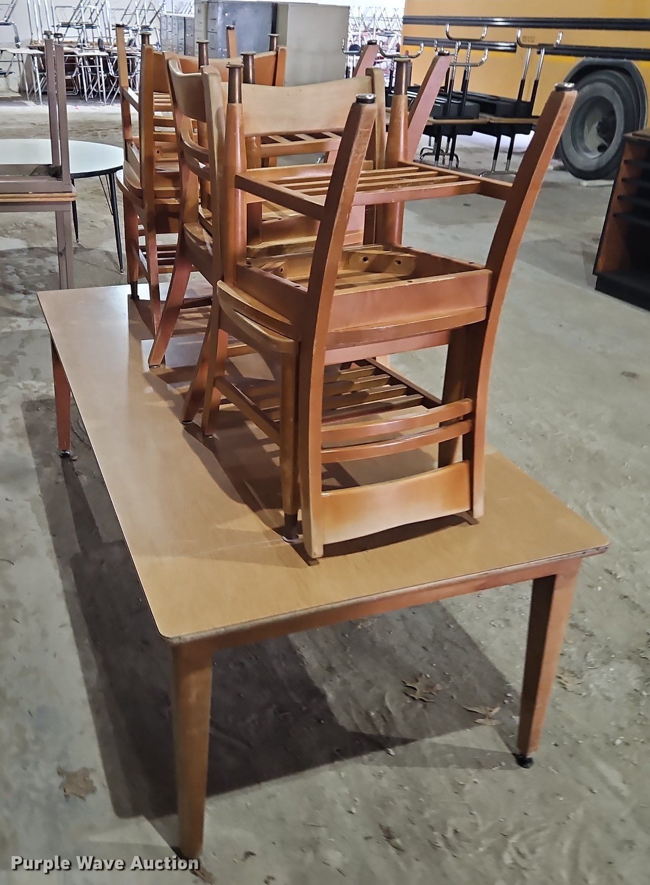 Purple Wave is selling a used Furniture in Kansas. This item is a Furniture with the following: Wood table, (6) chairs