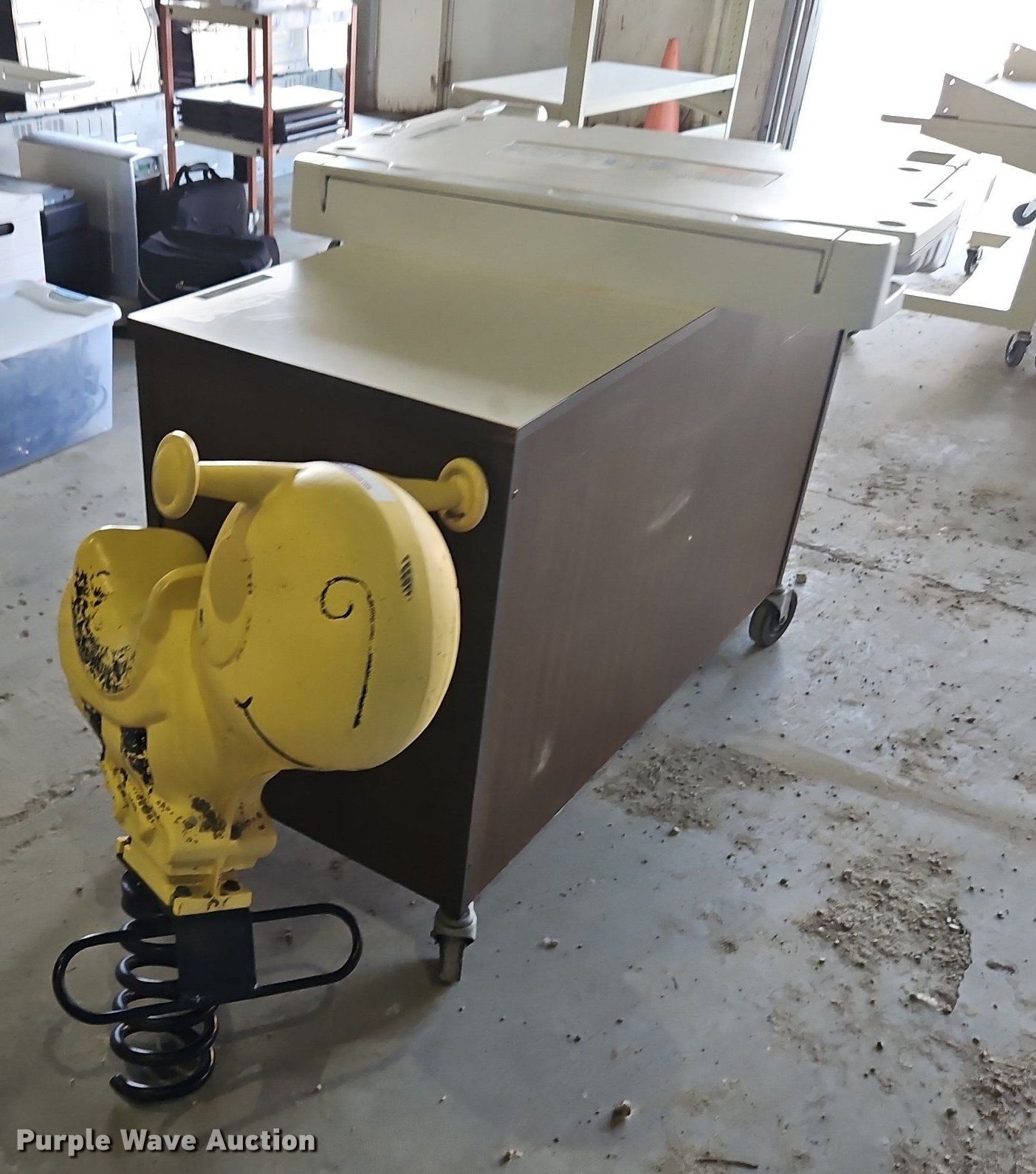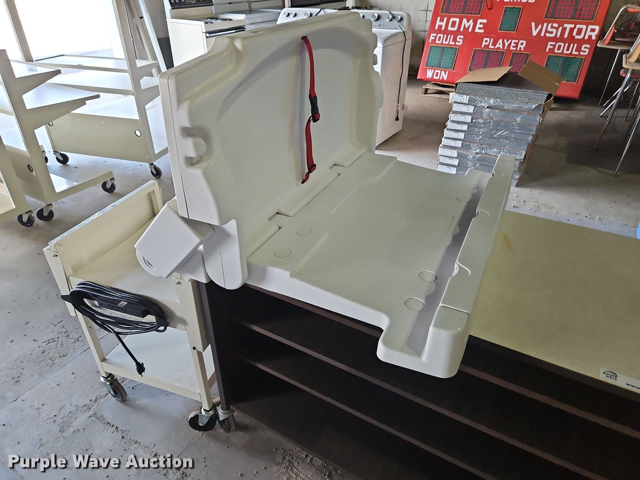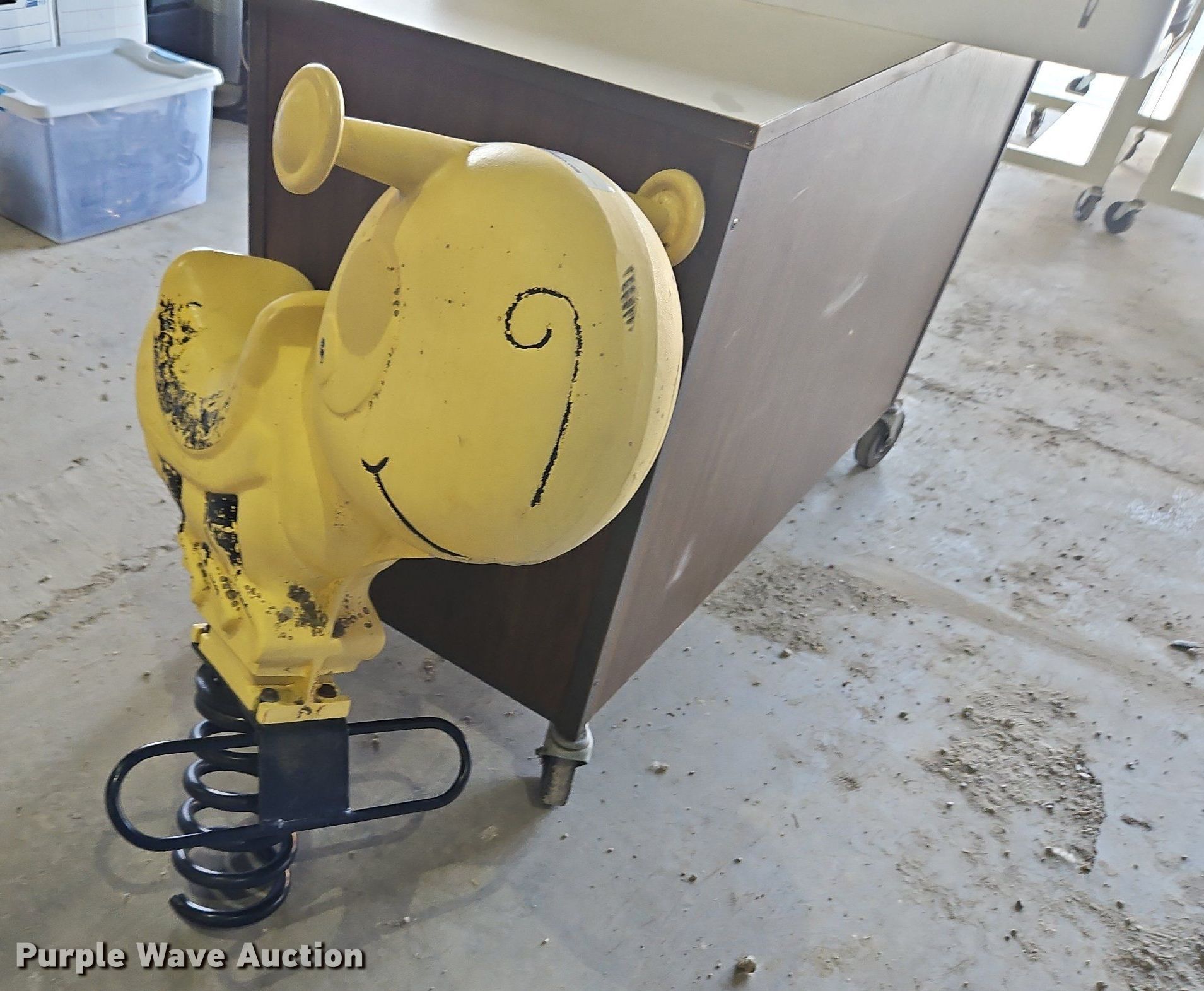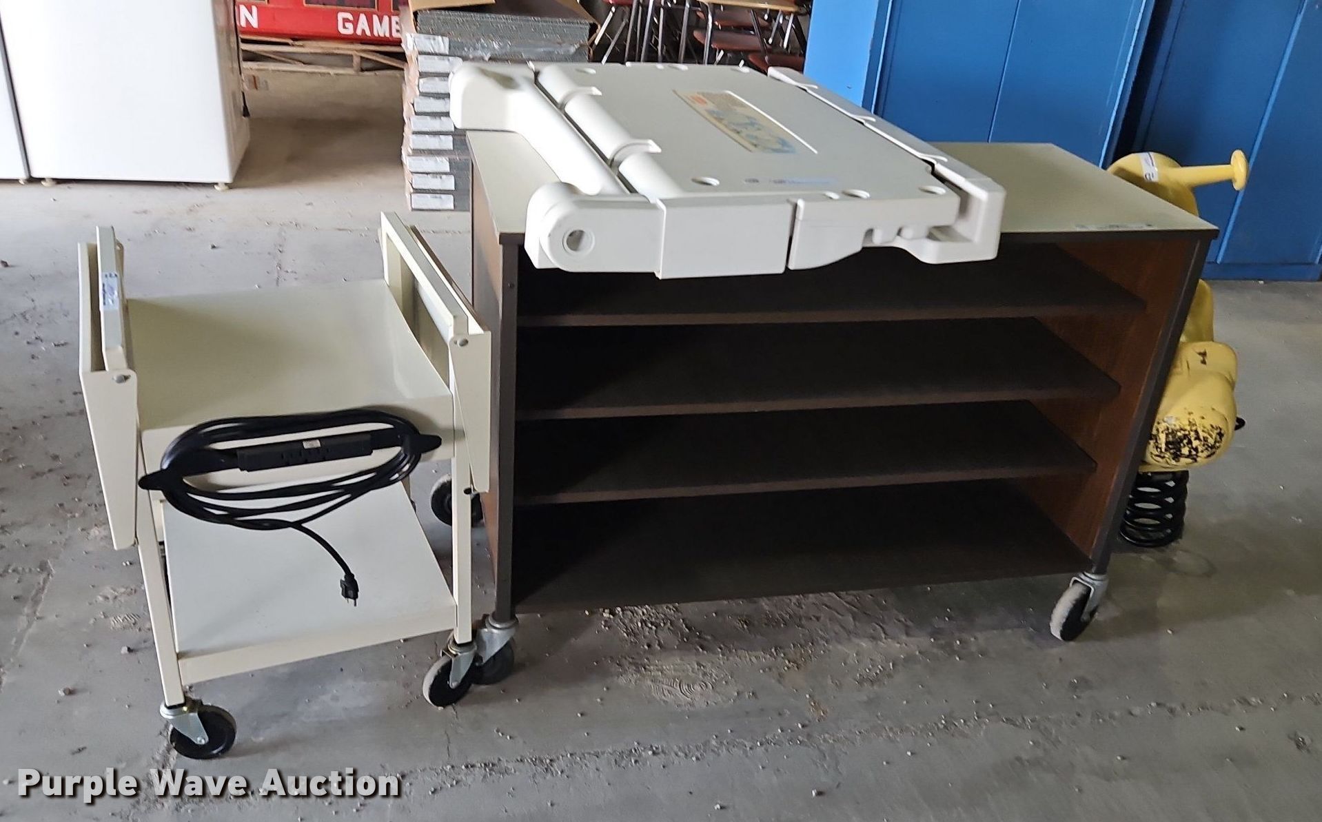 Purple Wave is selling a used Office Supplies and Equip. in Kansas. This item is a Office supplies and equipment with the following: Rubbermaid Sturdy Station 2, Wood cart, Metal cart, Snail Saddle Mates playground toy