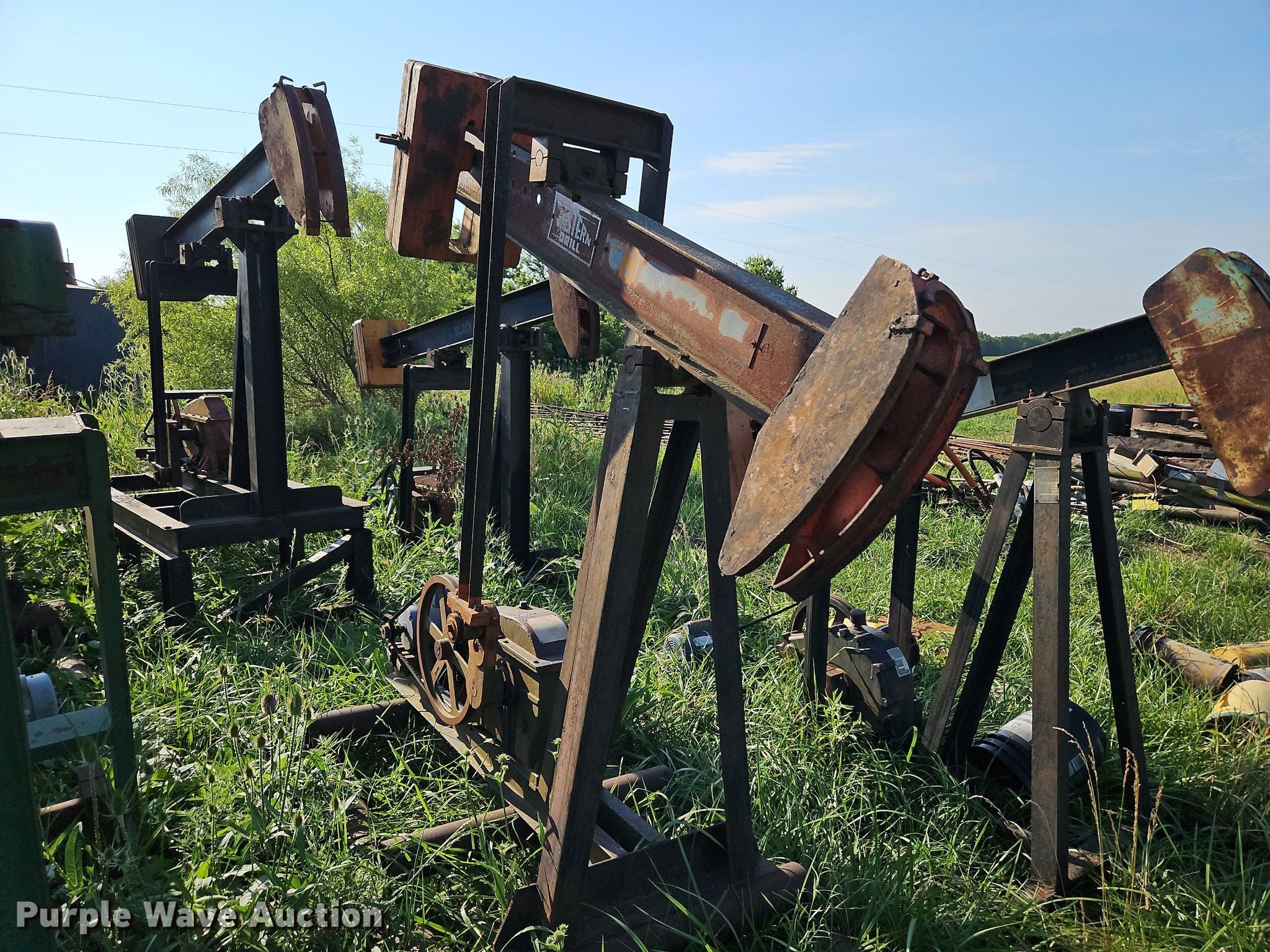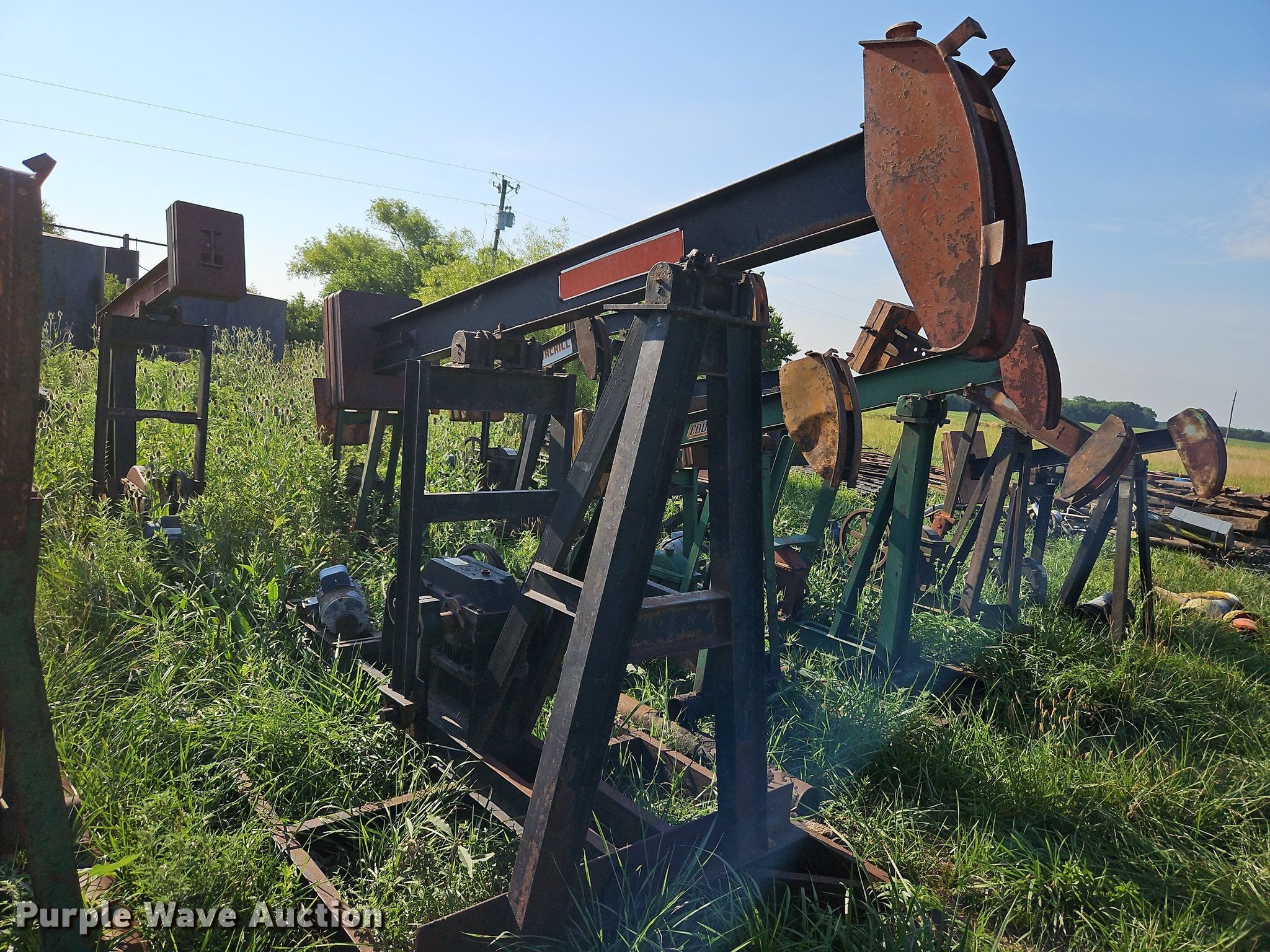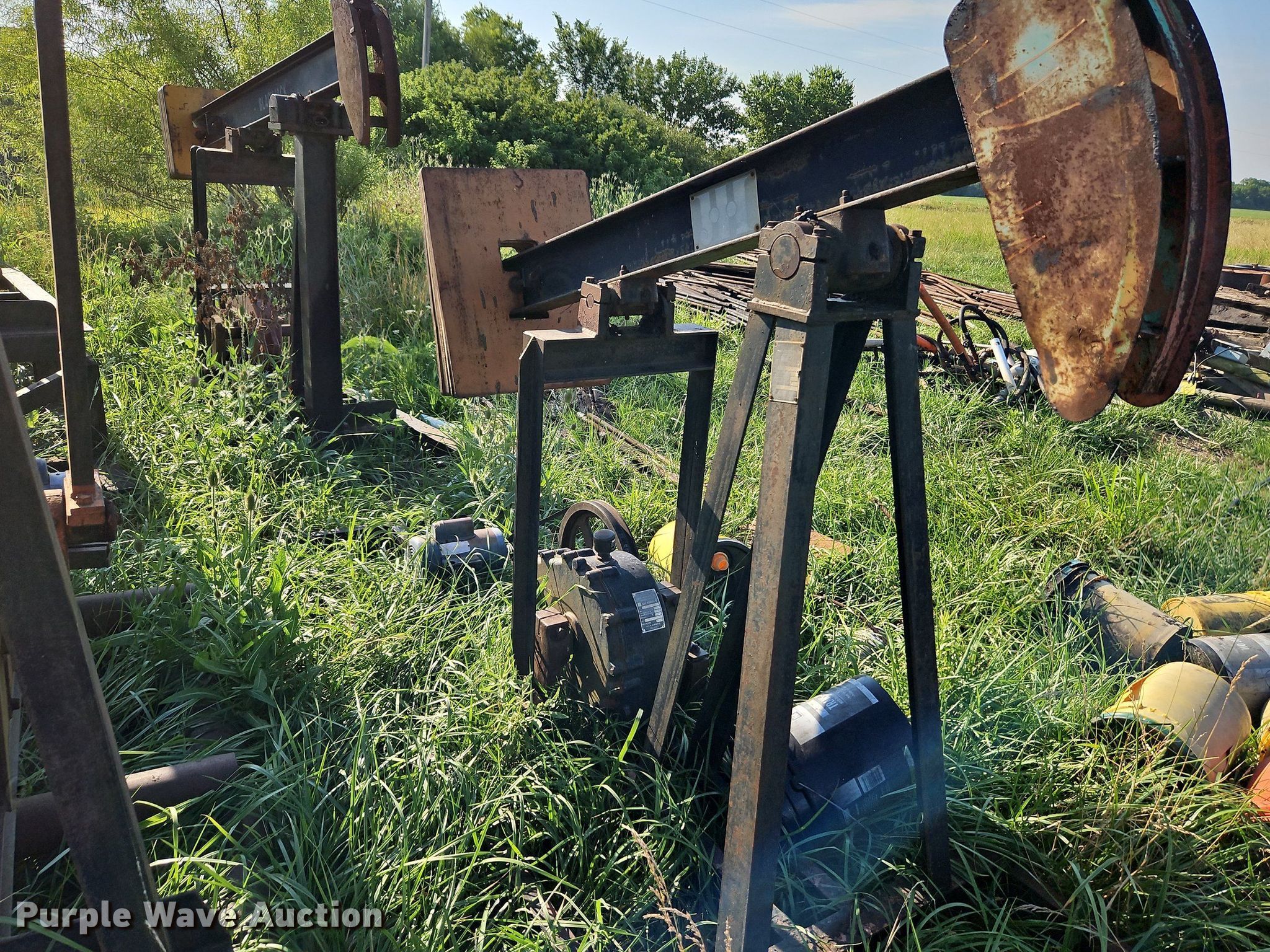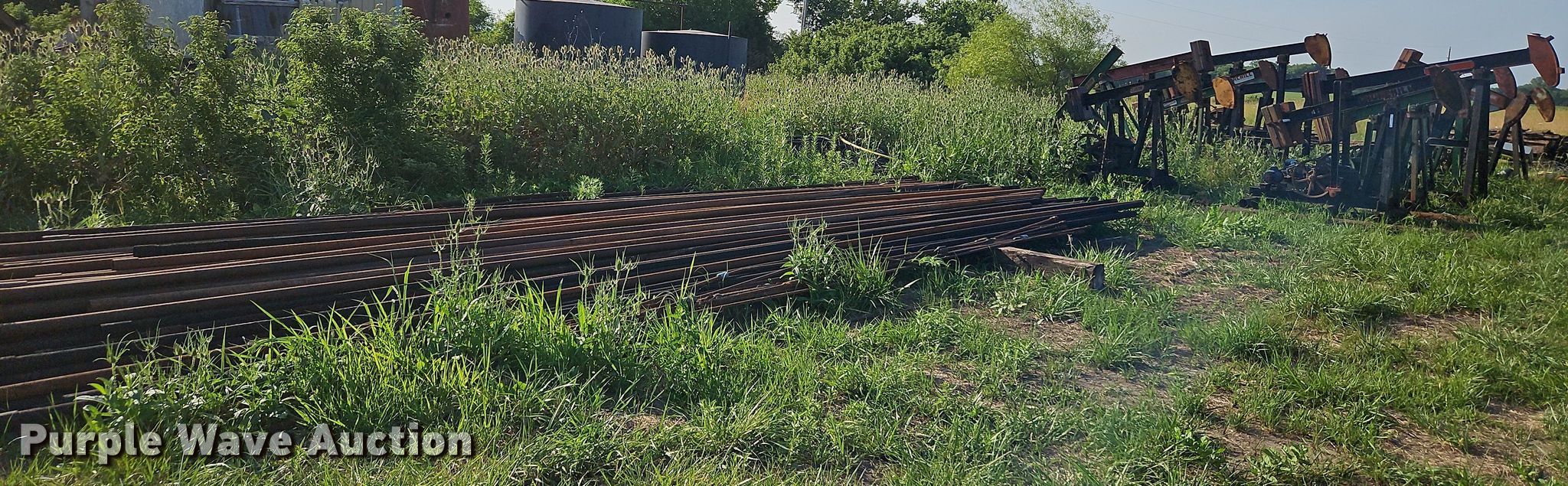 Purple Wave is selling a used Other Industrial or Business in Kansas. This item is a Oilfield equipment with the following: Approx. 100 joints of 30'L x 2 3/8" diameter tubing, Approx. 38 joints of 5/8" diameter sucker rods, Approx. 350 joints of 1" diameter sucker rods, (10) insert pumps, Standard Equipment pump, (14) pump jacks, (4) Cook, (3) Churchill, Superior, (4) Black Jack, Jensen, One unknown make, (7) electric motors, Brands include: Hanson, Pacific Pumping Co., (4) 4.5" well heads, (2) stuffing boxes, Winch, Approx. 8 joints of 10'L x 1" diameter pipe, (4) bridal cables, Hanger bars, Approx. 10 pump hoses, (7) posts, Electrical disconnects, Approx. 15 railroad ties, Lumber, (2) steel tanks, Capacity: Approx. 100 BBL, Gun barrel tank, Capacity: Approx. 50 BBL, Fiberglass tank, Capacity: Approx. 50 BBL, Unit #: 2023FP3-03 - Foster
