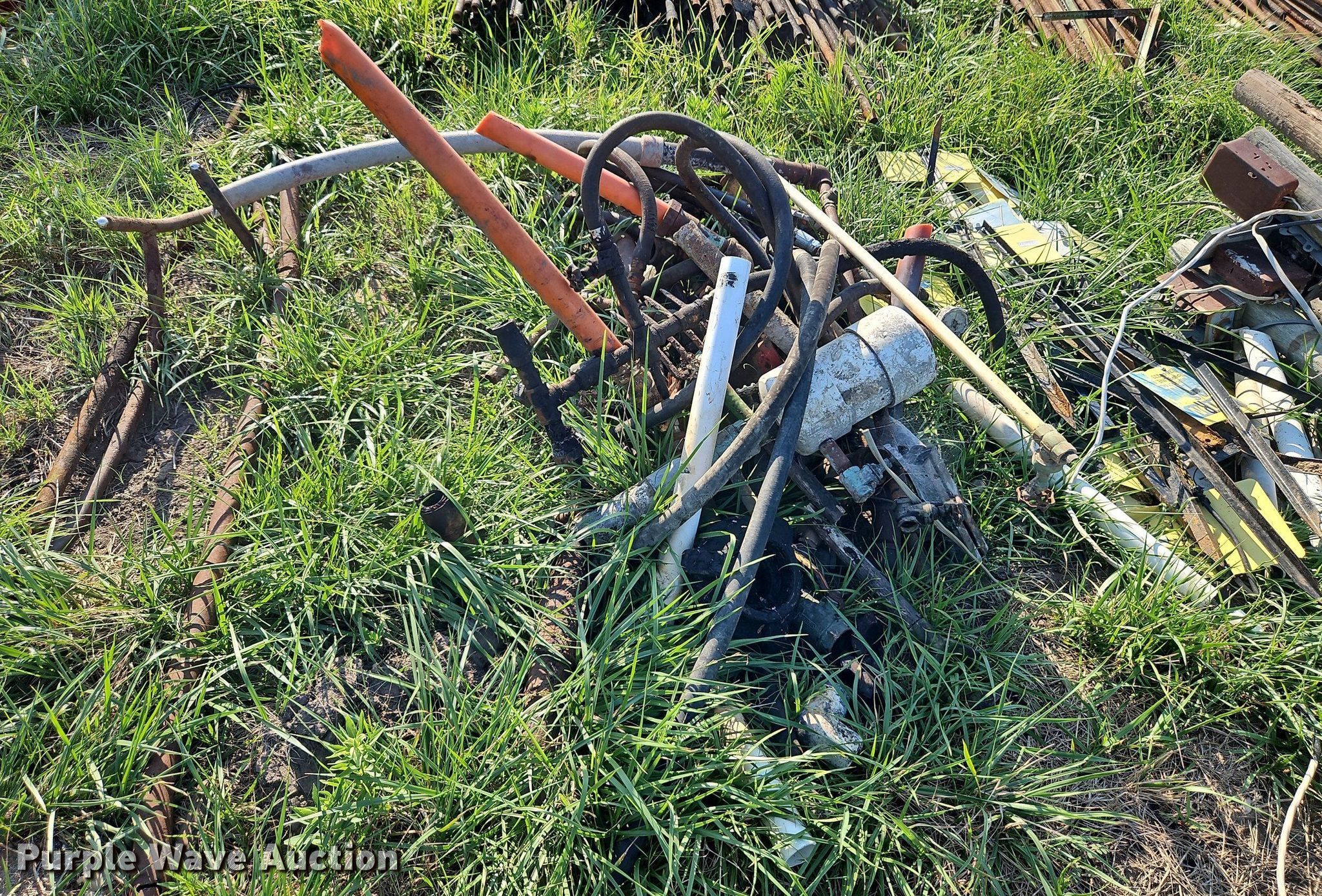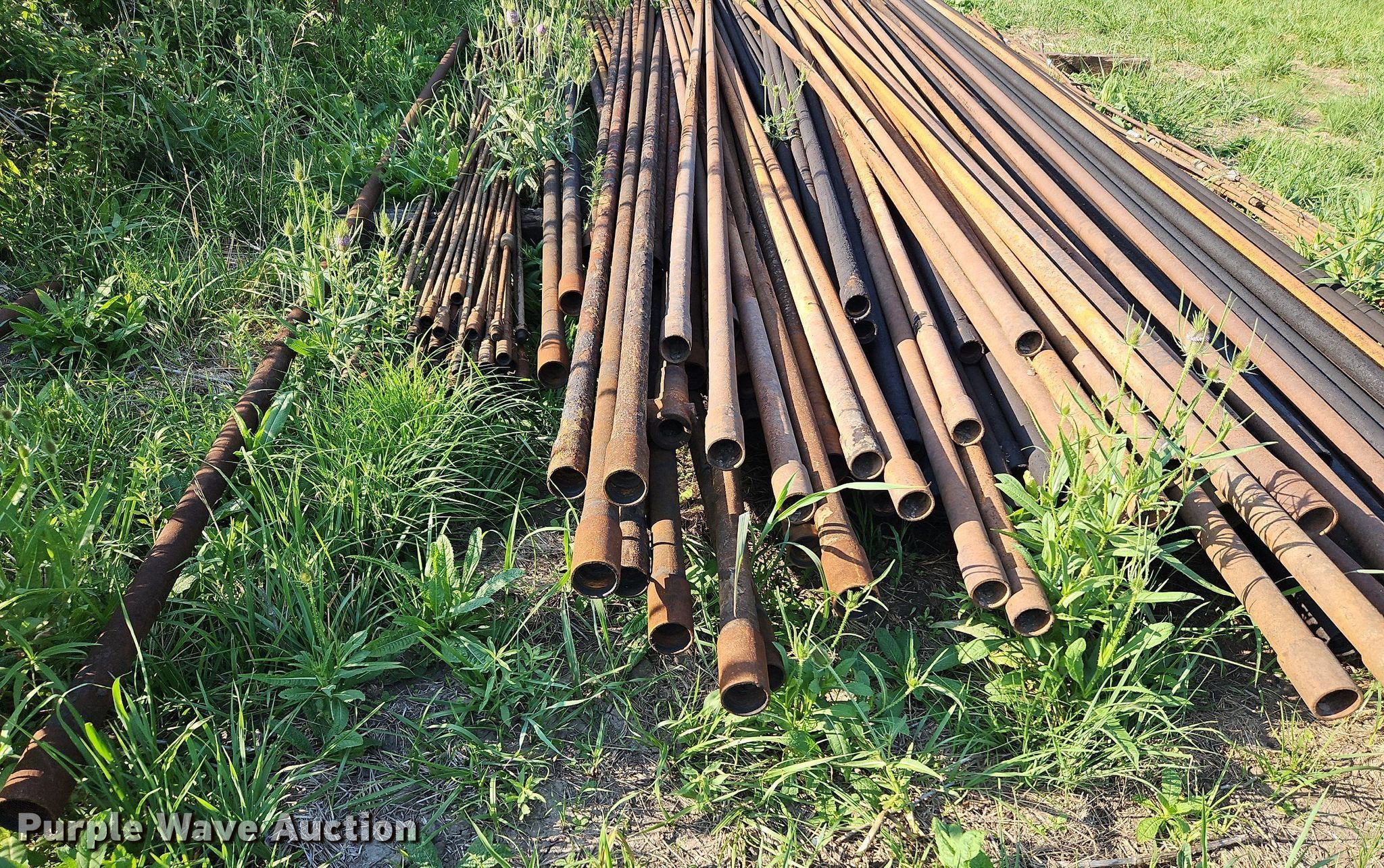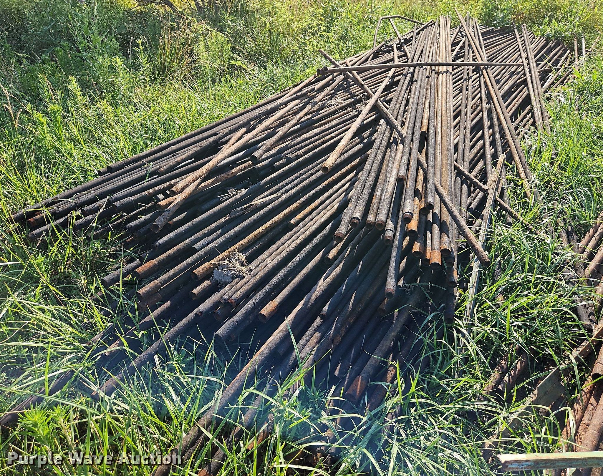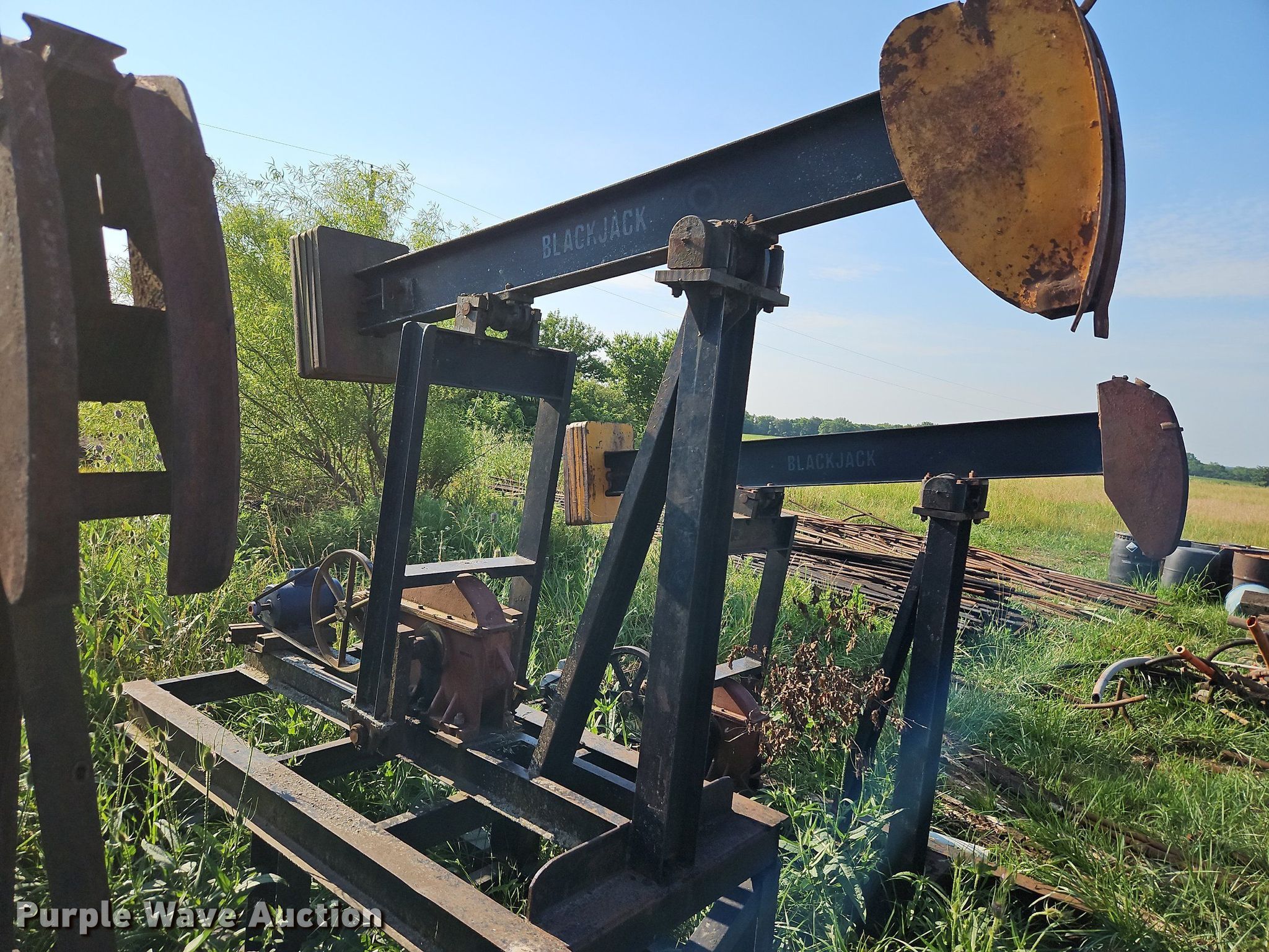Purple Wave is selling a used Other Industrial or Business in Kansas. This item is a Oilfield equipment with the following: Approx. 100 joints of 30'L x 2 3/8" diameter tubing, Approx. 38 joints of 5/8" diameter sucker rods, Approx. 350 joints of 1" diameter sucker rods, (10) insert pumps, Standard Equipment pump, (14) pump jacks, (4) Cook, (3) Churchill, Superior, (4) Black Jack, Jensen, One unknown make, (7) electric motors, Brands include: Hanson, Pacific Pumping Co., (4) 4.5" well heads, (2) stuffing boxes, Winch, Approx. 8 joints of 10'L x 1" diameter pipe, (4) bridal cables, Hanger bars, Approx. 10 pump hoses, (7) posts, Electrical disconnects, Approx. 15 railroad ties, Lumber, (2) steel tanks, Capacity: Approx. 100 BBL, Gun barrel tank, Capacity: Approx. 50 BBL, Fiberglass tank, Capacity: Approx. 50 BBL, Unit #: 2023FP3-03 - Foster