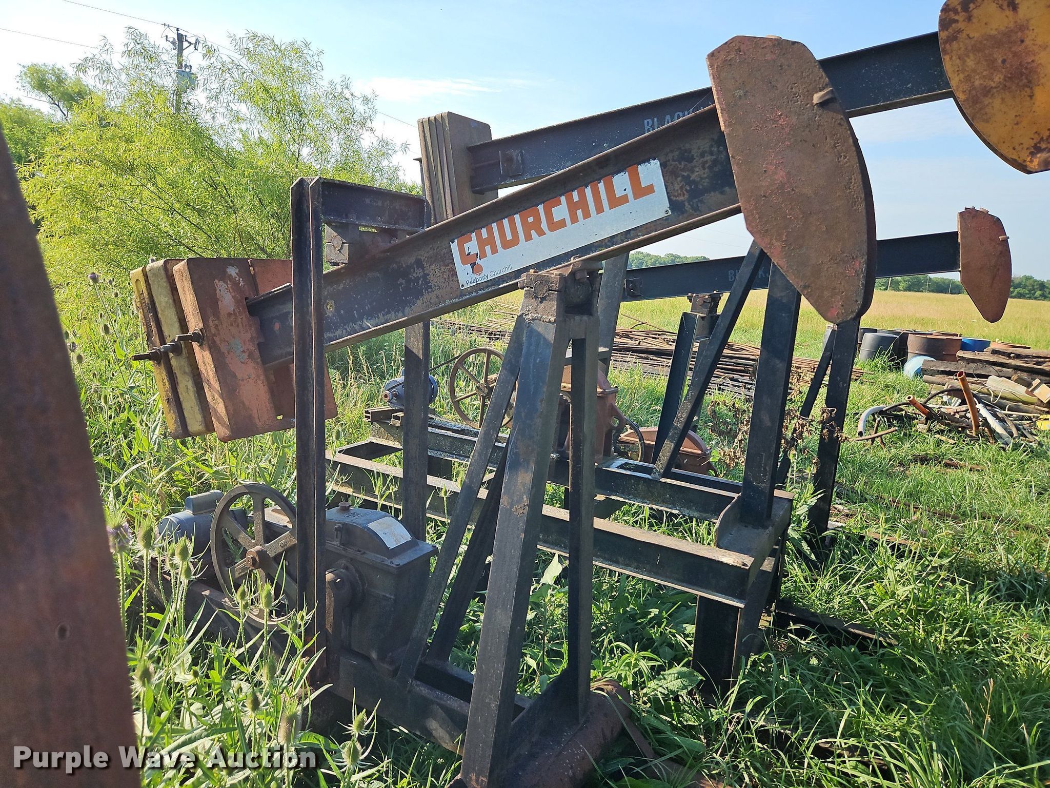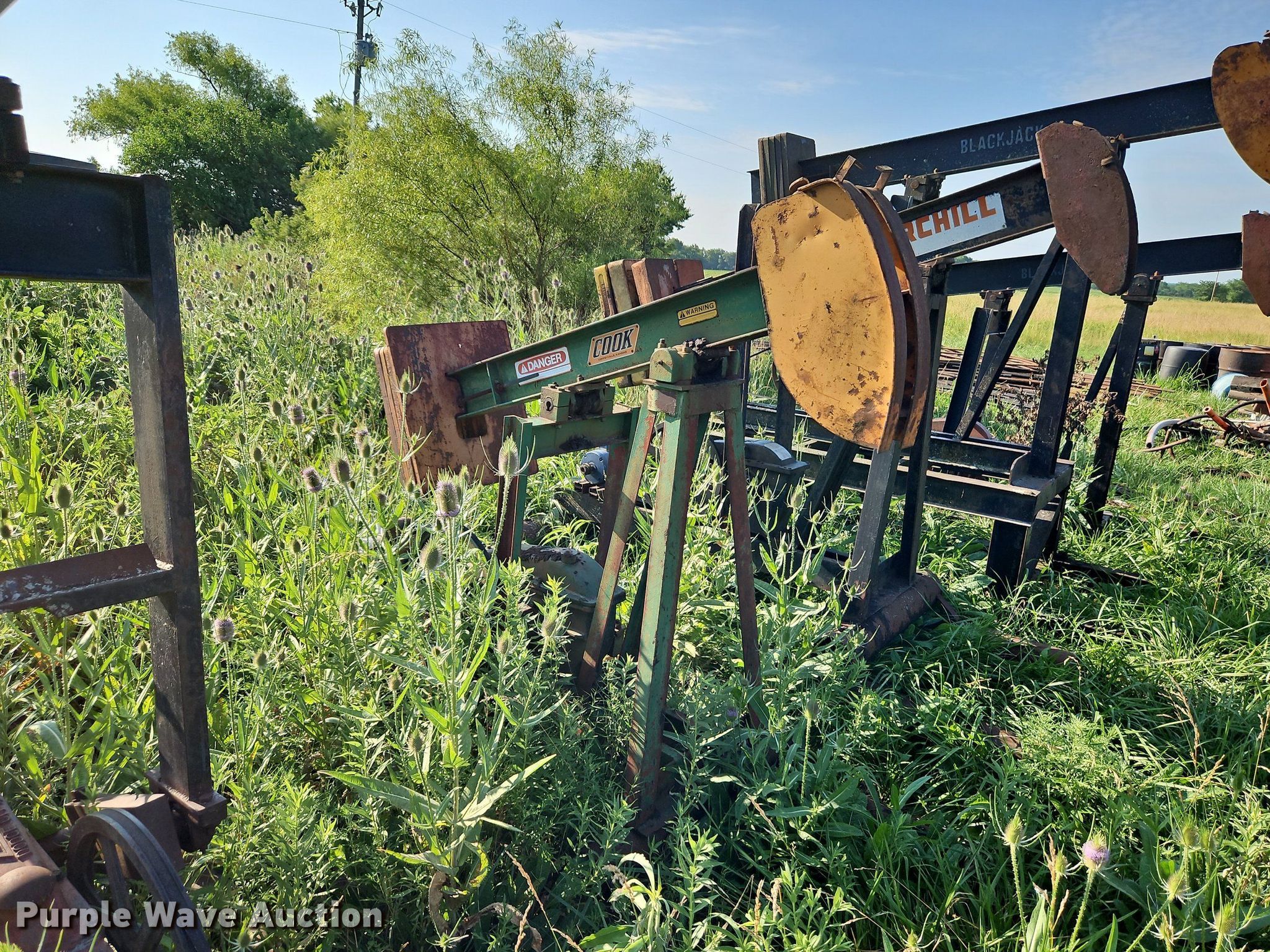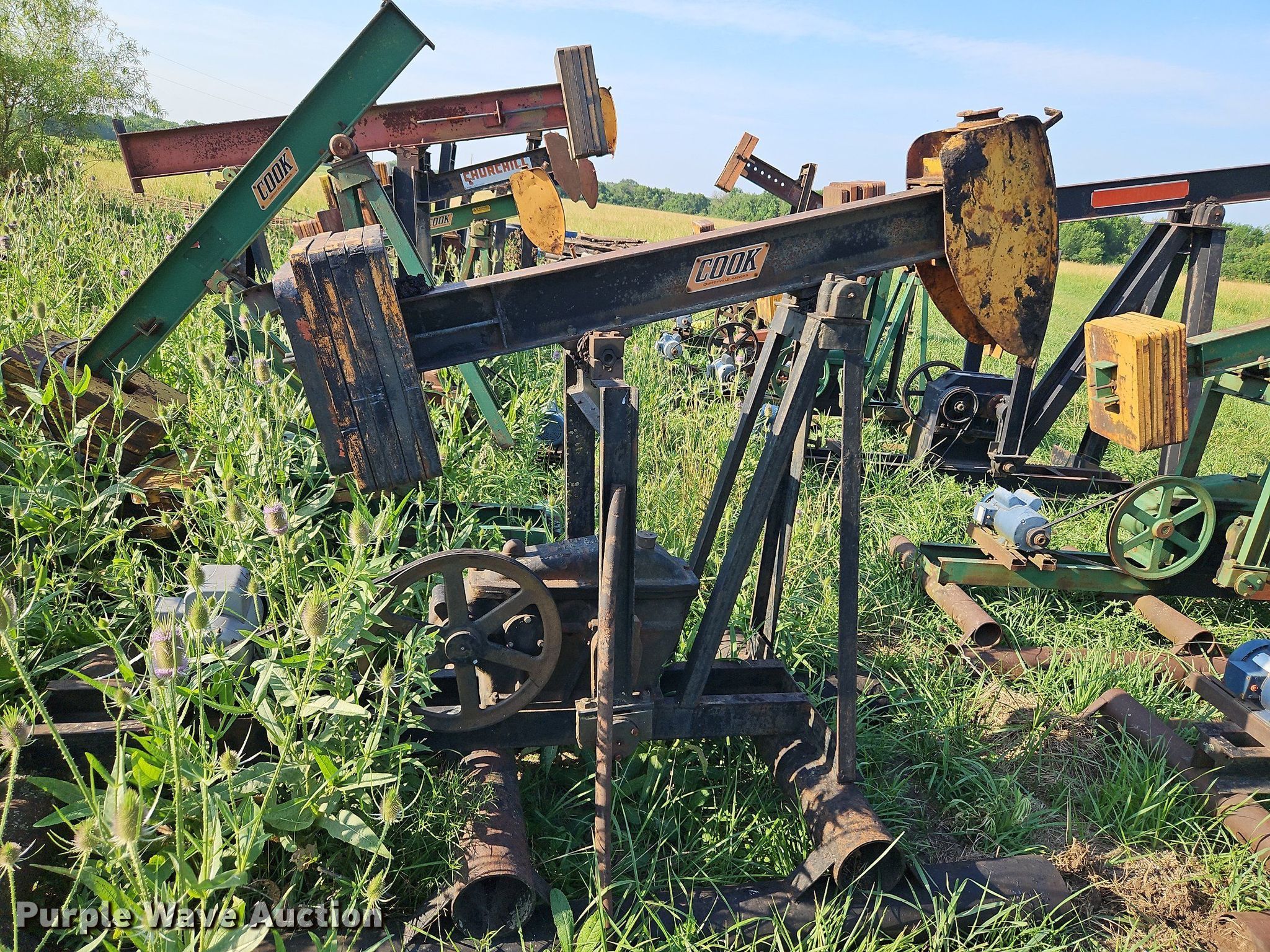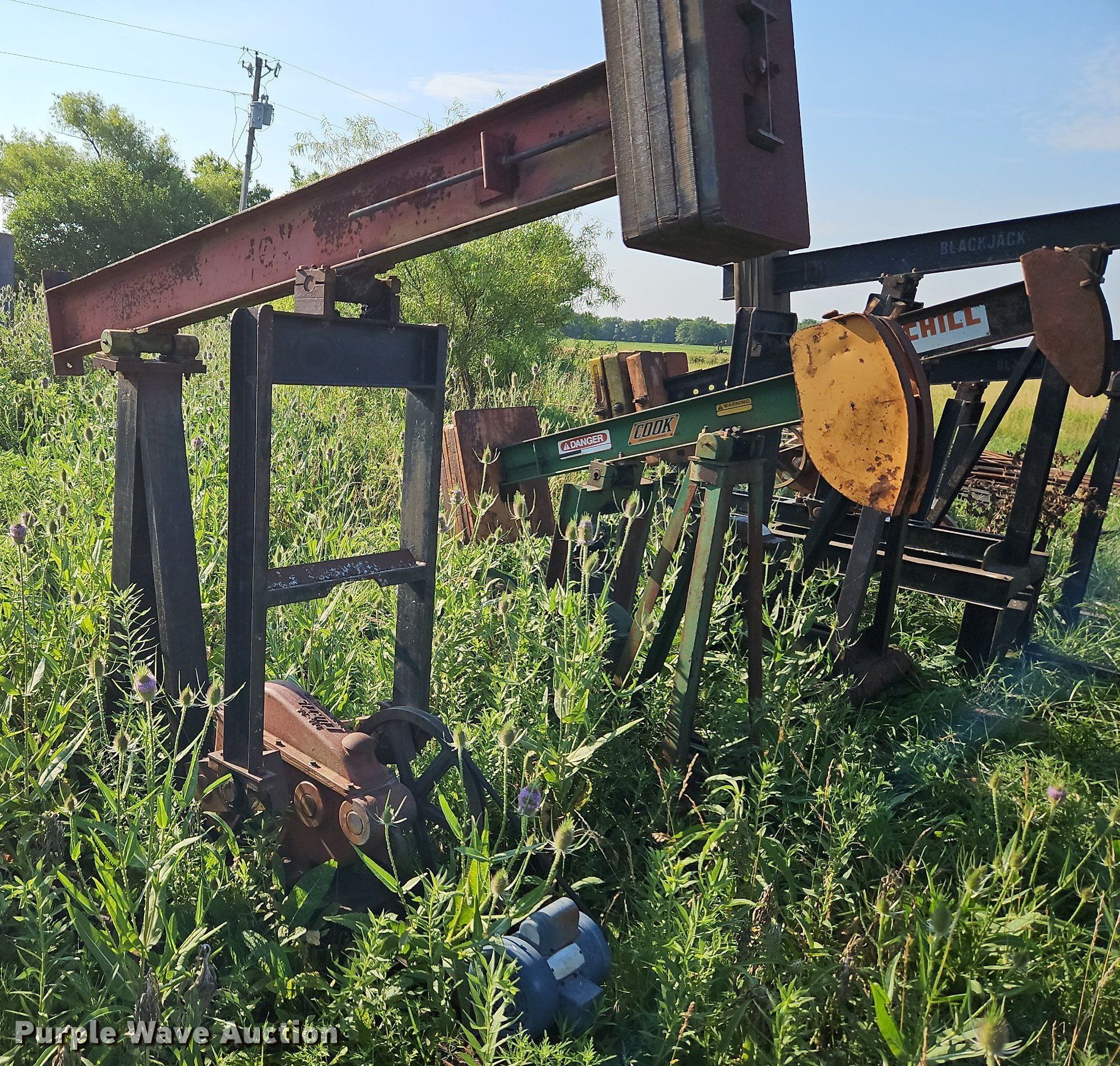 Oilfield equipment. Approx. 100 joints of 30'L x 2 3/8" diameter tubing, Approx. 38 joints of 5/8" diameter sucker rods, Approx. 350 joints of 1" diameter sucker rods, (10) insert pumps, Standard Equipment pump, (14) pump jacks (4) Cook, (3) Churchill, Superior, (4) Black Jack , Jensen , One unknown make, (7) electric motors Brands include: Hanson, Pacific Pumping Co, (4) 4.5" well heads, (2) stuffing boxes, Winch, Approx. 8 joints of 10'L x 1" diameter pipe, (4) bridal cables, Hanger bars, Approx. 10 pump hoses, (7) posts, Electrical disconnects, Approx. 15 railroad ties, Lumber, (2) steel tanks Capacity: Approx. 100 BBL, Gun barrel tank Capacity: Approx. 50 BBL, Fiberglass tank Capacity: Approx. 50 BBL, Unit #: 2023FP3-03 - Foster. Tanks have not been cleaned, possible residue. Unknown amount or type of contents in tanks.. All aspects of disassembly and removal are the sole responsibility of the purchaser. KCC Conservation Division Oilfield Salvage Disposal. Moran, KS 66755