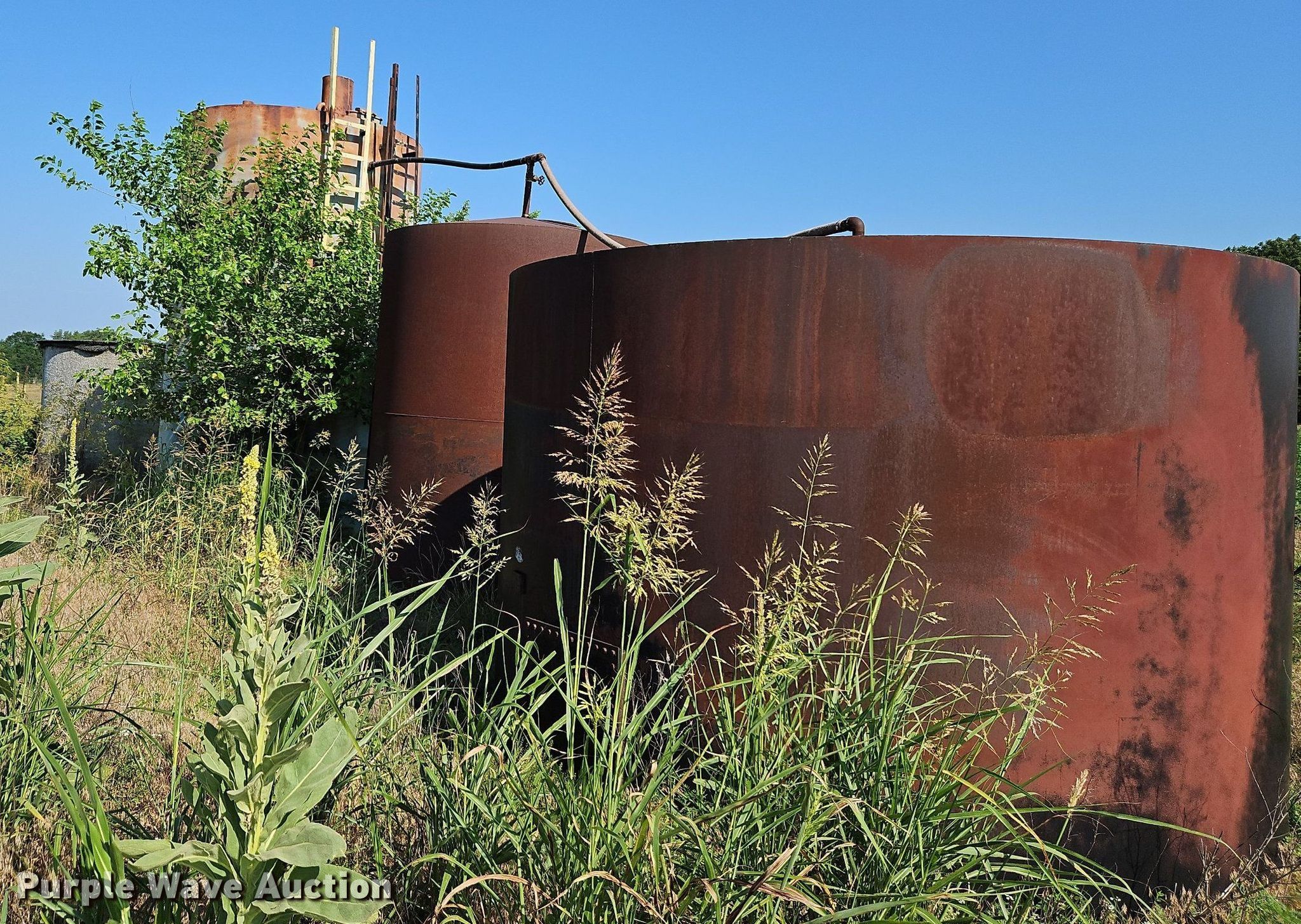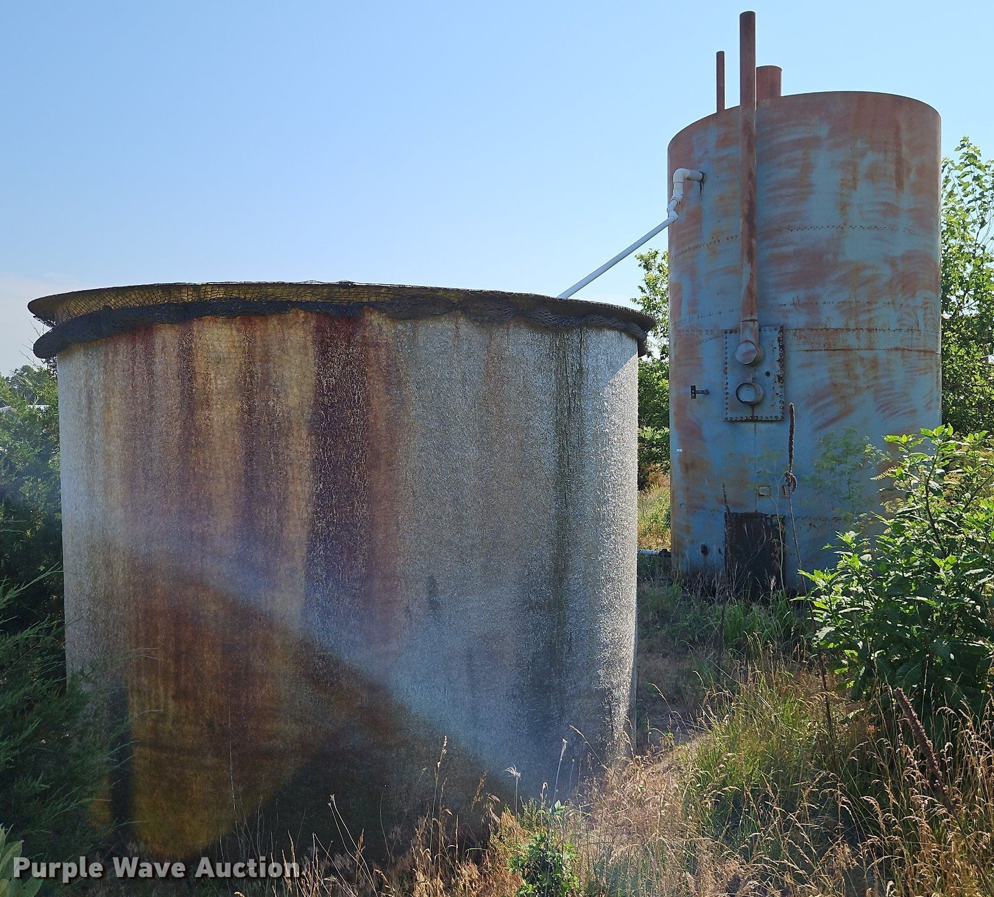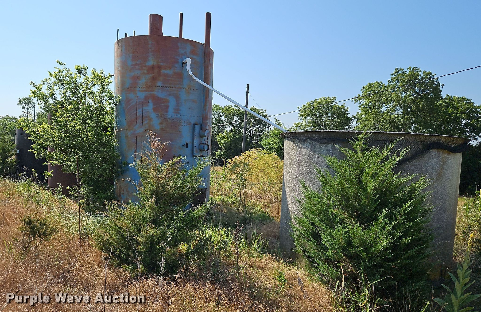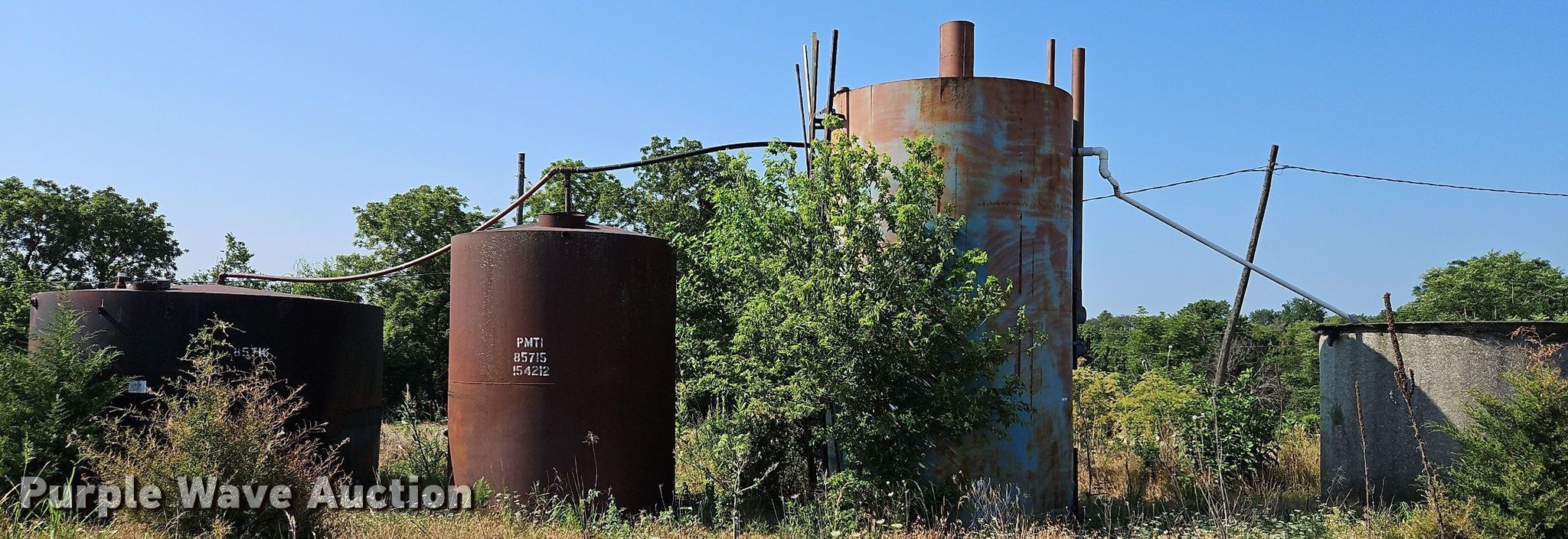Purple Wave is selling a used Other Industrial or Business in Kansas. This item is a (4) tanks with the following: Fiberglass tank, Capacity: 50 BBL, Steel gun barrel, Capacity: 200 BBL, Steel tank, Capacity: 50 BBL, Steel tank, Capacity: 100 BBL, Unit #: 2023FP3-03 - Paul Tholen