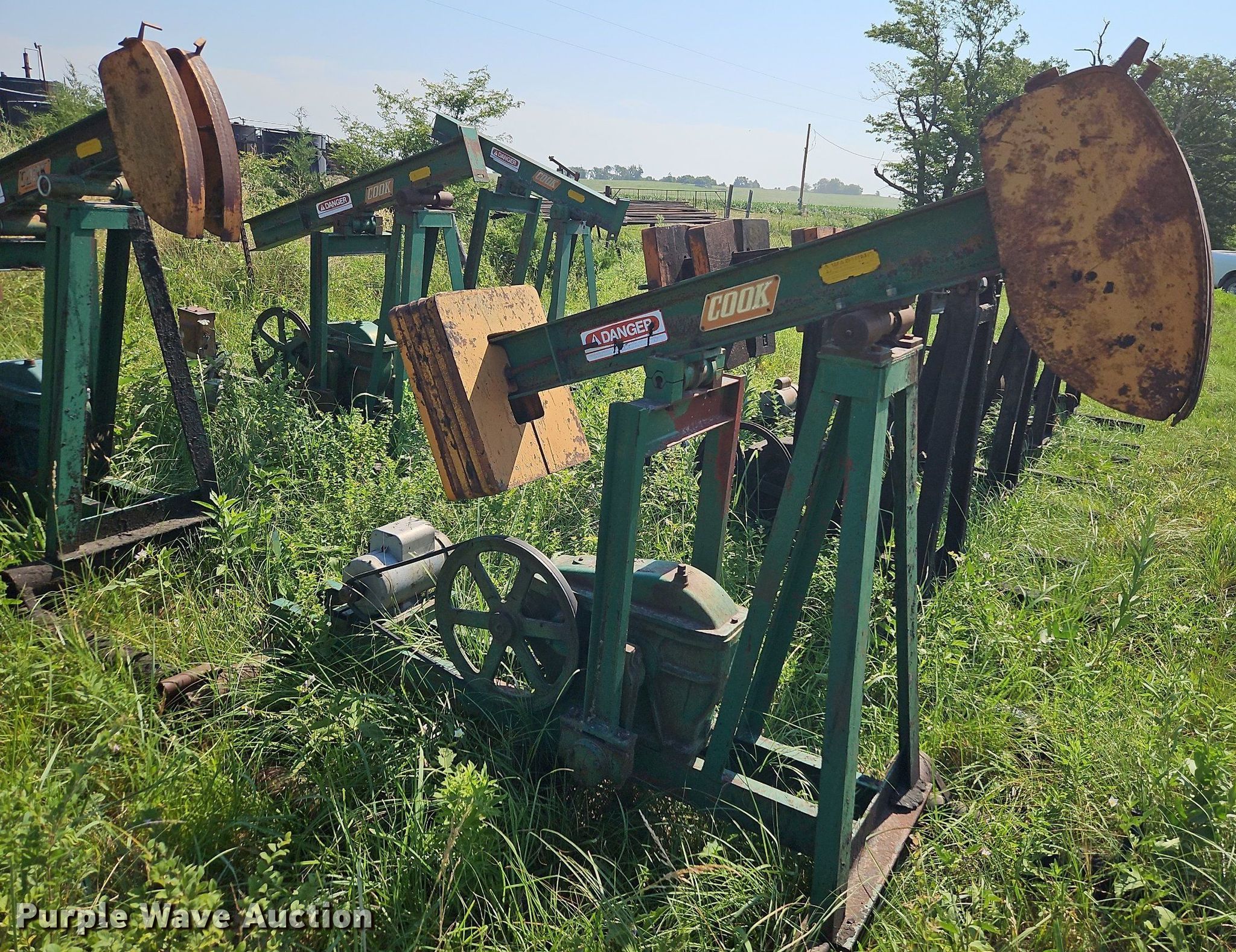 Oilfield equipment. (8) pump jacks, (3) steel tanks Capacity: 100 BBL, Gun barrel tank Capacity: 60 BBL, Fiberglass tank Capacity: 100 BBL, Approx. (300) joints of pipe Length: 25' 1", Propane tank, (6) downhole pumps, Livestock panels and more, Unit #: 2023FP3-01 - Miller. Tanks have not been cleaned, possible residue. Unknown amount or type of contents in tanks.. All aspects of disassembly and removal are the sole responsibility of the purchaser. KCC Conservation Division Oilfield Salvage Disposal. Blue Mound, KS 66010