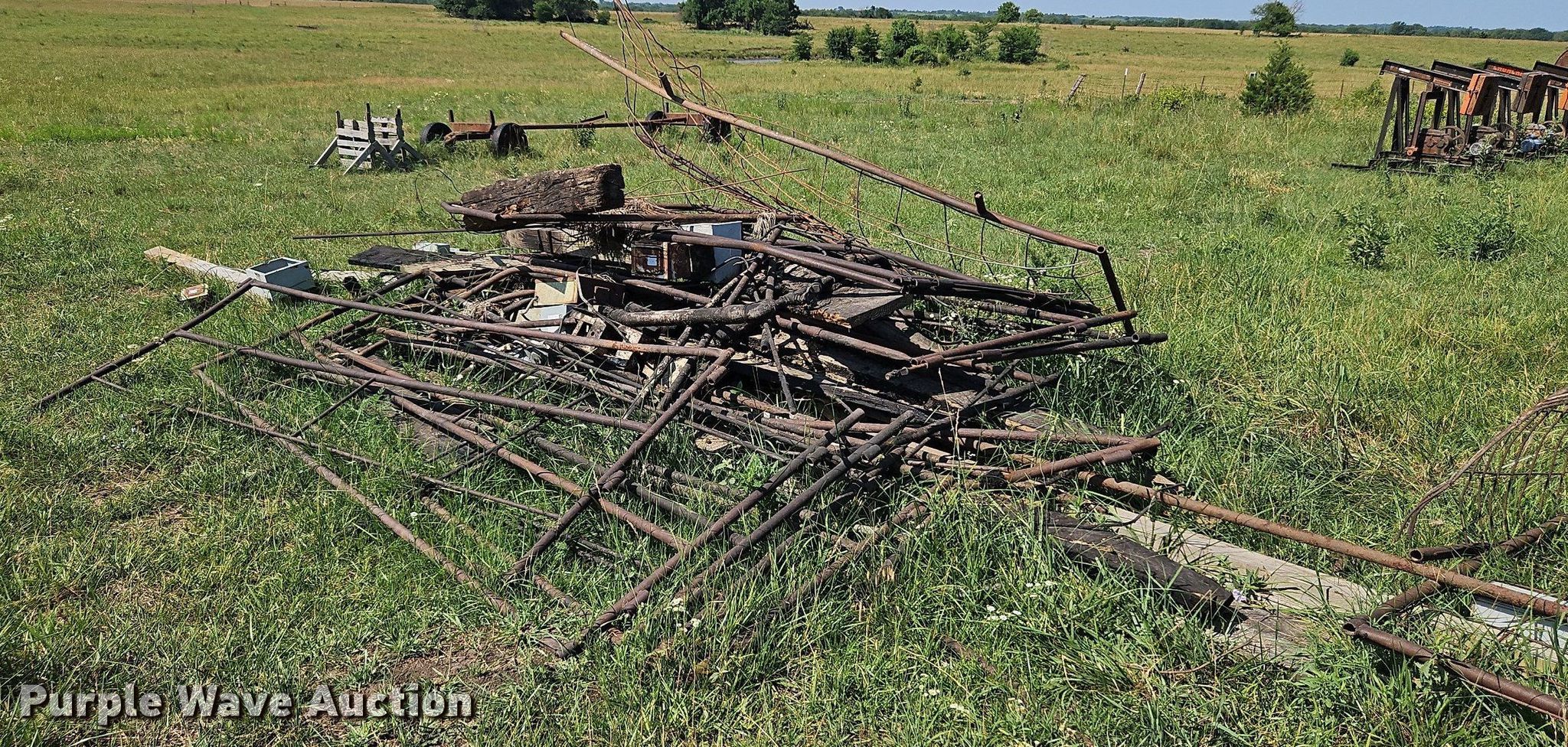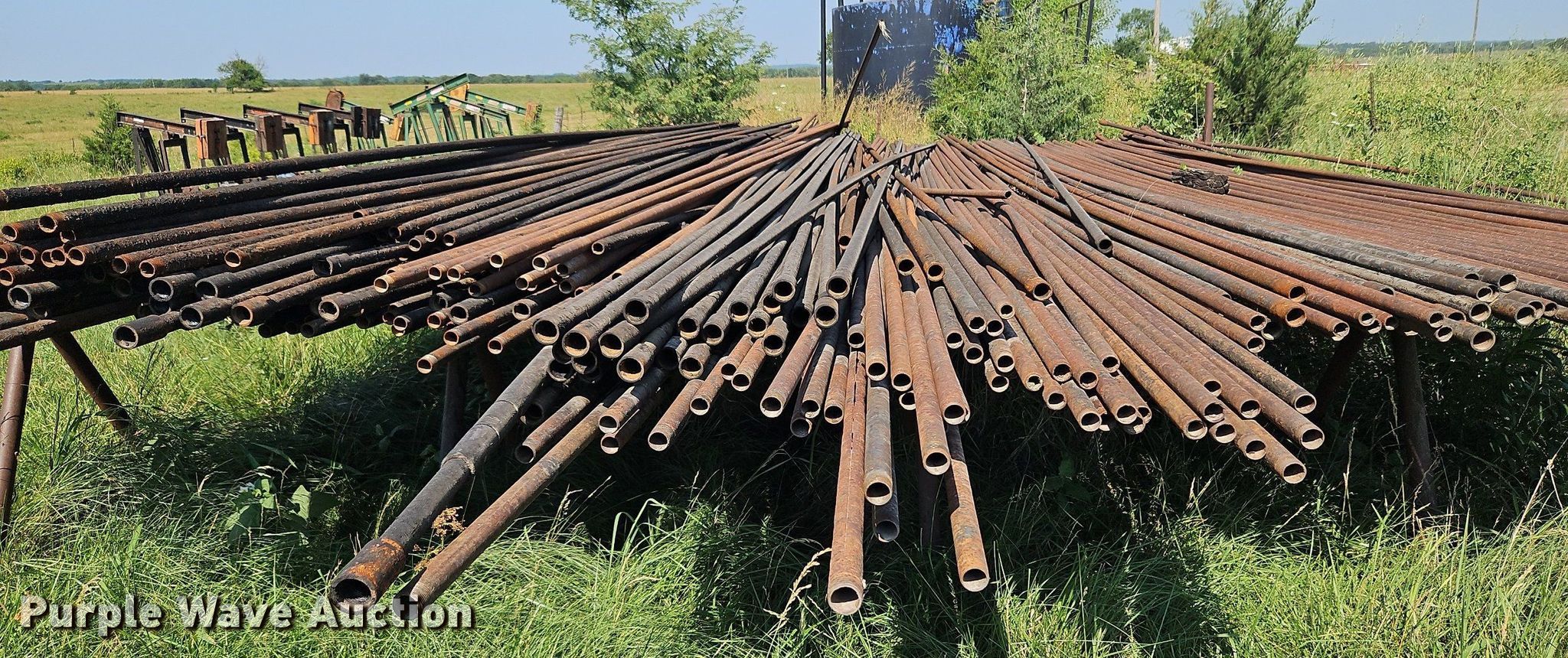 Purple Wave is selling a used Other Industrial or Business in Kansas. This item is a Oilfield equipment with the following: (8) pump jacks, (3) steel tanks, Capacity: 100 BBL, Gun barrel tank, Capacity: 60 BBL, Fiberglass tank, Capacity: 100 BBL, Approx. (300) joints of pipe, Length: 25' 1", Propane tank, (6) downhole pumps, Livestock panels and more, Unit #: 2023FP3-01 - Miller