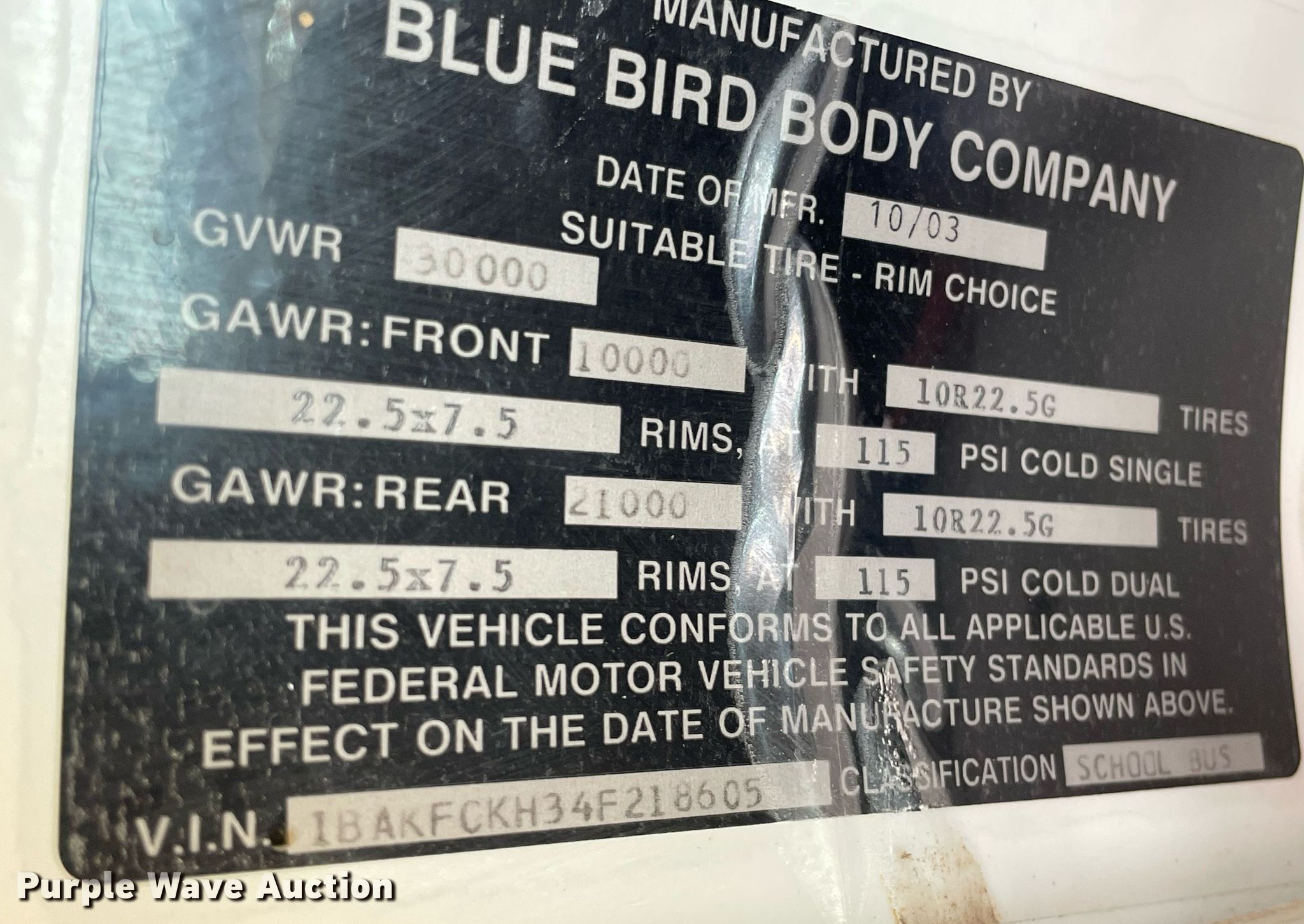 Purple Wave is selling a used Bus in Kansas. This item is a 2004 Blue Bird Vision school bus with the following: Miles: 171,791 on odometer, VIN: 1BAKFCKH34F218605