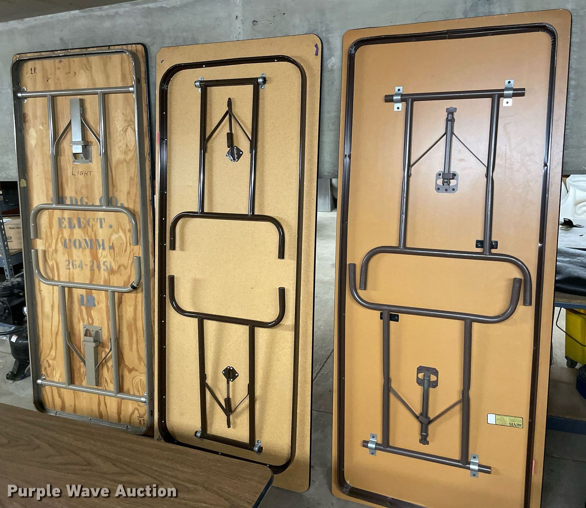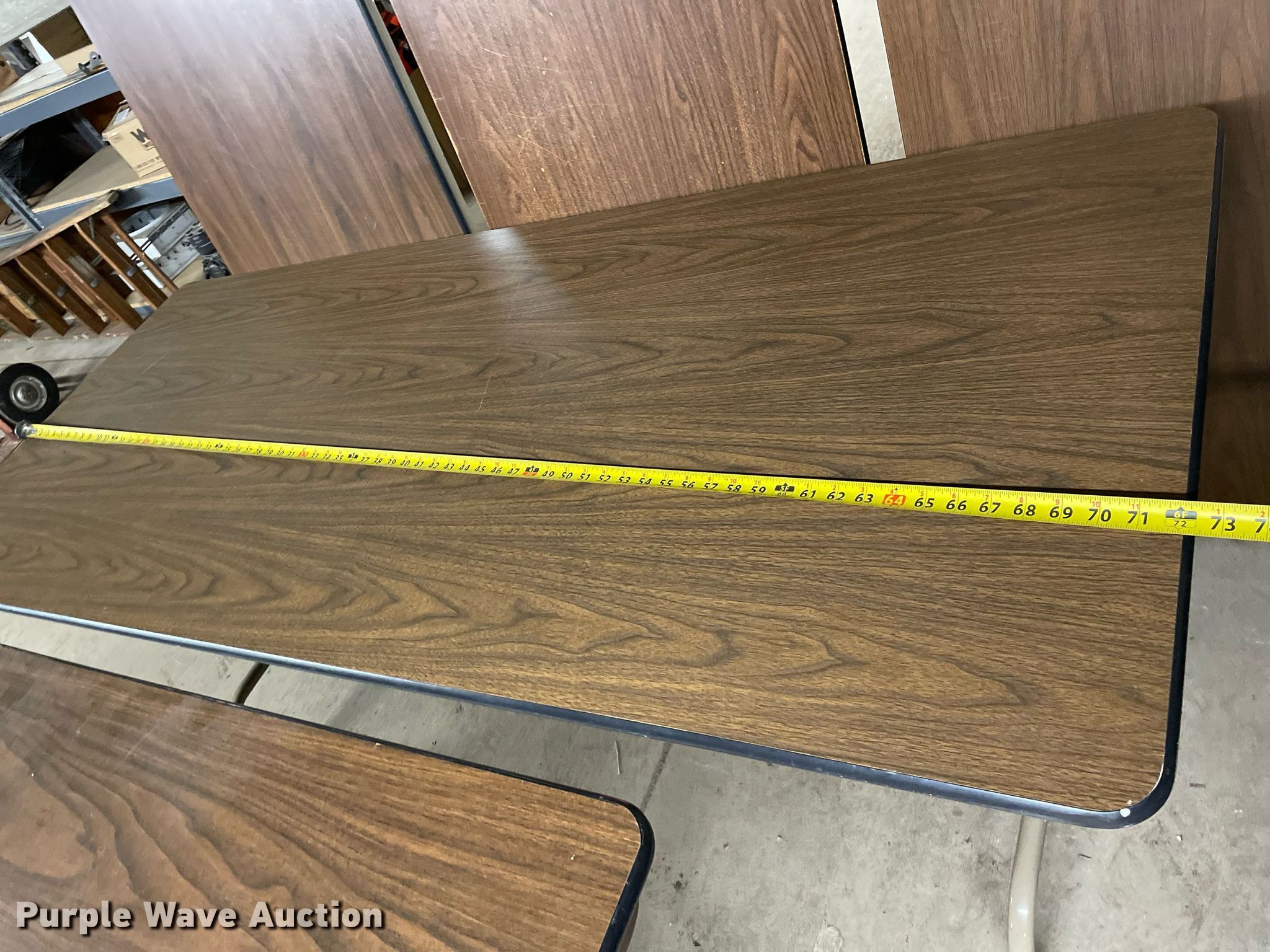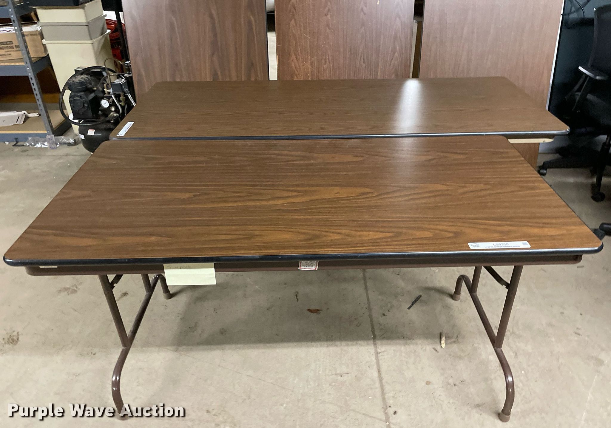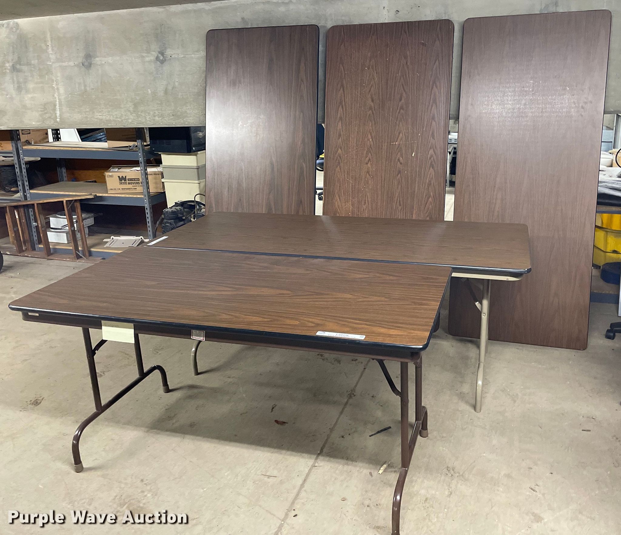 Purple Wave is selling a used Furniture in Kansas. This item is a Furniture with the following: (6) tables, Shelf, Belt barrier, Glass dividers