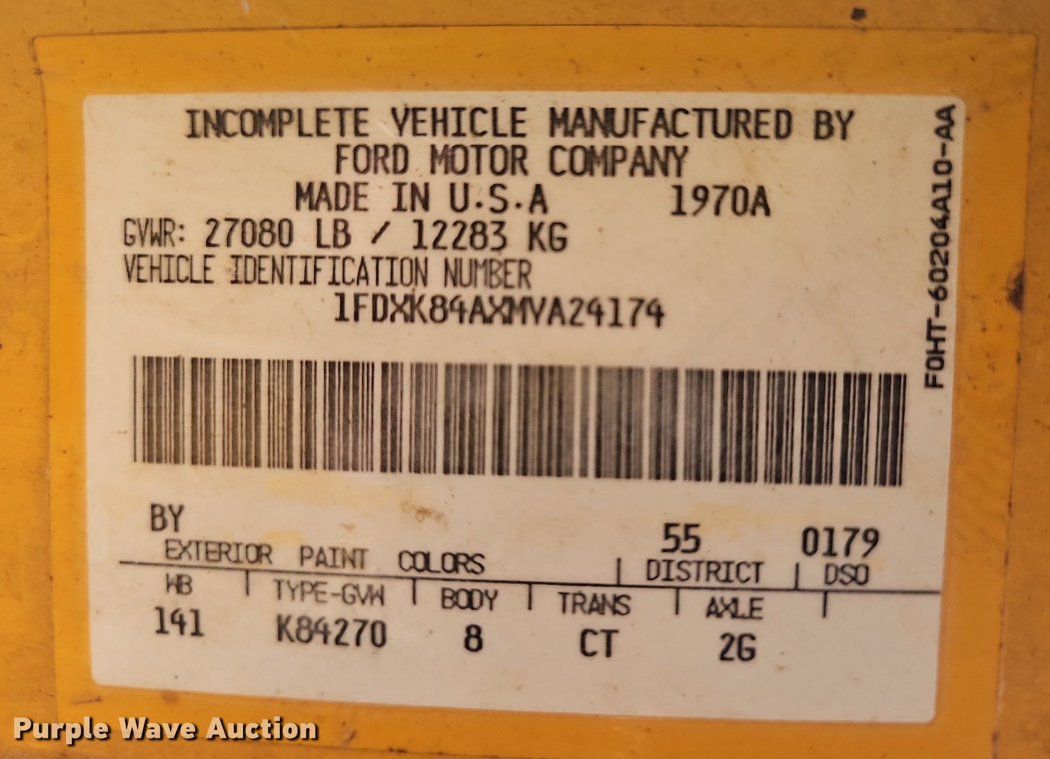 - VIN: 1FDXK84AXMVA24174